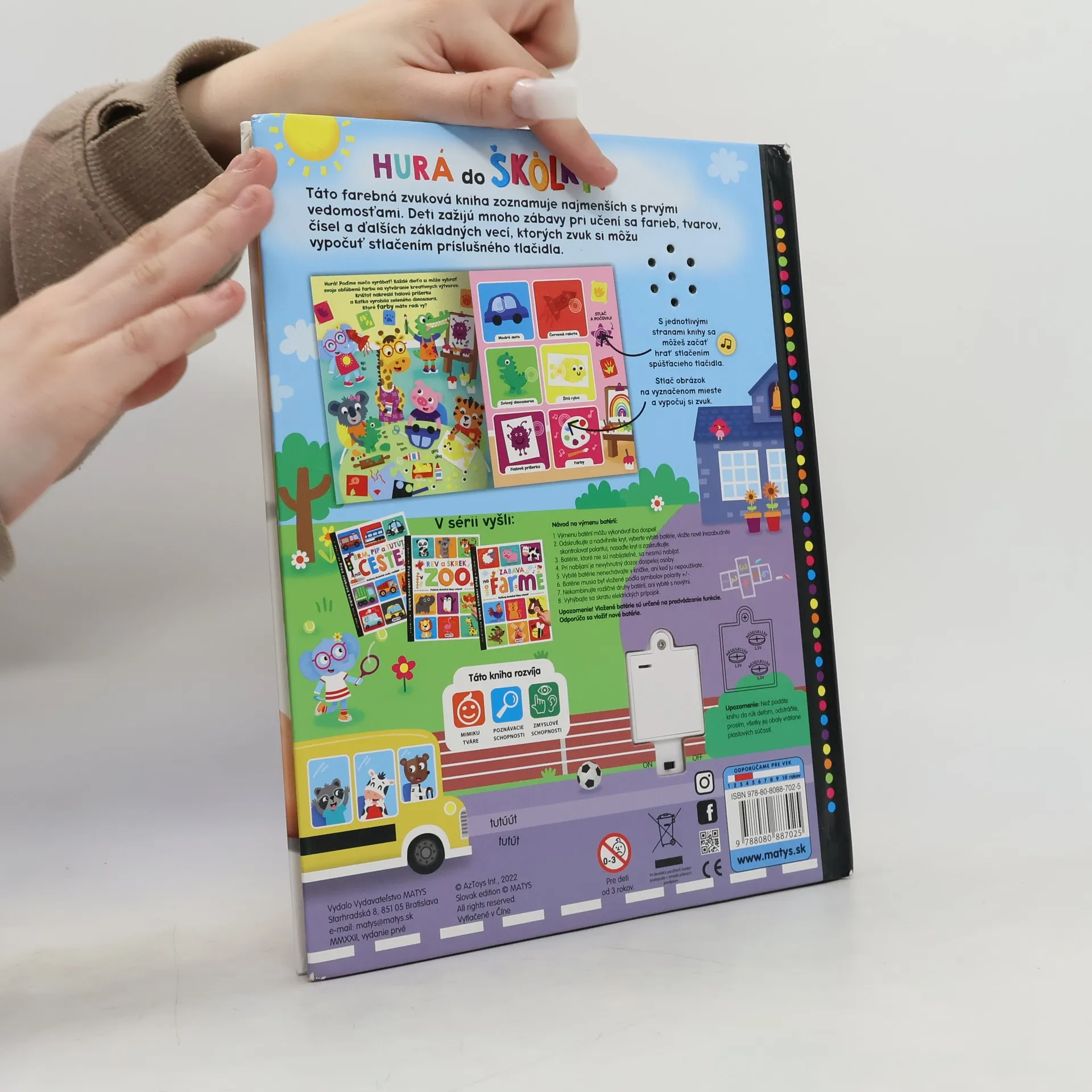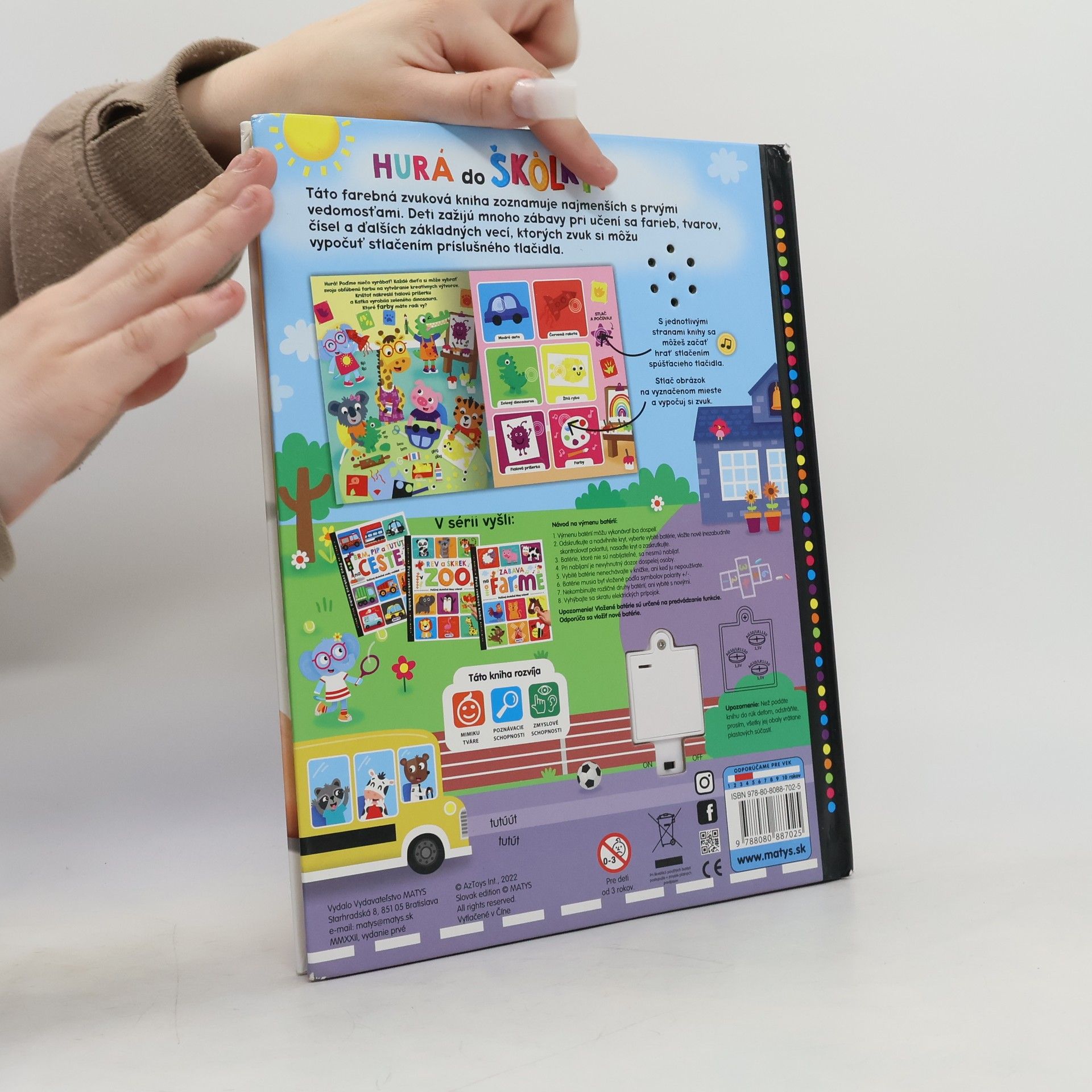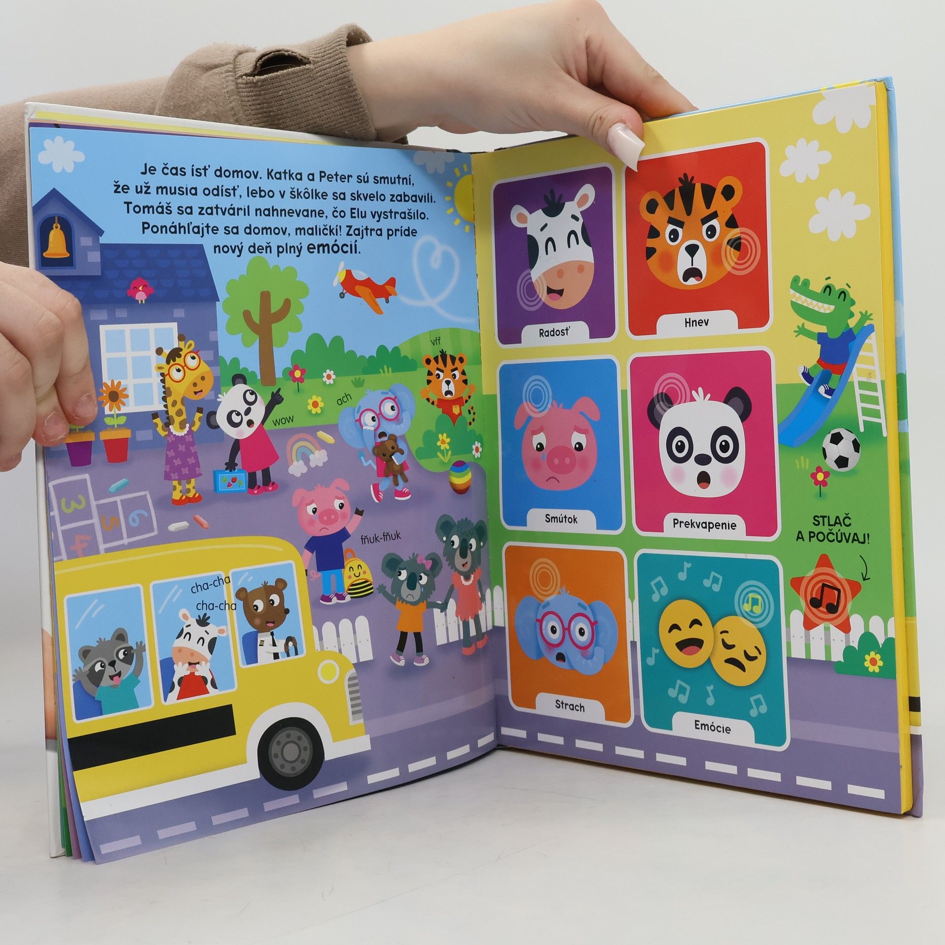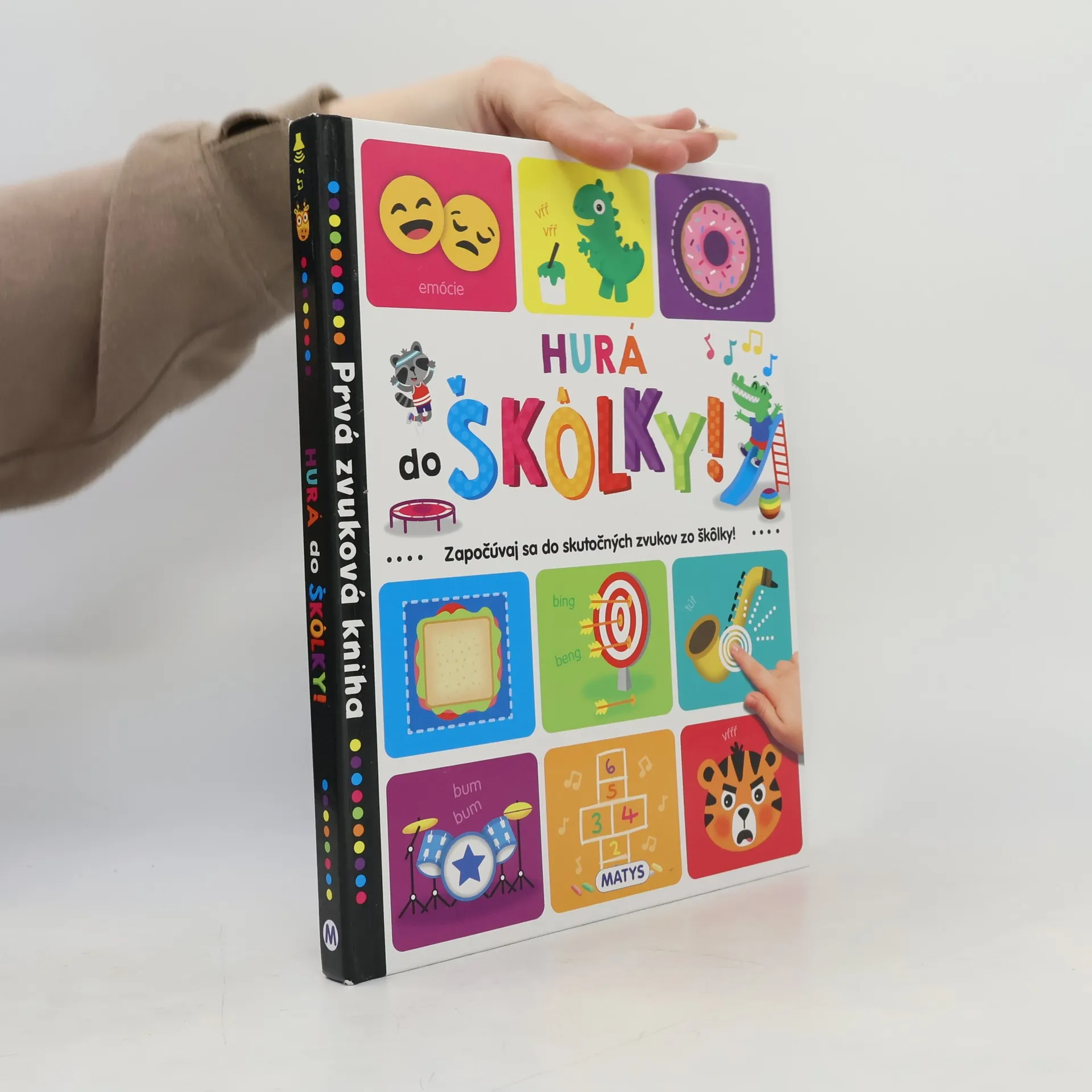Táto farebná zvuková kniha zoznamuje najmenších s prvými vedomosťami. Deti zažijú mnoho zábavy pri učení sa farieb, tvarov, čísel, hudobných nástrojov a základných emócií, ktorých zvuk si môžu vypočuť stlačením príslušného tlačidla. Vďaka rozkošným zvieracím kamarátom, ktorí sa do škôlky vždy tešia, lebo tam zažijú krásne chvíle a zabavia sa, sa dieťatko bude určite tiež tešiť na nových kamarátov, ktorých si nájde. Zároveň sa vďaka zvukovej knižke naučí základné vedomosti potrebné pre nástup do prvého ročníka. Deti milujú zvukové knihy, ktoré im poskytujú okrem krásnych ilustrácií a textov pridanú hodnotu – zvuky. Vďaka tejto knihe sa naučia základné informácie, ktoré potrebujú vedieť potom pri nástupe do prvého ročníka – farby, tvary, čísla, hudobné nástroje či rozoznávanie rôznych emócií a prácu s nimi. Knižka predstavuje fungovanie detí v kolektíve, učí ich vzájomnému rešpektu a tolerancii.