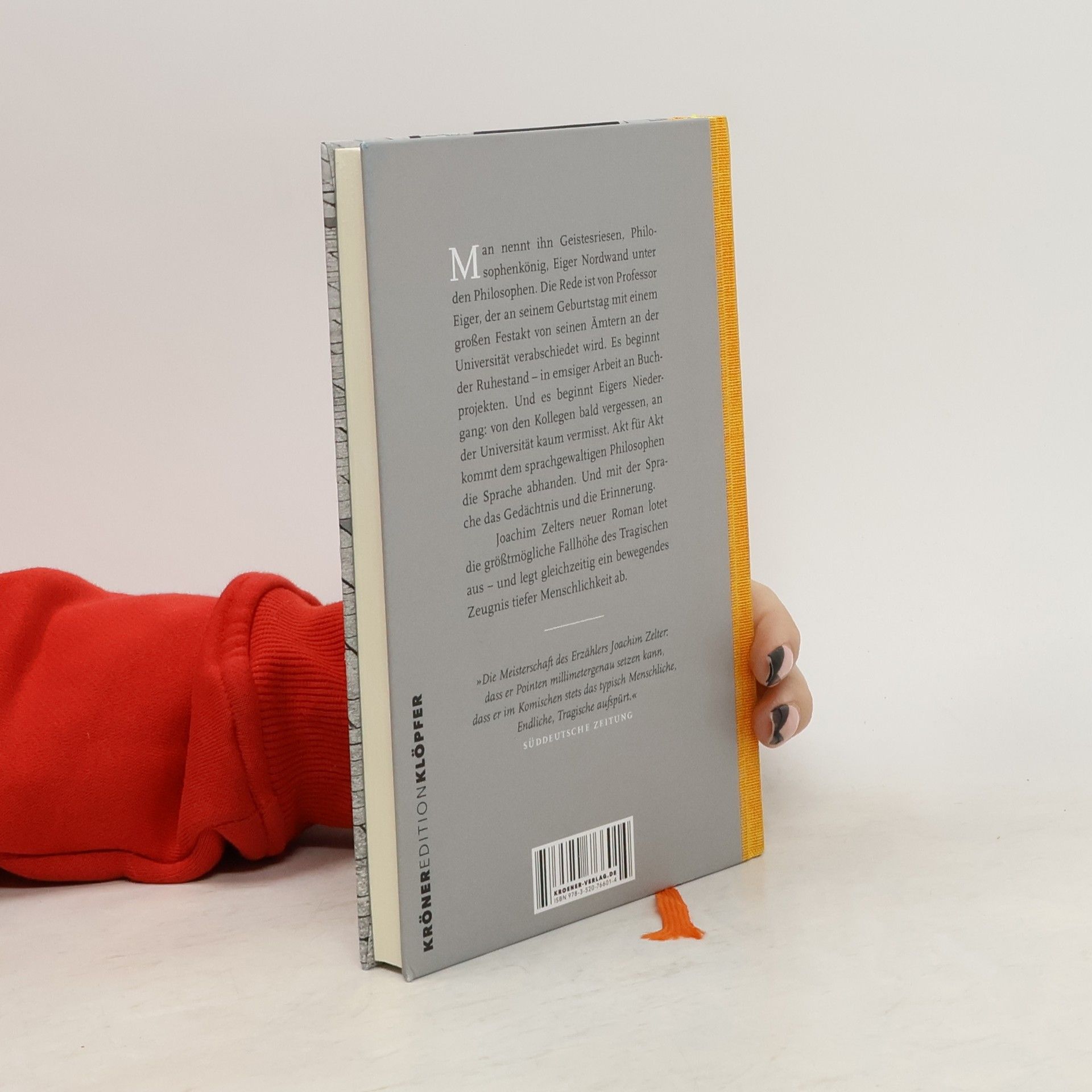 Man nennt ihn Geistesriesen. Letzten Intellektuellen des Landes. Eiger Nordwand unter den Philosophen. Die Rede ist von Professor Eiger, der an seinem Geburtstag mit einem großen Festakt von seinen Ämtern an der Universität verabschiedet wird. Es beginnt der Ruhestand – in emsiger Arbeit an Buchprojekten. Und es beginnt Eigers Niedergang: von den Kollegen bald vergessen, an der Universität kaum vermisst. Ein Niedergang, der sich auf vielen Ebenen abzeichnet, in Anzeichen wachsender Fehlleistungen, geistiger Verwirrung und zunehmender Einsamkeit. Akt für Akt kommt dem sprachgewaltigen Philosophen die Sprache abhanden. Und mit der Sprache das Gedächtnis und die Erinnerung. Joachim Zelters neuer Roman lotet die größtmögliche Fallhöhe des Tragischen aus – und legt gleichzeitig ein bewegendes Zeugnis tiefer Menschlichkeit ab.