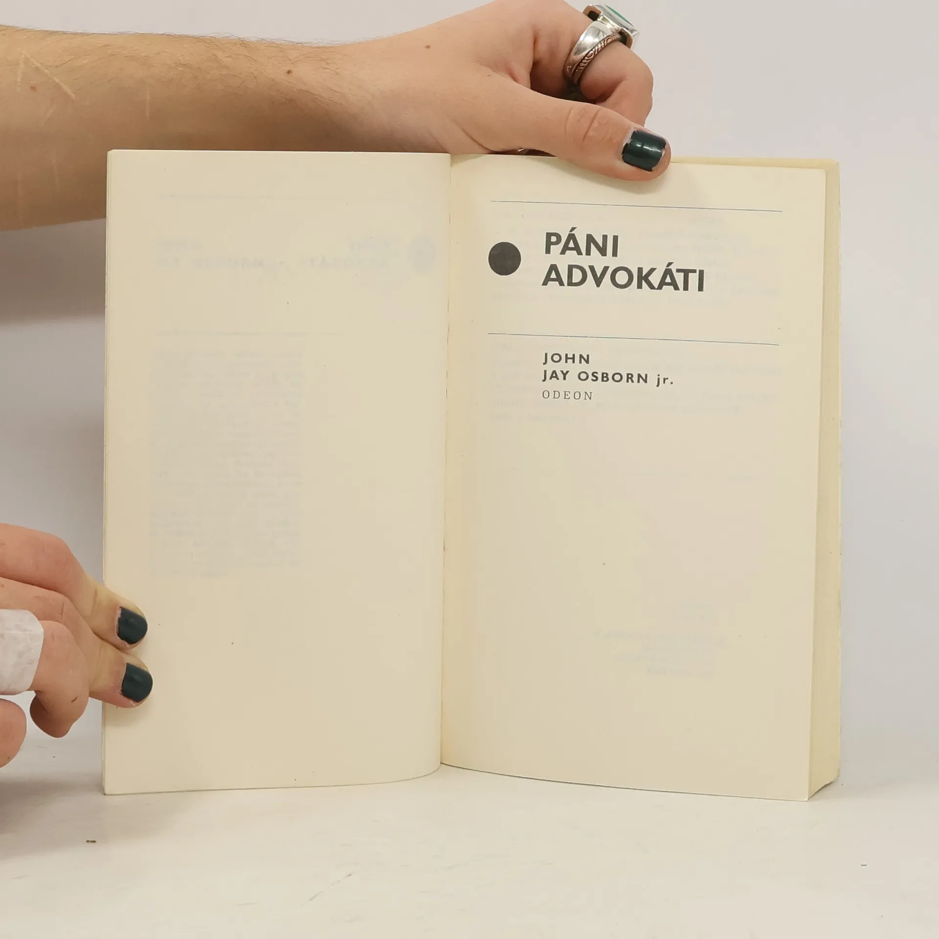Autor žertovně laděné knížky o potížích novopečených právníků John Jay Osbor jr. je profesorem právnické fakulty na jedné z předních amerických univerzit. Ze své vědecké činnosti i právní praxe (poté, co absolvoval Harvardovu právní školu, působil u federálního soudu a ve wallstreetské advokátní firmě) čerpá náměty pro své zábavné romány. Prvotina Papírový hon, satira na byrokracii univerzitní administrativy, se ve své době proslavila mezi studenty a byl podle ní natočen úspěšný televizní seriál a film. Následovaly dva další příběhy, To jediné, co jsem udělal špatně a Páni advokáti. Osborn žije s rodinou střídavě v New Yorku, Maine a na Floridě a pracuje na své čtvrté knize.