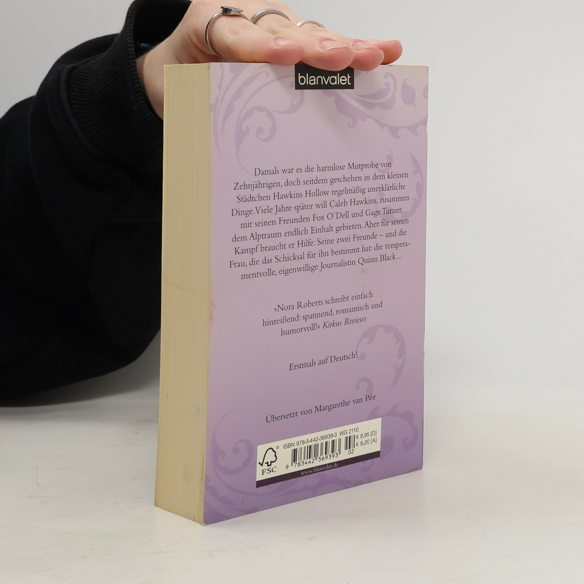 A touch of romance …by Nora Roberts Ein sieben Jahre alter Fluch, drei Freunde, eine große Liebe … Seit Caleb Hawkins, zusammen mit seinen Freunden Fox O´Dell und Gage Turner als damals Zehnjährige eine Mutprobe am Pagan Stone machte, geschehen in dem kleinen Städtchen Hawkins Hollow in Maryland alle sieben Jahre unerklärliche Dinge. Mit jedem Mal wird es schlimmer und daher beschließt Caleb, dem Alptraum Einhalt zu gebieten. Aber er braucht Hilfe: seine zwei Freunde. Und die Kraft der Frau, die er liebt: die Journalistin Quinn Black .