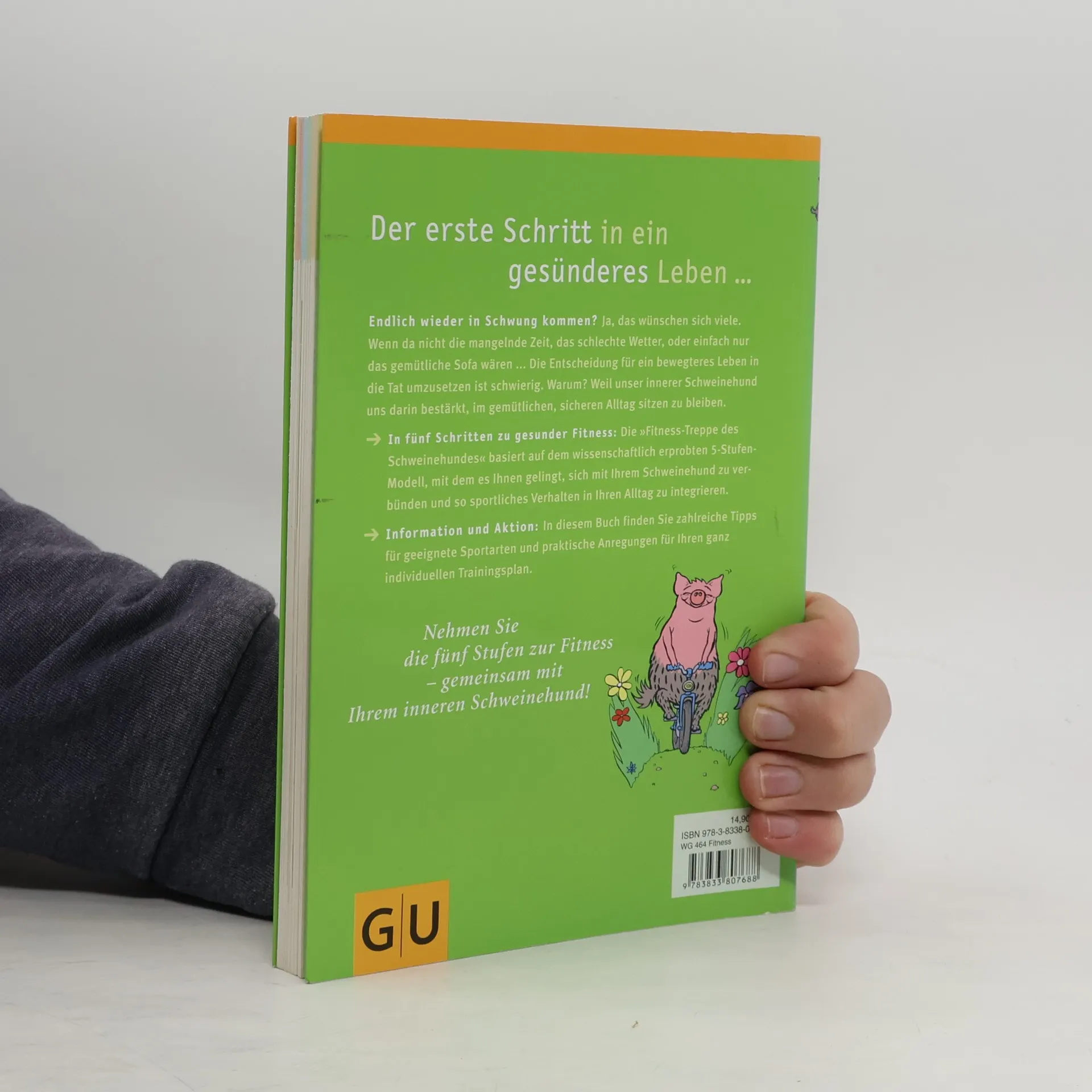 Uli, der Schweinehund, hilft seinem Herrchen jetzt auch dabei, die Fernsehcouch zu verlassen und körperlich in Schwung zu kommen. Wie immer ist das humorvolle Zwitterwesen gleichzeitig listiger Saboteur und kompetenter Ratgeber in einem. Denn eines ist klar: Ohne seine Unterstützung wird auch aus den besten Vorsätzen nichts. Nur wer die Strategien und Bedürfnisse des Schweinehunds versteht, kann ihn als hilfreichen Freund gewinnen. Dabei wird der Leser durch die fünf Phasen der Veränderung geleitet: 1. Bewusstwerden (Ist-Zustand ermitteln und Ziele setzen), 2. Sich entscheiden (eine neue Wahl treffen und die Fahrtroute bestimmen), 3. Handeln (aktiv werden), 4. Ausdauer entwickeln (Rückfälle und Stolpersteine meistern) und 5. Stabilisieren (das tägliche Fitness-Programm wird selbstverständlich). Außerdem in diesem GU-Ratgeber: alles Wissenswerte über geeignete Sportarten, Fitness-Facts und ein unwiderstehliches Programm der kleinen Schritte - ganz so wie's Uli am liebsten mag.