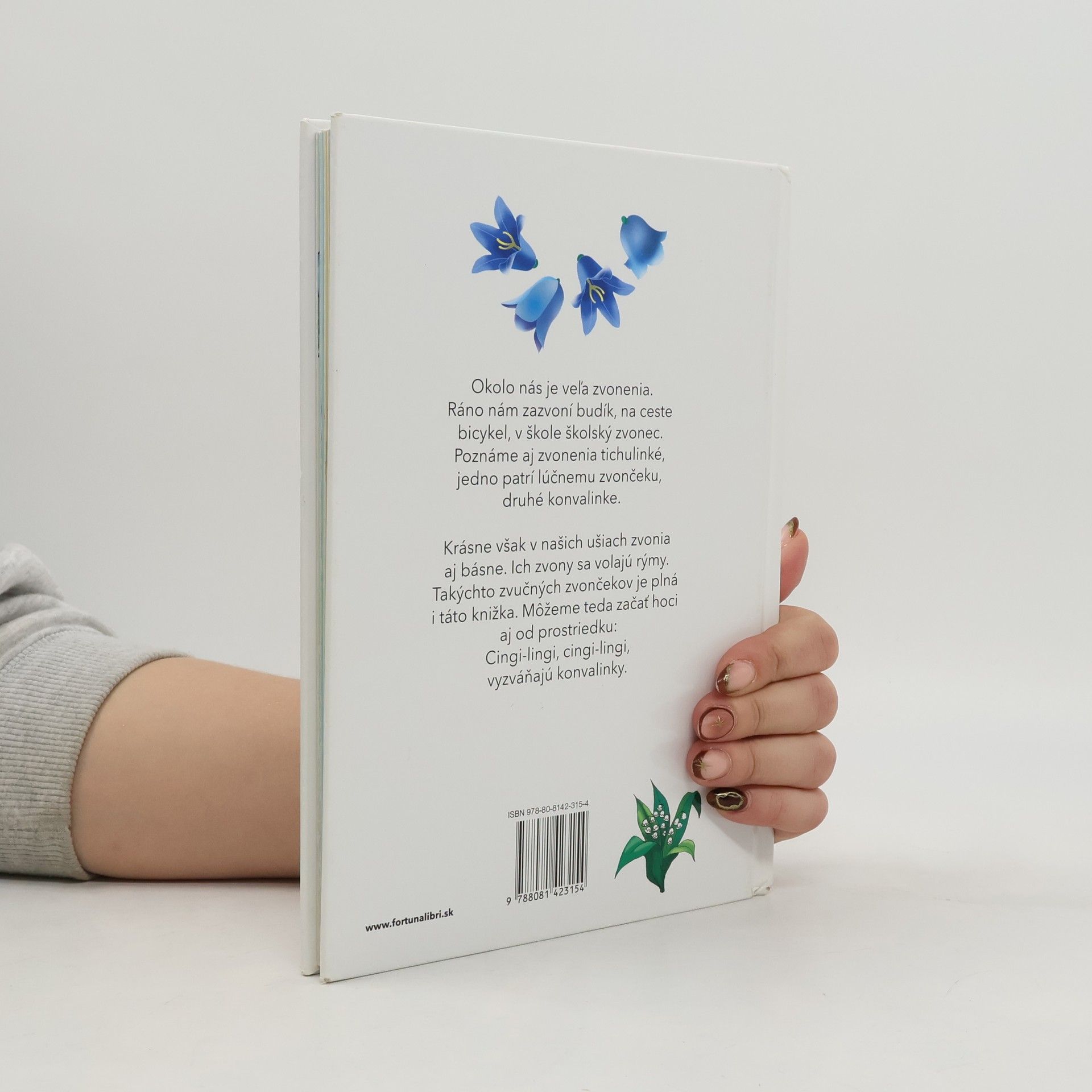 Okolo nás je veľa zvonenia. Ráno nám zazvoní budík, na ceste bicykel, v škole školský zvonec. Poznáme aj zvonenia tichulinké, jedno patrí lúčnemu zvončeku, druhé konvalinke. Krásne však v našich ušiach zvonia aj básne. Ich zvony sa volajú rýmy. Takýchto zvučných zvončekov je plná aj táto knižka. Môžeme teda začať hoci aj od prostriedku: Cingi-lingi, cingi-lingi, vyzváňajú konvalinky.