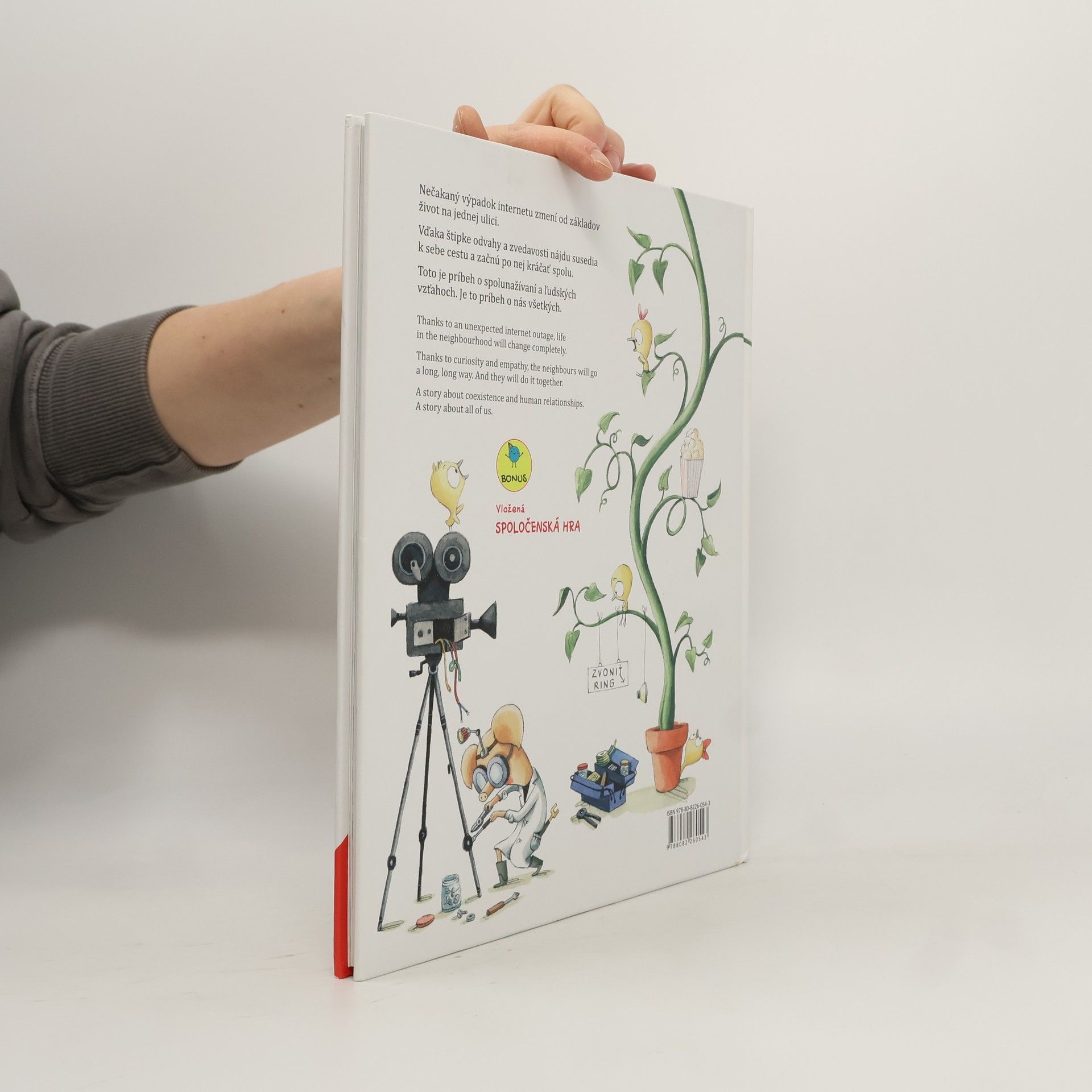 Vďaka nečakanému výpadku internetu sa život na jednej ulici medzi susedmi od základov zmení. Vďaka štipke odvahy a zvedavosti k sebe susedia nájdu cestu a začnú po nej kráčať spolu. Príbeh je o spolunažívaní a ľudských vzťahoch. Je to príbeh o nás všetkých. Súčasťou kniha je spoločenská hra. Preklad: Dominika Šušulová