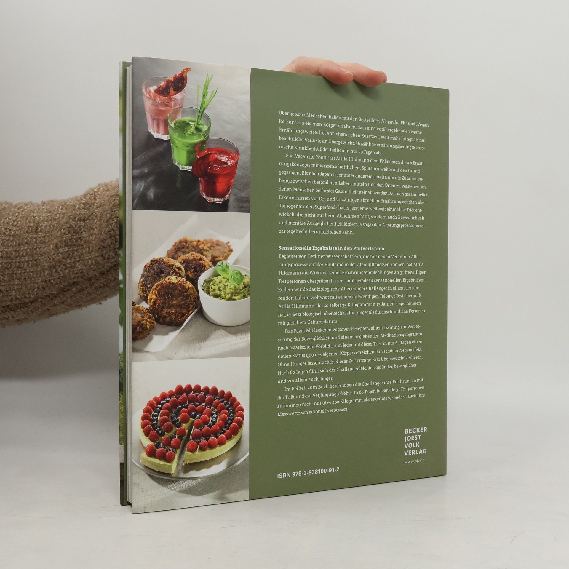 Über 100.000 Menschen haben mit den Bestsellern Vegan for Fit und Vegan for Fun erfahren, dass eine vorübergehende vegane Ernährung ohne chemische Zusätze nicht nur zu Gewichtsverlust führt, sondern auch ernährungsbedingte chronische Krankheiten in nur 30 Tagen heilen kann. In Vegan for Youth hat Attila Hildmann das Phänomen dieser Ernährung mit wissenschaftlichem Ansatz weiter untersucht. Bereits 2015 setzte er die Telomer-Messung ein, eine Methode zur Entschlüsselung des Alterns, die von Nobelpreisträgerin Elizabeth Blackburn entwickelt wurde. Zudem reiste er nach Japan, um die Zusammenhänge zwischen speziellen Lebensmitteln und der Gesundheit von Menschen, die ein hohes Alter erreichen, zu erforschen. Aus seinen Erkenntnissen über Superfoods entwickelte er eine einzigartige Triät, die Alterungsprozesse verlangsamen kann. Gemeinsam mit Wissenschaftlern der Charité in Berlin überprüfte er die Wirkung seiner Ernährungsempfehlungen. Das Ergebnis: Mit schmackhaften veganen Rezepten, einem Beweglichkeitstraining und einem asiatisch inspirierten Meditationsprogramm kann jeder in nur 60 Tagen einen neuen Körperstatus erreichen. Ein positiver Nebeneffekt: In dieser Zeit können bis zu 10 Kilo Übergewicht verloren werden. Nach 60 Tagen fühlen sich die Teilnehmer leichter, gesünder, beweglicher und jünger.