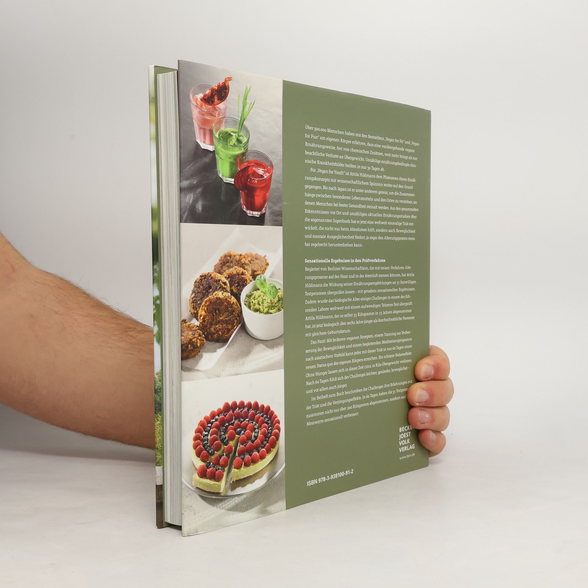 Über 100.000 Menschen haben mit den Bestsellern Vegan for Fit und Vegan for Fun erfahren, dass eine vorübergehende vegane Ernährung ohne chemische Zusätze nicht nur zu Gewichtsverlust führt, sondern auch ernährungsbedingte chronische Krankheiten in nur 30 Tagen heilen kann. In Vegan for Youth hat Attila Hildmann das Phänomen dieser Ernährung mit wissenschaftlichem Ansatz weiter untersucht. Bereits 2015 setzte er die Telomer-Messung ein, eine Methode zur Entschlüsselung des Alterns, die von Nobelpreisträgerin Elizabeth Blackburn entwickelt wurde. Zudem reiste er nach Japan, um die Zusammenhänge zwischen speziellen Lebensmitteln und der Gesundheit von Menschen, die ein hohes Alter erreichen, zu erforschen. Aus seinen Erkenntnissen über Superfoods entwickelte er eine einzigartige Triät, die Alterungsprozesse verlangsamen kann. Gemeinsam mit Wissenschaftlern der Charité in Berlin überprüfte er die Wirkung seiner Ernährungsempfehlungen. Das Ergebnis: Mit schmackhaften veganen Rezepten, einem Beweglichkeitstraining und einem asiatisch inspirierten Meditationsprogramm kann jeder in nur 60 Tagen einen neuen Körperstatus erreichen. Ein positiver Nebeneffekt: In dieser Zeit können bis zu 10 Kilo Übergewicht verloren werden. Nach 60 Tagen fühlen sich die Teilnehmer leichter, gesünder, beweglicher und jünger.