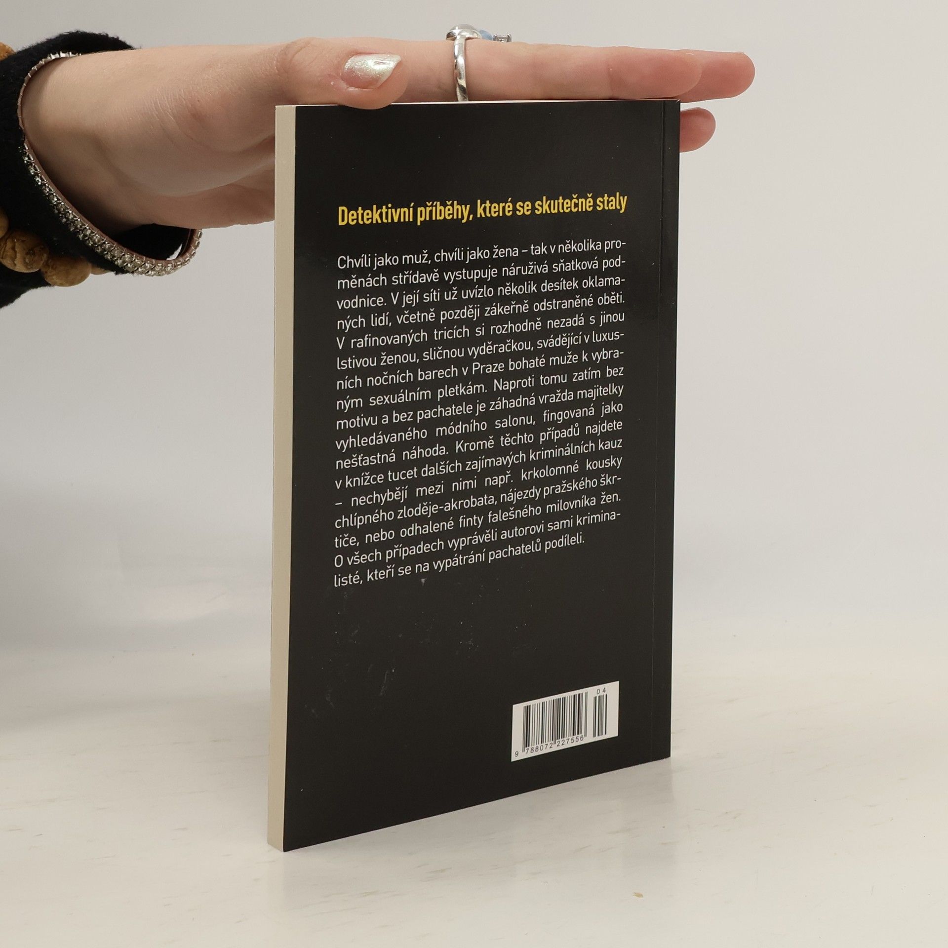 Detektivní příběhy, které se skutečně staly Chvíli jako muž, chvíli jako žena – tak v několika proměnách střídavě vystupuje náruživá sňatková podvodnice. V její síti už uvízlo několik desítek oklamaných lidí, včetně později zákeřně odstraněné oběti. V rafinovaných tricích si rozhodně nezadá s jinou lstivou ženou, sličnou vyděračkou, svádějící v luxusních nočních barech v Praze bohaté muže k vybraným sexuálním pletkám. Naproti tomu zatím bez motivu a bez pachatele je záhadná vražda majitelky vyhledávaného módního salonu, fingovaná jako nešťastná náhoda. Kromě těchto případů najdete v knížce tucet dalších zajímavých kriminálních kauz – nechybějí mezi nimi např. krkolomné kousky chlípného zloděje-akrobata, nájezdy pražského škrtiče, nebo odhalené finty falešného milovníka žen. O všech případech vyprávěli autorovi sami kriminalisté, kteří se na vypátrání pachatelů podíleli.