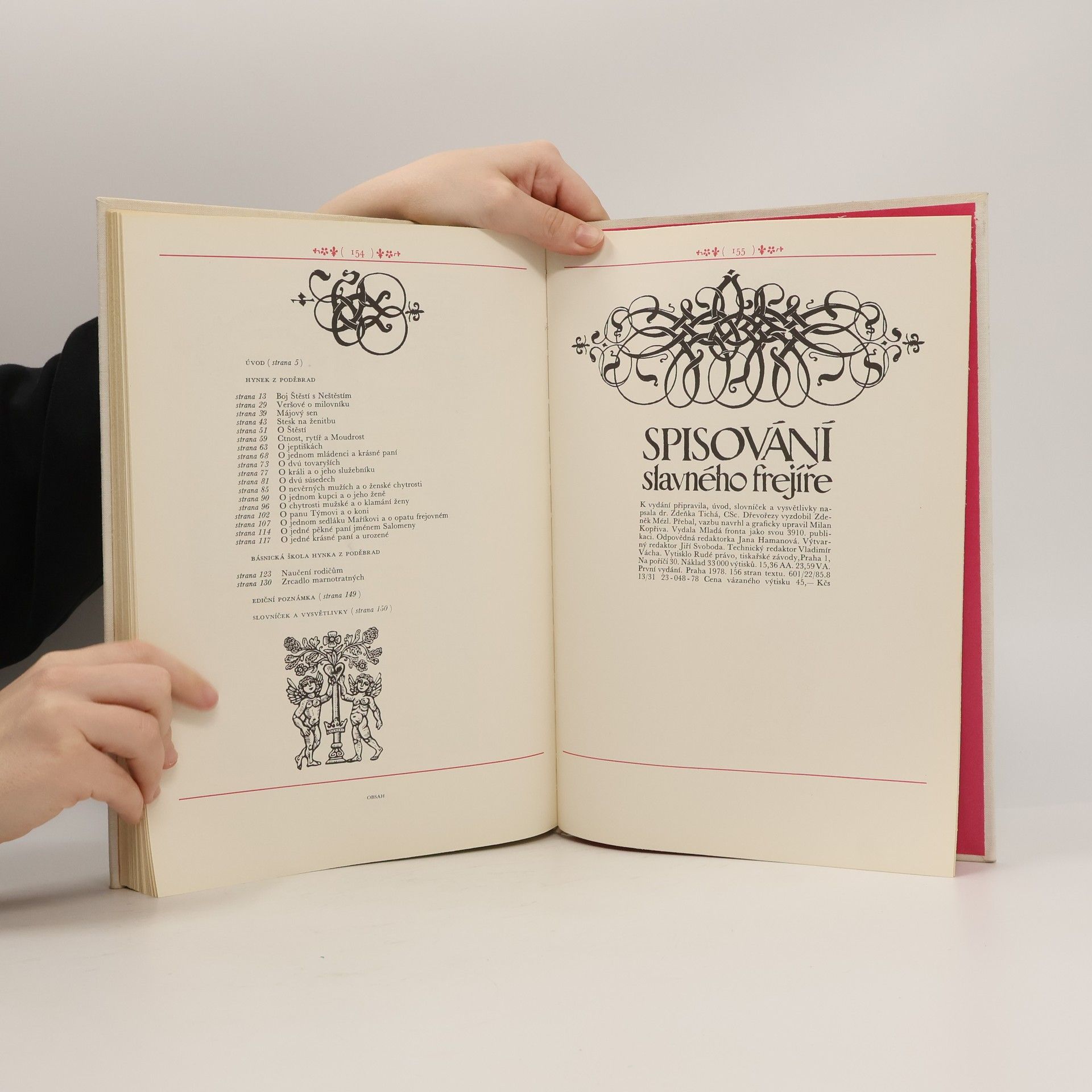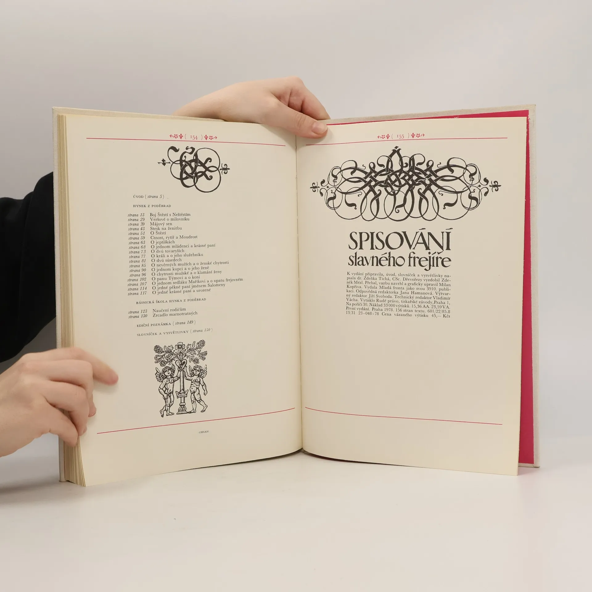 Reprezentativně vypravený svazek přináší první souborné vydání skladeb Neuberského sborníku, tj. básní a próz Hynka z Poděbrad, syna českého krále, představujících jednak jeho vlastní tvorbu a jednak převody nejlepších povídek z Boccacciova Dekameronu, a dále skladby básnické školy Hynka z Poděbrad, tj. Naučení rodičům a Zrcadlo marnotratných. K vydání připravila, úvod, poznámky a vysvětlivky napsala Zdeňka Tichá, dřevoryty Zdeněk Mézl. 1. vydání.