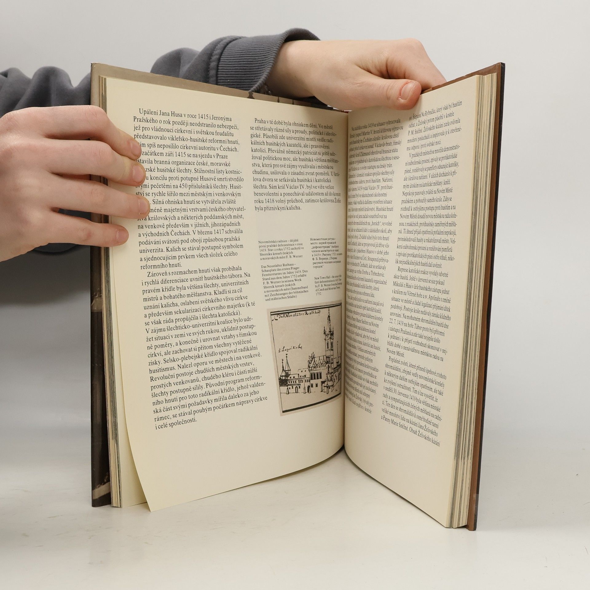 Umělecké fotografie velkoměsta s průvodním textem přibližují místa, která jsou spjata s obdobím husitského hnutí. Dobové rytiny, ilustrace.