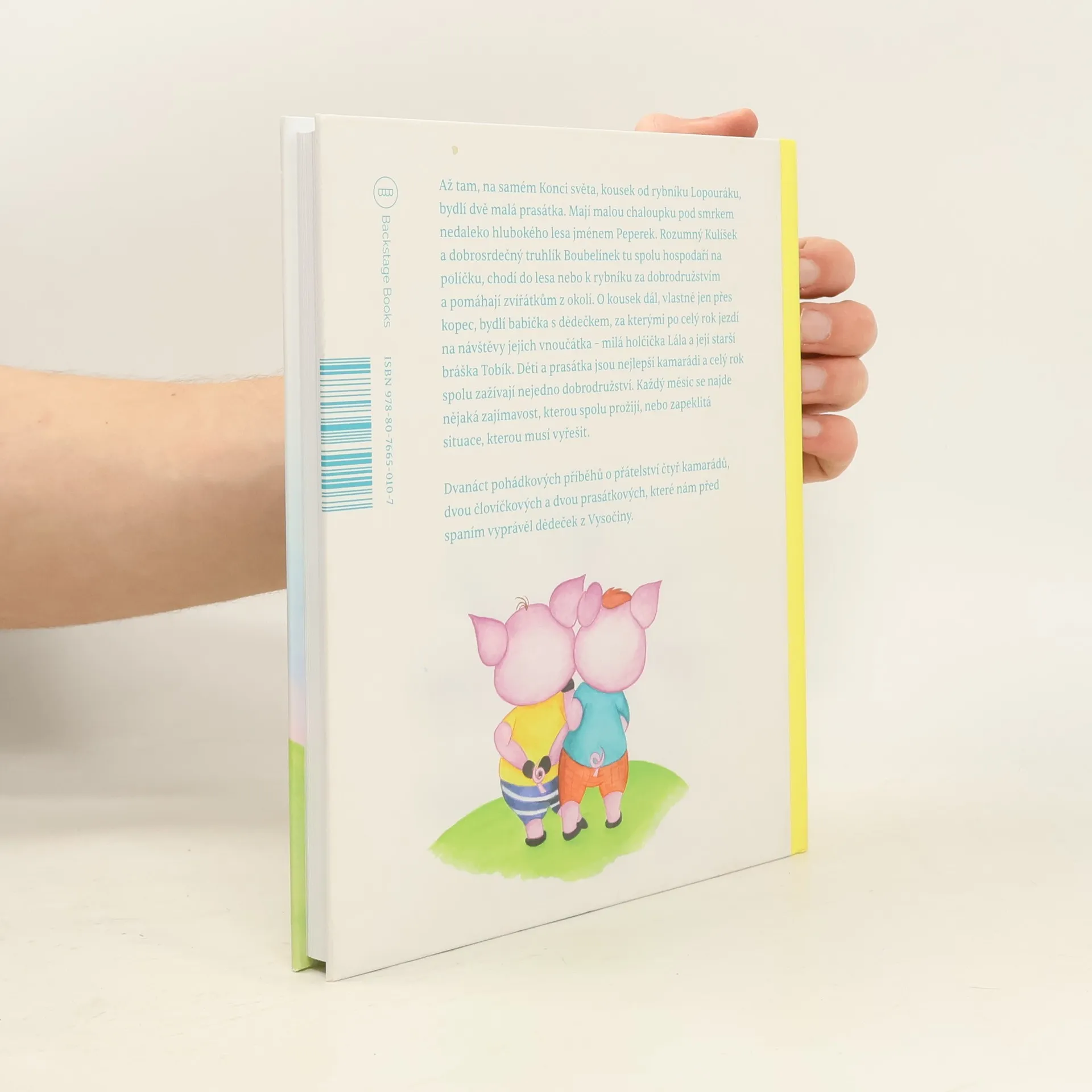Až tam, na samém Konci světa, kousek od rybníku Lopouráku, bydlí dvě malá prasátka. Mají malou chaloupku pod smrkem nedaleko hlubokého lesa jménem Peperek. Rozumný Kulíšek a dobrodružný truhlík Boubelínek tu spolu hospodaří na políčku, chodí do lesa nebo k rybníku za dobrodružstvím a pomáhají zvířátkům z okolí. O kousek dál, vlastně jen přes kopec, bydlí babička s dědečkem, za kterými po celý rok jezdí na návštěvy jejich vnoučátka - milá holčička Lála a její starší bráška Tobík. Děti a prasátka jsou nejlepší kamarádi a celý rok spolu zažívají nejedno dobrodružství. každý měsíc se najde nějaký zajímavost, kterou spolu prožijí, nebo zapeklitá situace, kterou musí vyřešit. Dvanáct pohádkových příběhů o přátelství čtyř kamarádů, dvou človíčkových a dvou prasátkových, které nám před spaním vyprávěl dědeček z Vysočiny.