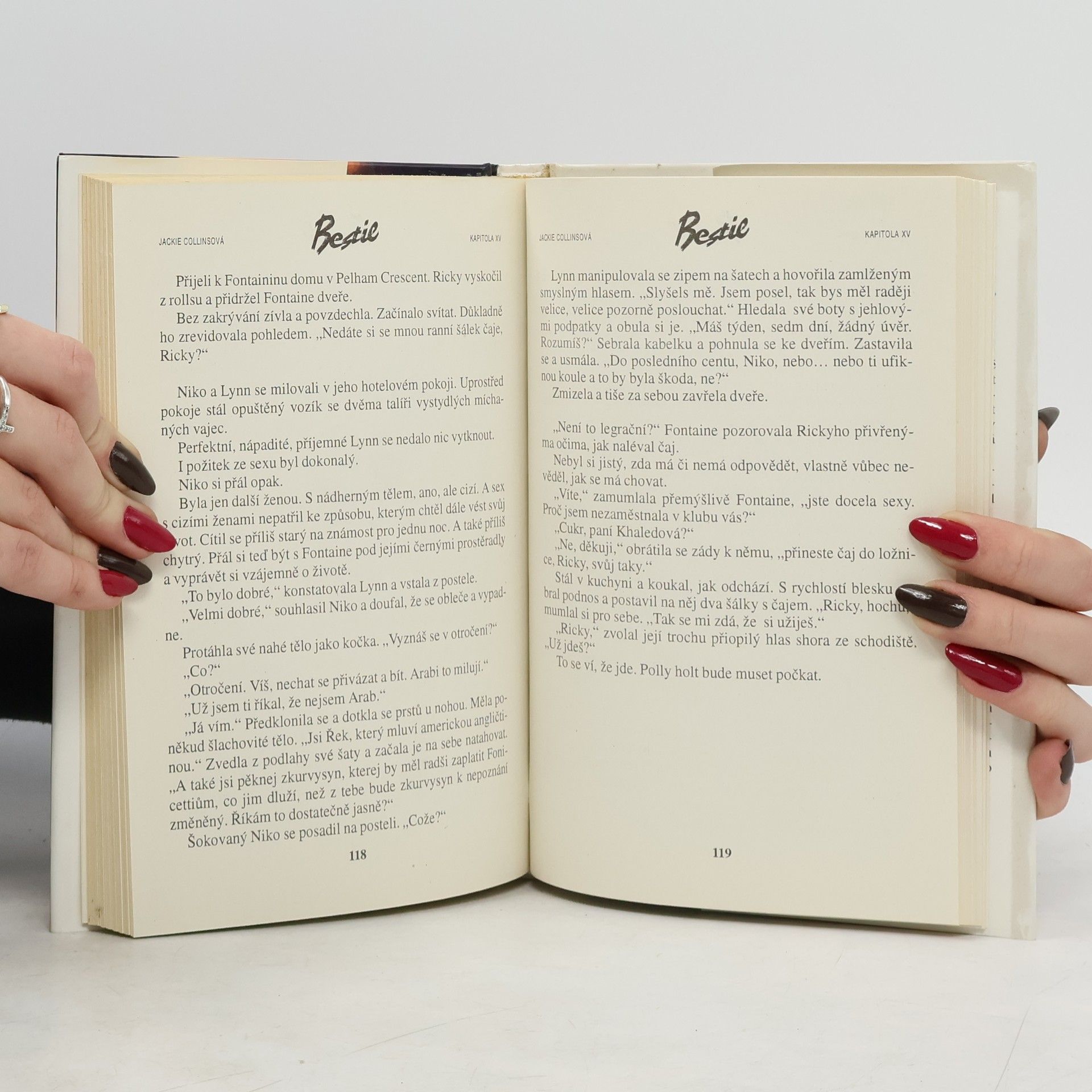 Tato žena nemá nikdy nouzi o muže. Říká se jí Bestie. Včerejšky Fontaine Khaledové byly spojeny s arabským milionářem a pro všechny zítřky má hazardního hráče Nika. Zůstává jen problém najít muže pro dnešek. Od New Yorku po Las Vegas, od Hollywoodu po Athény Fontaine hýbe věcmi z plyšem čalouněných limuzín a černých saténových prostěradel. Je Bestie a má moc. A to by se nikdy nemělo změnit - nebo snad ano? Bestie je žhavým pokračování Hřebce.