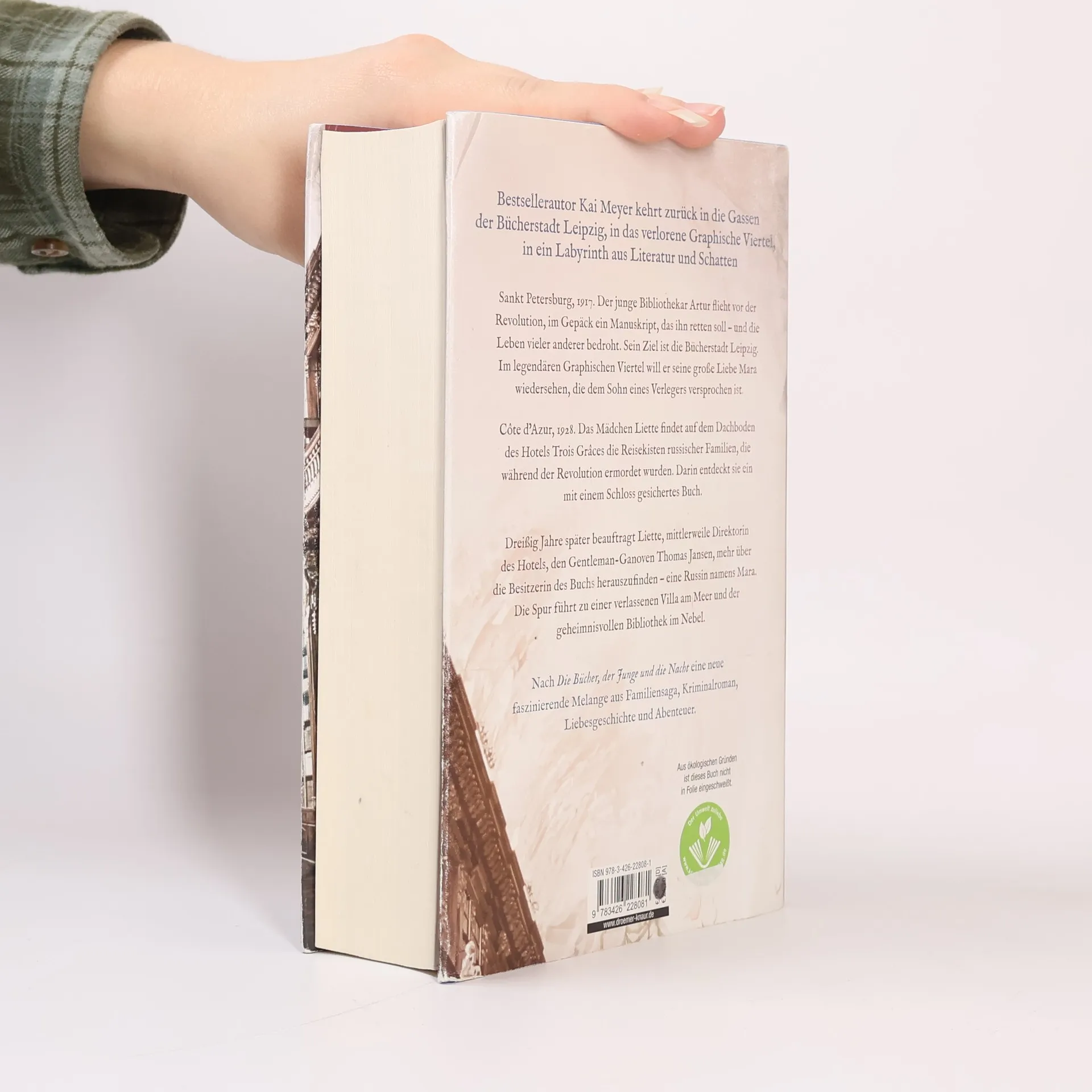 In seinem neuen Roman führt uns Bestseller-Autor Kai Meyer zurück in die Gassen der Bücherstadt Leipzig, in das verlorene Graphische Viertel und in ein Labyrinth aus Literatur und Schatten. Sankt Petersburg, 1917. Der junge Bibliothekar Artur flieht vor den Schergen der Revolution, im Gepäck ein Manuskript, das ihn retten soll – und die Leben vieler anderer bedroht. Sein Ziel ist Leipzig, die Stadt der Bücher. Im legendären Graphischen Viertel will er seine große Liebe Mara wiedersehen, die dem Sohn eines reichen Verlegers versprochen ist. Cote d’Azur, 1928. Das Mädchen Liette findet auf dem Dachboden des Luxushotels Château Trois Grâces die vergessenen Reisekisten russischer Familien, die während der Revolution ermordet wurden. Darin entdeckt sie ein altes, mit einem Schloss gesichertes Buch. Dreißig Jahre später beauftragt Liette, mittlerweile Direktorin des Hotels, den Gentleman-Ganoven Thomas Jansen, mehr über die ehemalige Besitzerin des Buchs herauszufinden – eine Russin namens Mara. Die Spur führt zu einem Bibliothekar, der vor Jahren nach Leipzig kam, zu einer verlassenen Villa am Meer und der geheimnisvollen Bibliothek im Nebel. Wie schon in seinem Erfolgsroman „Die Bücher, der Junge und die Nacht“ beschwört Kai Meyer die Magie der Bücher und präsentiert eine faszinierende Melange aus Familiensaga, Kriminalroman, Liebesgeschichte und Abenteuer.