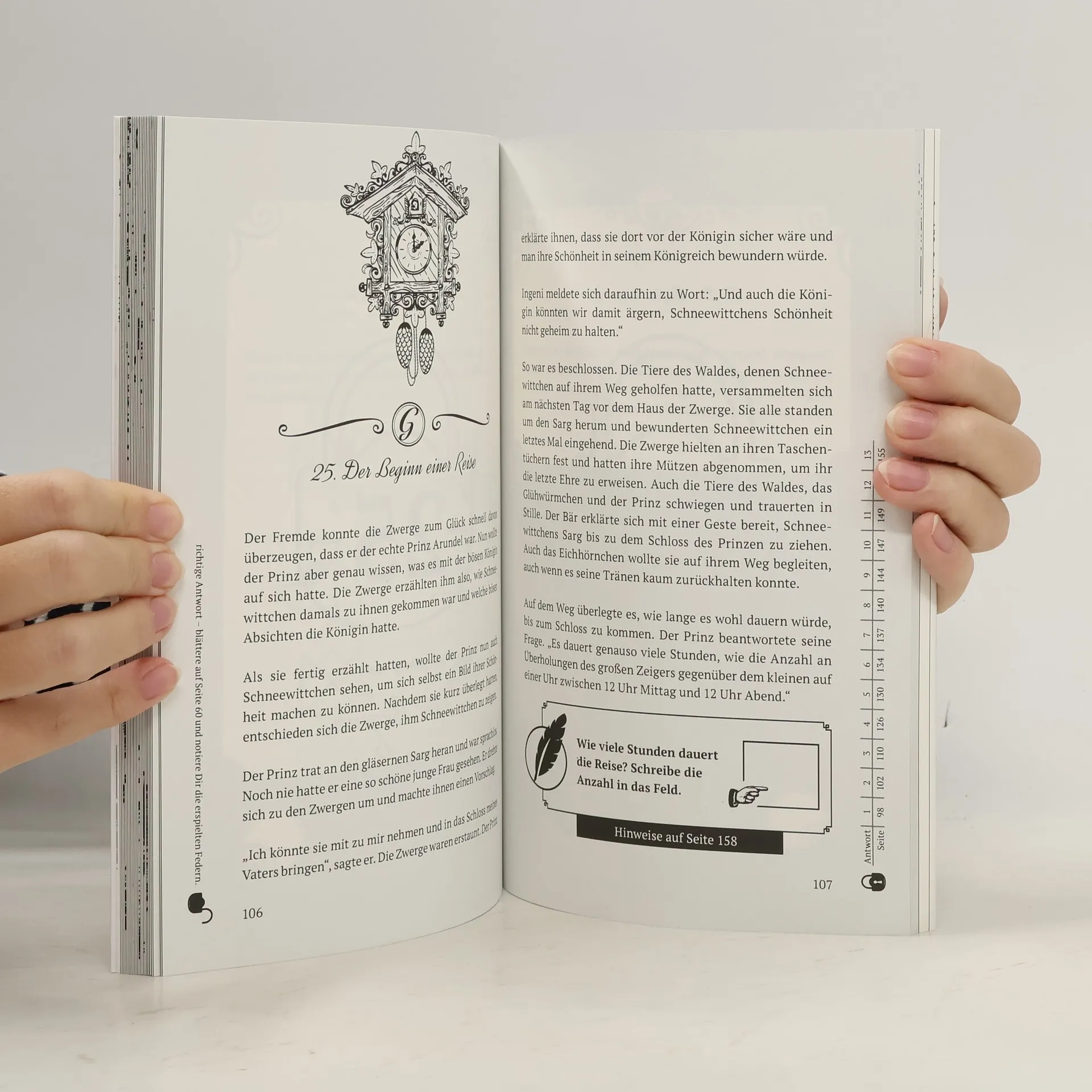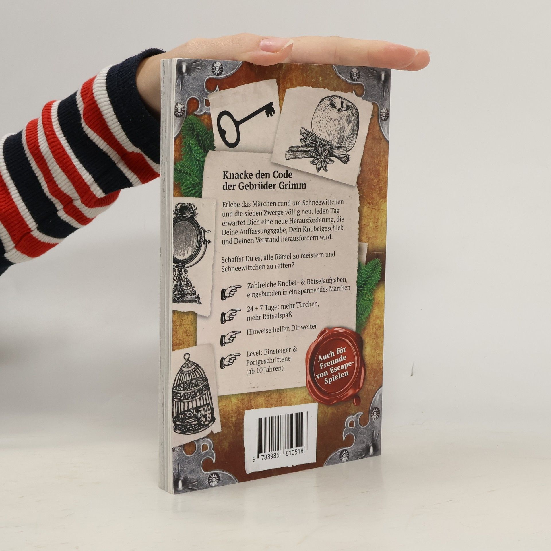Knacke den Code und lüfte das Geheimnis Stell Dich der Herausforderung und beweise Denkvermögen, Knobelgeschick und Deine Auffassungsgabe! Werde zum Rätsel-Meister Mit diesem Adventskalender erlebst Du und Deine Familie eine packende Geschichte rund um Schneewittchen und die sieben Zwerge. Löse mysteriöse Codes und decke die dunklen Geheimnisse der bösen Königin auf. Ein spannendes Märchen trifft auf Escape-Rätsel Jeden Tag wird die packende Story fortgesetzt. Dabei bist Du nicht nur passiver Leser, sondern wirst selbst zum Teil der Geschichte: Löse knifflige Rätsel, um dem Geheimnis einen Schritt näherzukommen. 24 + 7 Tage voller Geheimnisse und Rätsel Wenn die Adventszeit vorbei ist, geht der Spaß am Knobeln einfach weiter. 24 Tage + 7 Tage extra sorgen für Rätselspaß bis Silvester. Highlights: Zahlreiche Knobel- & Rätselaufgaben Level: Einsteiger & Fortgeschrittene (ab 10 Jahren) Meistere die Rätsel alleine oder in der Gruppe Eine spannende Geschichte zur Weihnachtszeit 24 + 7 Tage voller Spaß: Der Adventskalender, der mehr kann Mehr Rätsel, mehr Story, mehr Spannung: Hol Dir jetzt das Escape-Adventskalenderbuch für die ganze Familie. Jetzt bestellen.