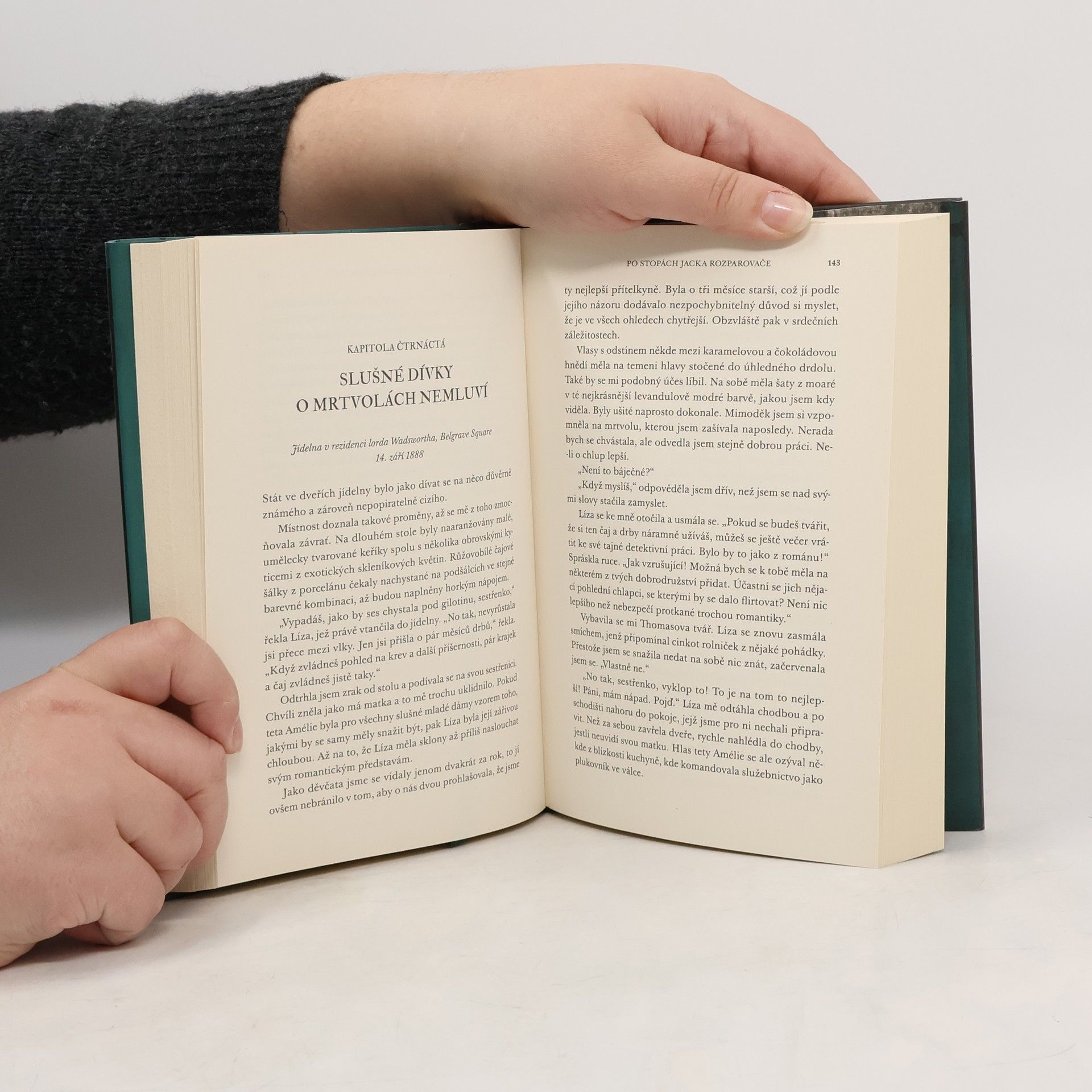 Hrůzu nahánějící hororový román, jehož příběh je inspirován vraždami Jacka Rozparovače, s neočekávaným vyvrcholením, z něhož tuhne krev v žilách… Sedmnáctiletá Audrey Rose Wadsworthová je dcerou ctihodného šlechtice a nabízí se jí tak život v bohatství a moři dalších výhod. Pod rouškou společenských čajových dýchánků a nákupů luxusních šatů však vede tajný druhý život. Navzdory přáním svého otce a očekáváním společnosti Audrey často utíká do laboratoře svého strýce, kde se věnuje děs nahánějícímu studiu forenzních věd. Když ji práce na tělech brutálně zavražděných žen vtáhne do pátrání po sériovém vrahovi, přivede ji její touha po nalezení odpovědí na samý okraj zlaté klece. Šokující zvraty a obraty, umocněné fotografiemi z této ponuré doby, činí z této prvotiny z pera autorky Kerri Maniscalco, jež se umístila na prvním místě žebříčku nejprodávanějších knih deníku New York Times, vskutku nezapomenutelné dílo.