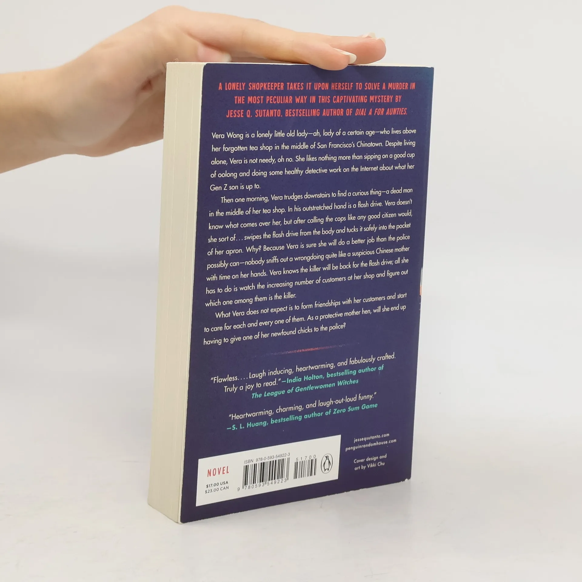 "Knives Out meets Kim's Convenience in this captivating mystery by Jesse Q. Sutanto, bestselling author of Dial A for Aunties. Vera Wong is a lonely little old lady-ah, lady of a certain age-who lives above her forgotten tea shop in the middle of San Francisco's Chinatown. Despite living alone, Vera is not needy, oh no. She likes nothing more than sipping on a good cup of Wulong and doing some healthy detective work on the Internet about what her college-aged son is up to. Then one morning, Vera trudges downstairs to find a curious thing-a dead man in the middle of her tea shop. In his outstretched hand, a flash drive. Vera doesn't know what comes over her, but after calling the cops like any good citizen would, she sort of . . . swipes the flash drive from the body and tucks it safely into the pocket of her apron. Why? Because Vera is sure she would do a better job than the police possibly could, because nobody sniffs out a wrongdoing quite like a suspicious Chinese mother with time on her hands. Vera knows the killer will be back for the flash drive; all she has to do is watch the increasing number of customers at her shop and figure out which one among them is the killer. What Vera does not expect is to form friendships with her customers and start to care for each and every one of them. As a protective mother hen, will she end up having to give one of her newfound chicks to the police?"-- Provided by publisher