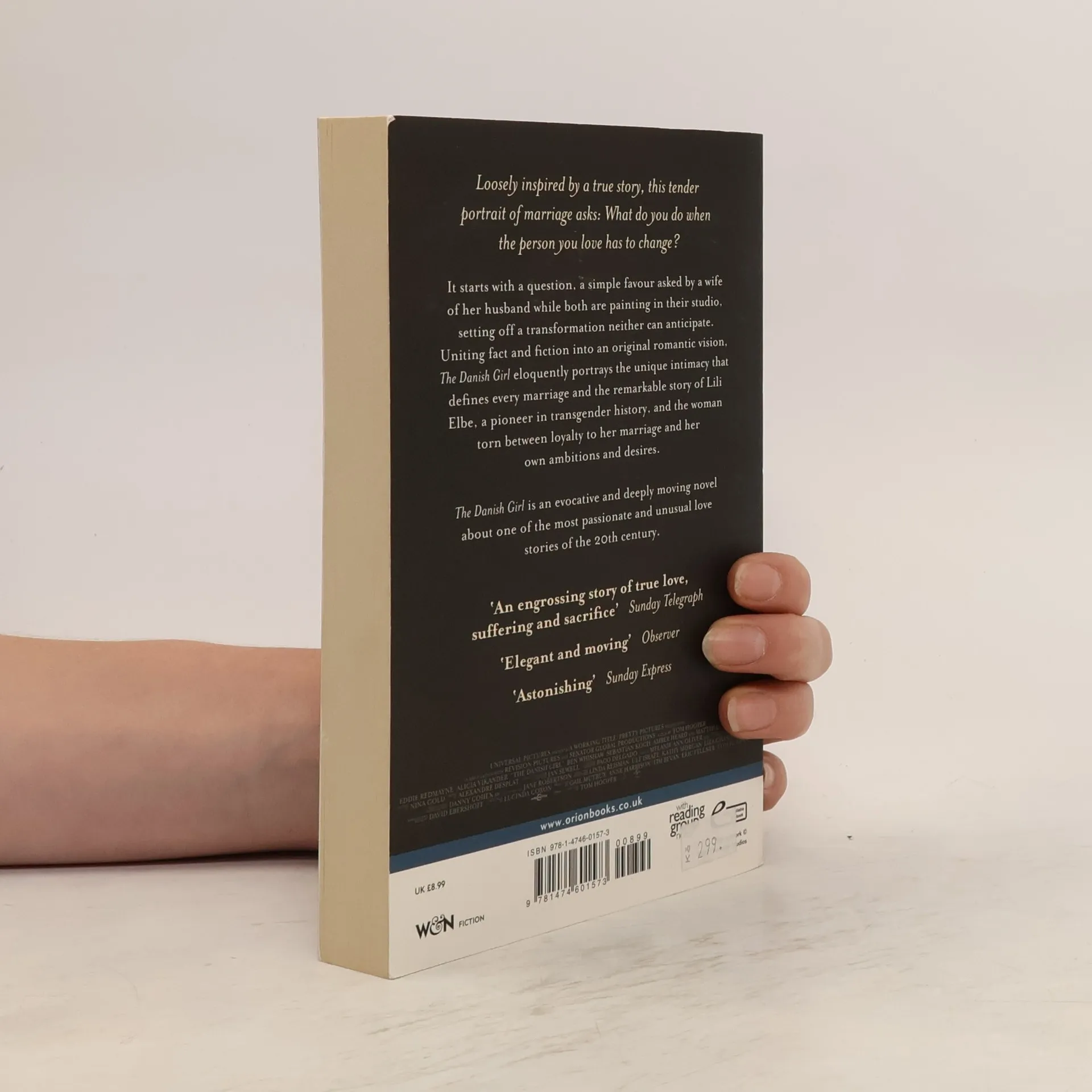 Now a major motion picture starring Eddie Redmayne and Oscar-winning Alicia Vikander 'An enthralling read' THE TIMES 'Heartbreaking and unforgettable, it is a complete triumph' BOSTON GLOBE 'Beautifully written. It is absolutely engrossing' SUNDAY EXPRESS Loosely inspired by a true story, this tender portrait of marriage asks: What do you do when the person you love has to change? It starts with a question, a simple favour asked by a wife of her husband while both are painting in their studio, setting off a transformation neither can anticipate. Uniting fact and fiction into an original romantic vision, The Danish Girl eloquently portrays the unique intimacy that defines every marriage and the remarkable story of Lili Elbe, a pioneer in transgender history, and the woman torn between loyalty to her marriage and her own ambitions and desires. The Danish Girl is an evocative and deeply moving novel about one of the most passionate and unusual love stories of the 20th century.