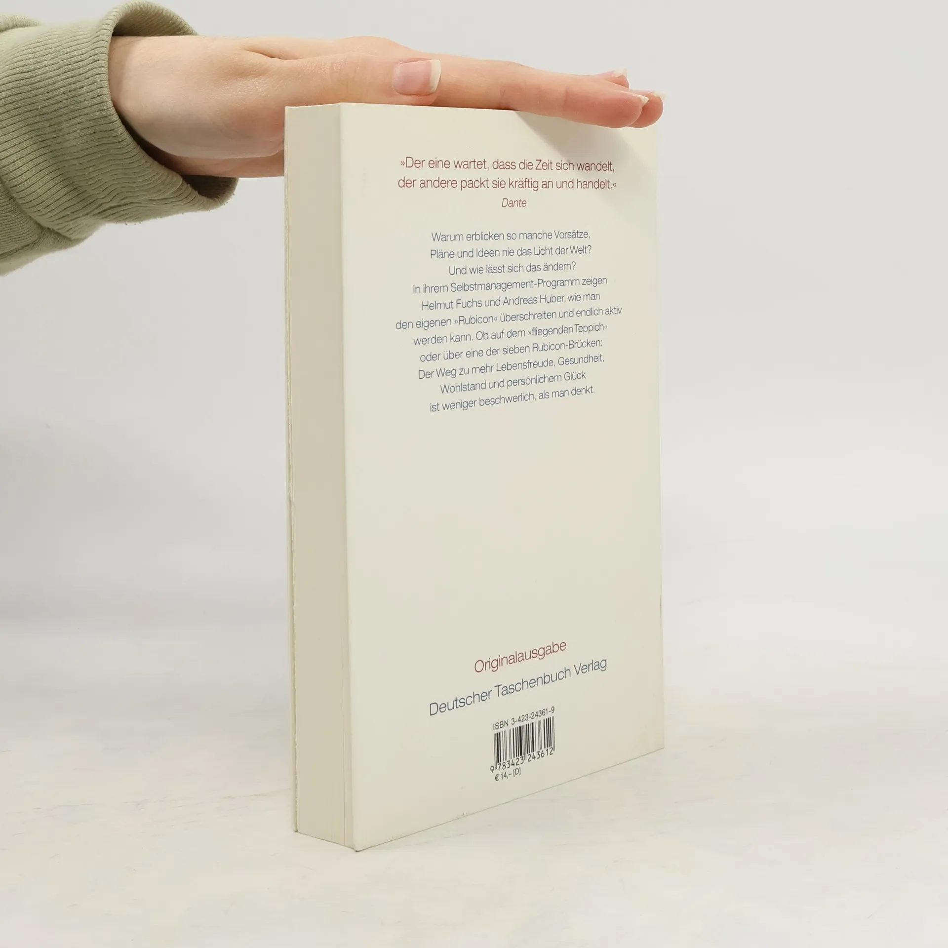 Nicht warten, starten! Beste Vorsätze im Gepäck, tolle Ideen im Kopf, perfekte Pläne in der Schublade – und nie wird was draus? Warum sind anscheinend immer weniger Menschen bereit, den entscheidenen Schritt zur Verwirklichung ihrer Wünsche und Lebensziele wirklich zu machen? Helmut Fuchs und Andreas Huber haben mit dem »Rubicon-Prinzip« ein 7-Kompetenzen-Programm ausgearbeitet, das die persönliche wie auch die unternehmerische Handlungsbereitschaft stärkt. Das »Rubicon-Prinzip« macht die Qualitäten Cäsars sowie die Erkenntnisse der Motivations- und Willensforschung für die vielfältigen Herausforderungen der heutigen Zeit nutzbar. Und es bietet dem Leser überzeugende Argumentation und Inspiritation, mutig und engagiert eigene Erfolgswege zu definieren und zu beschreiten.