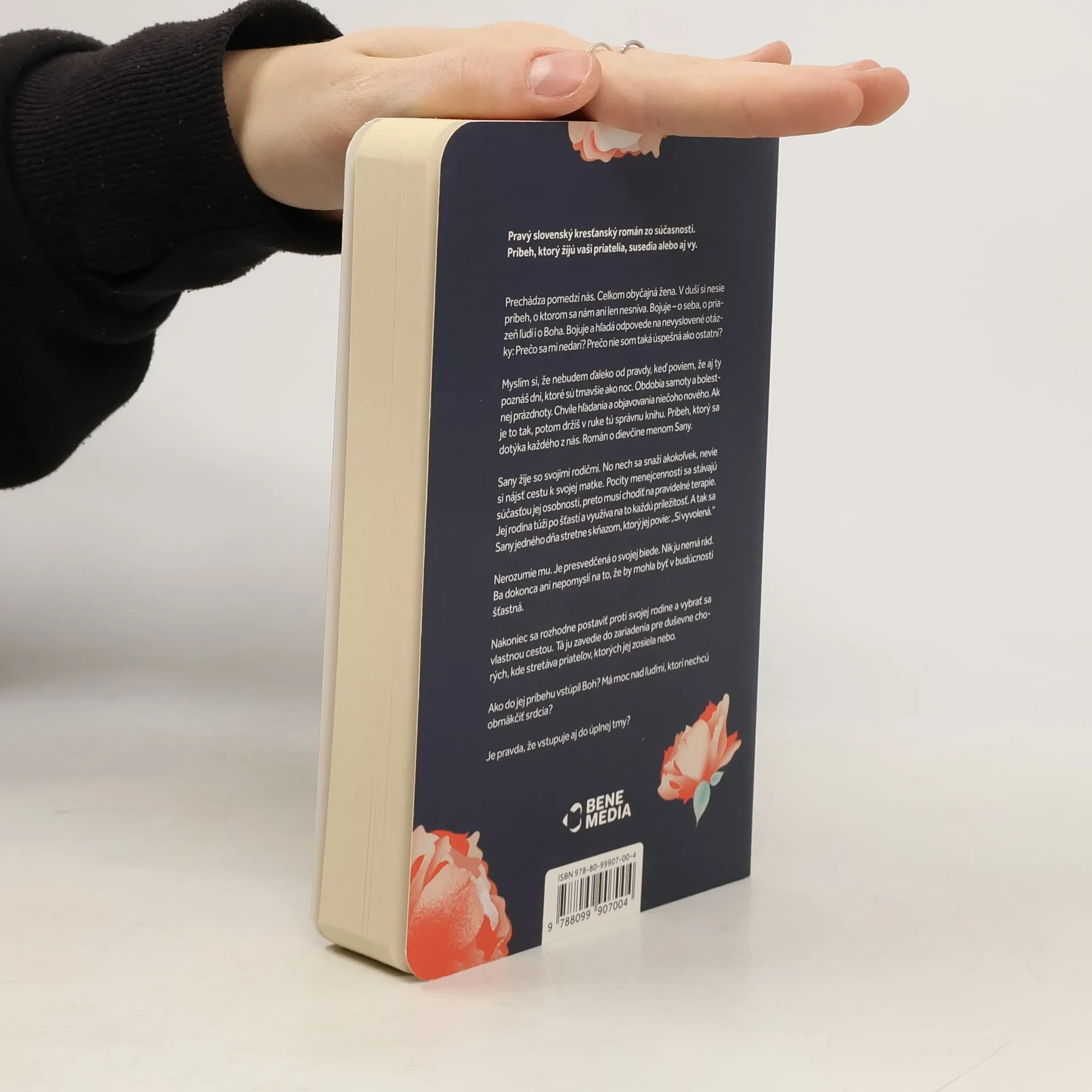 Prvý slovenský kresťanský román. Dej: Prechádza pomedzi nás. Celkom obyčajná žena. V duši si nesie príbeh, o ktorom sa nám ani len nesníva. Bojuje o seba, o priazeň ľudí i o Boha. Bojuje a hľadá odpovede na nevyslovené otázky: Prečo sa mi nedarí? Prečo nie som taká úspešná ako ostatní? Myslím si, že nebudem ďaleko od pravdy, keď poviem, že aj ty poznáš dni, ktoré sú tmavšie ako noc. Obdobia samoty a bolestnej prázdnoty. Chvíle hľadania a objavovania niečoho nového. Ak je to tak, potom držíš v ruke tú správnu knihu. Príbeh, ktorý sa dotýka každého z nás. Román o dievčine menom Sany. Sany žije so svojimi rodičmi. No nech sa snaží akokoľvek, nevie si nájsť cestu k svojej matke. Pocity menejcennosti sa stávajú súčasťou jej osobnosti, preto musí chodiť na pravidelné terapie. Jej rodina túži po šťastí a využíva na to každú príležitosť. A tak sa Sany jedného dňa stretne s kňazom, ktorý jej povie: Si vyvolená. Nerozumie mu. Je presvedčená o svojej biede. Nik ju nemá rád. Ba dokonca ani nepomyslí na to, že by mohla byť v budúcnosti šťastná. Nakoniec sa rozhodne postaviť proti svojej rodine a vybrať sa vlastnou cestou. Tá ju zavedie do zariadenia pre duševne chorých, kde stretáva priateľov, ktorých jej zosiela nebo. Ako do jej príbehu vstúpil Boh? Má moc nad ľuďmi, ktorí nechcú obmäkčiť srdcia? Je pravda, že vstupuje aj do úplnej tmy?
