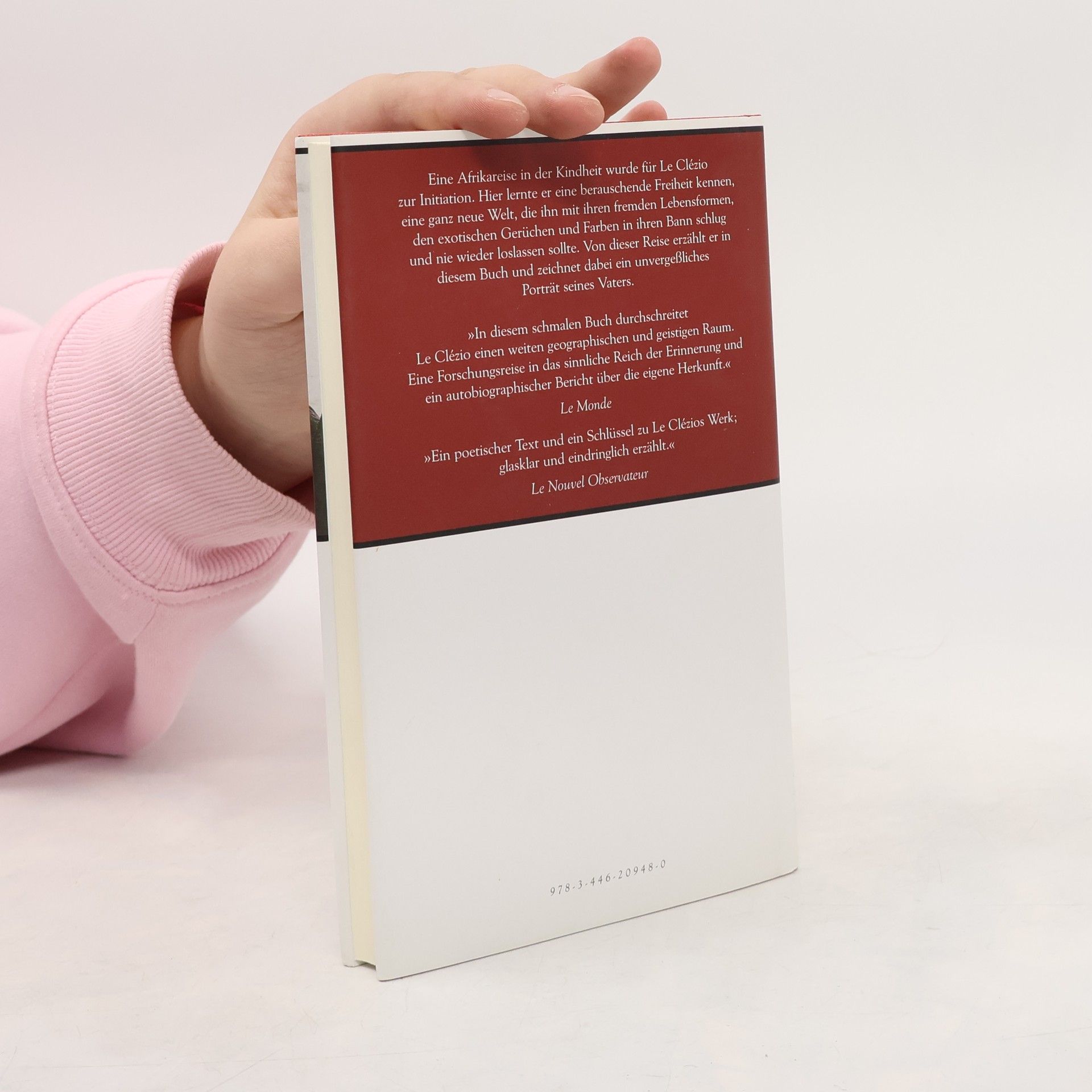 Eine Afrikareise in der Kindheit wurde für Le Clézio, einem der bedeutendsten zeitgenössischen französischen Schriftsteller, zur Initiation. Hier lernte er eine Welt kennen, die ihn mit ihren fremden Lebensformen, den exotischen Gerüchen und Farben in ihren Bann schlug und nie wieder loslassen sollte. Und so erzählt er von der Reise, die ihn 1948 nach Afrika führte und wo er zum ersten Mal seinem Vater begegnete. Einem Tropenarzt, der in Nigeria Lepra und Sumpffieber kurierte, den Kolonialismus hasste, mit einer Piroge das Landesinnere erkundete und Landschaften und Menschen fotografierte. Und er erzählt die Liebesgeschichte seiner Eltern, die in Kamerun, vor seiner Geburt, spielt, als der Traum eines von Krankheit und Fremdherrschaft befreiten Afrika noch realisierbar schien.