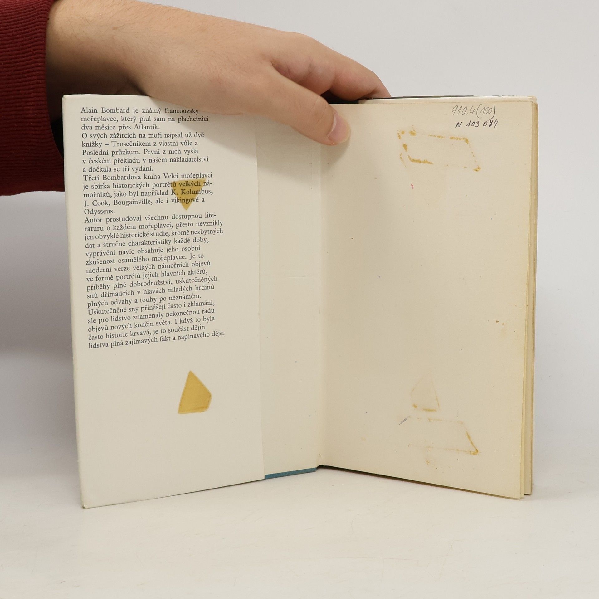 Sbírka historických portrétů velkých mořeplavců (Joshua Slocum, Cristobal Colón / K. Kolumbus, Martin Pinzón, J. Cook, L.-A. de Bougainville, vikingové, Odysseus, Pýthéas, Flibustýři, dobyvatelé Jižního a Severního pólu). Autor prostudoval všechnu dostupnou literaturu o každém mořeplavci,přesto nevznikly jen obvyklé historické studie, kromě nezbytných dat a stručné charakteristiky každé doby, vyprávění navíc obsahuje jeho osobní zkušenost osamělého mořeplavce. Je to moderní verze velkých námořních objevů ve formě portrétů jejich hlavních aktérů, příběhy plné dobrodružství, uskutečněných snů dřímajících v hlavách mladých hrdinů plných odvahy a touhy po neznámém.