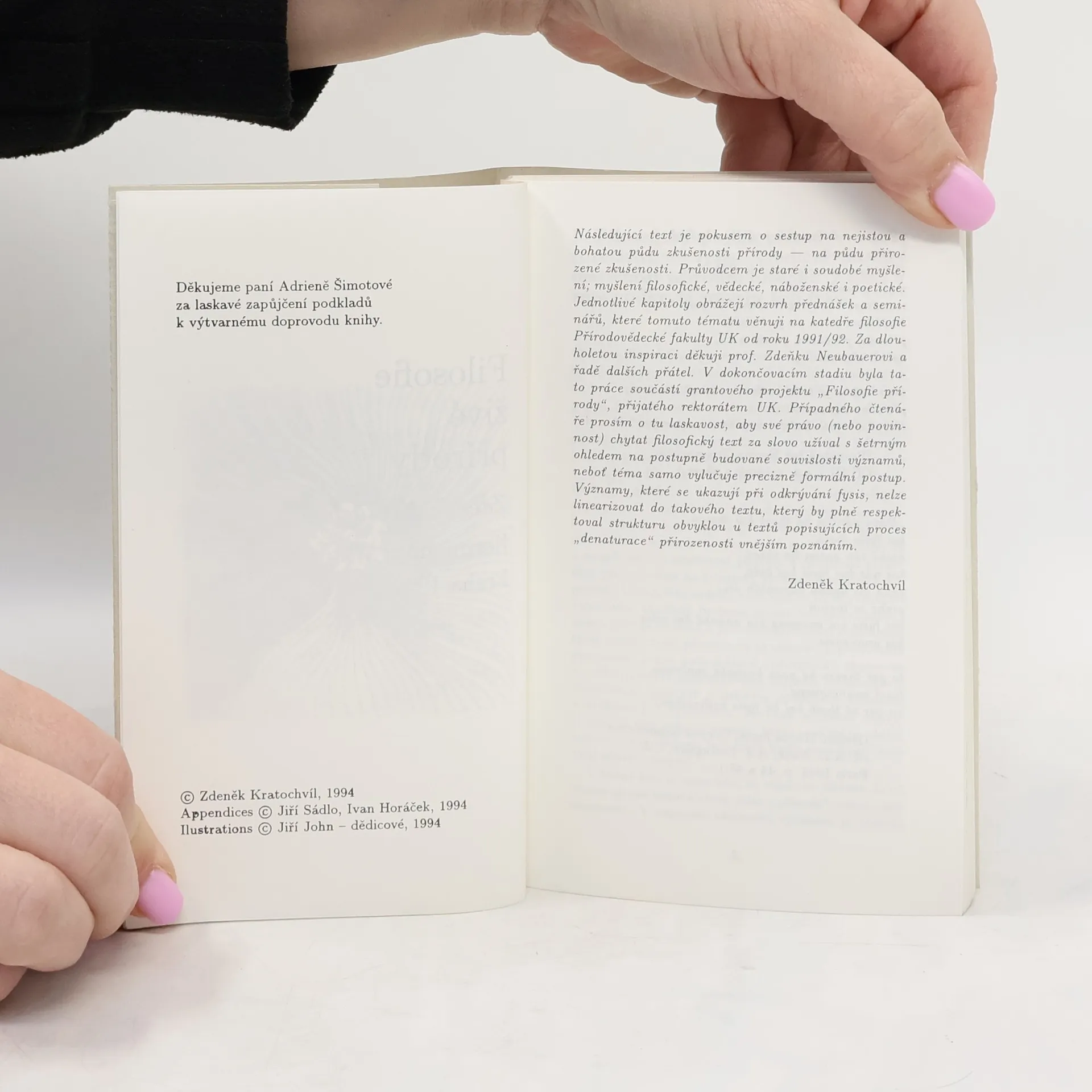 Z. Kratochvíl svůj text označuje jako „pokus o sestup na nejistou a bohatou půdu zkušenosti přírody – na půdu přirozené zkušenosti“. V úvodu autor podává etymologický výklad pojmu příroda, respektive přirozenost, a zabývá se jejími jednotlivými aspekty (co vše k celku přirozenosti patří, jakým způsobem ji uchopujeme…). Z. Kratochvíl upozorňuje, že zasutí smyslu pro přirozenost se projevuje poškozením světa – proto je nutné zabývat se světem a jeho pluralitou – jako pozadím jevů a kontextem věcí, jako sounáležitostí horizontů, jako paradigmatem uchopování přirozeností. Avšak existuje i svět přirozený, ne jen jako problém filosofický, ale také jako problém životní. Kratochvíl dále podává výklad kategorií, pomocí kterých svět vnímáme: hmoty, prostoru a času. Další kapitoly Kratochvíl věnuje živé přírodě (ptá se po identitě živého organismu, vztahu života a bytí), evoluci (pokouší se o „zkušenostní popis evolučního dění, rozebírá Darwina a neodarwinistický evolucionismus) a noetické problematice (poznatelnost živého). Hovoří o paradigmatech skutečnosti, přičemž se zaměřuje na novověké paradigma.