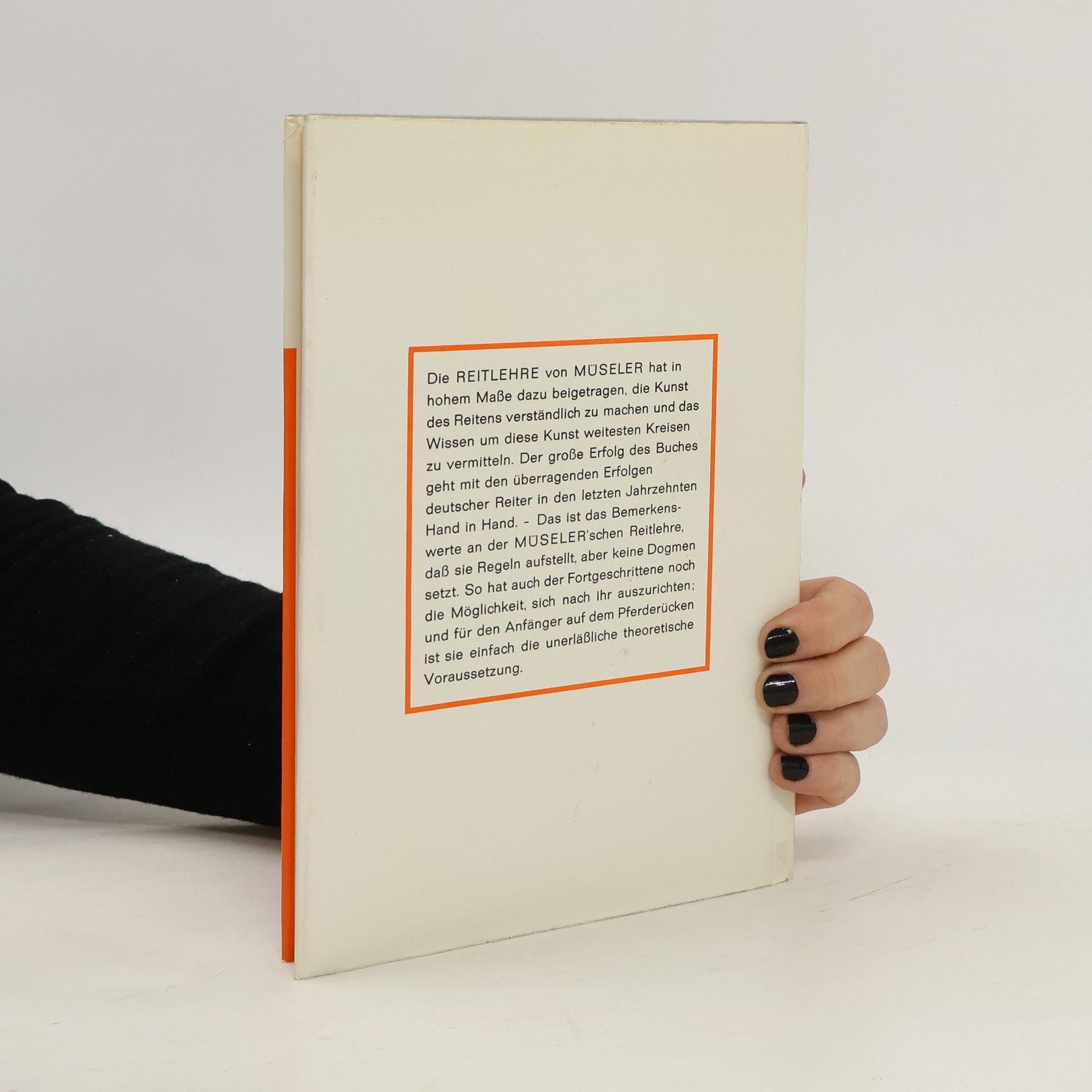 Müselers Reitlehre aus dem Jahr 1933 gilt als zeitloser Klassiker. Sie trägt seit Jahrzehnten dazu bei, die Kunst des Reitens verständlich zu machen und wichtige Grundlagen zur Ausbildung von Reiter und Pferd zu vermitteln. Im Vordergrund steht für Müseler, dass Reiter ein Gefühl für das entwickeln, was sie auf dem Pferd tun. Die Erklärungen Müselers waren jedoch teilweise missverständlich und führten zu Diskussionen. In dieser überarbeiteten Neuauflage werden solche Aussagen aufgegriffen und in Fußnoten aus heutiger Sicht kommentiert. Das Buch ist optisch komplett modernisiert und mit neuem Bildmaterial ausgestattet.