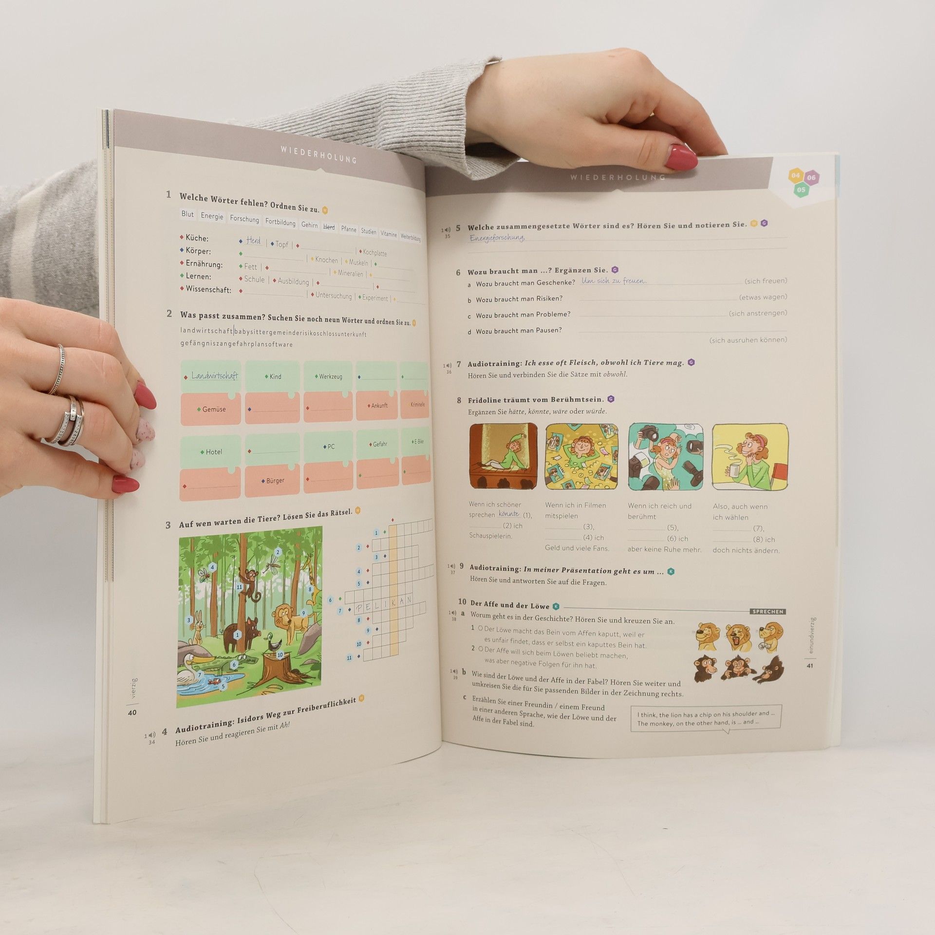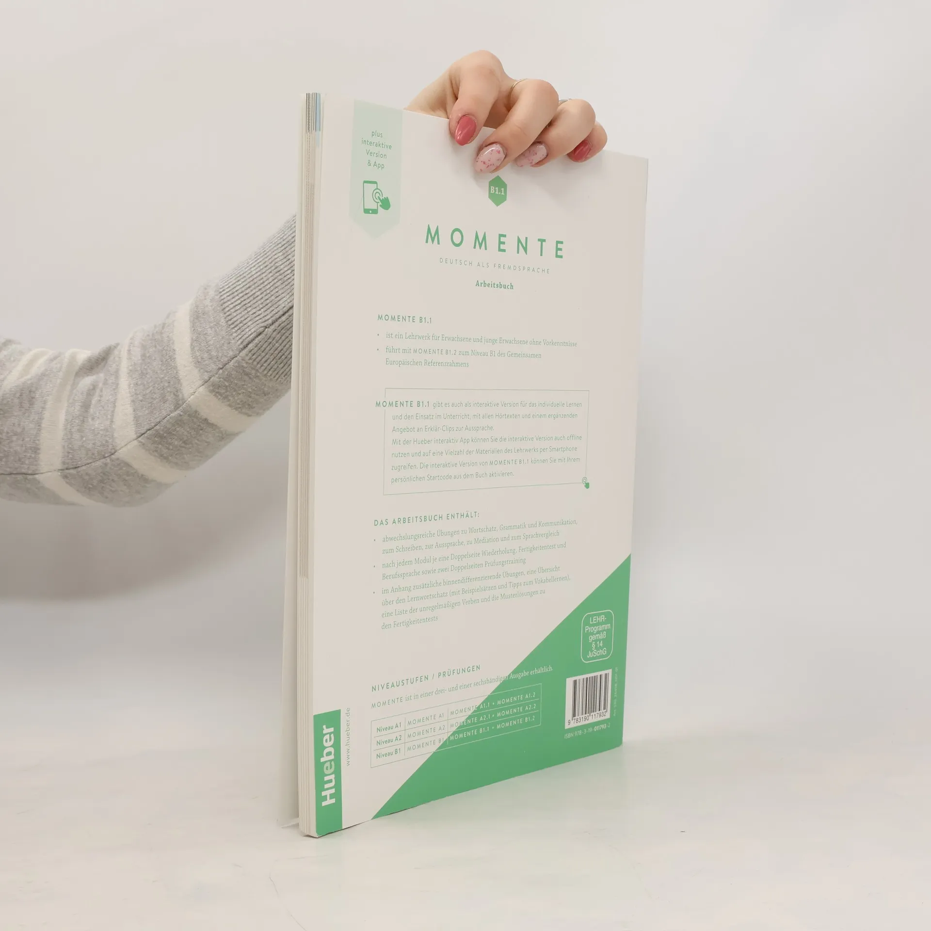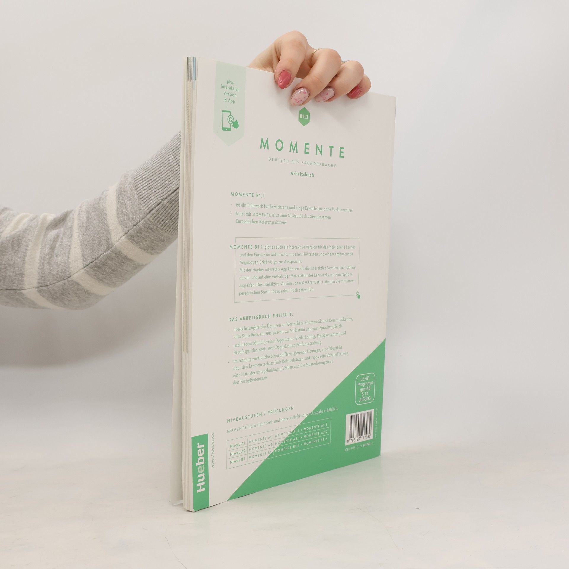 Momente to najnowsza propozycja wydawnictwa Hueber - innowacyjny kurs, który jest odpowiedzią na wyzwania dydaktyczne, jakie niesie ze sobą era cyfrowej transformacji. Umożliwia naukę zarówno z wykorzystaniem drukowanego podręcznika, jak i urządzeń mobilnych, stacjonarnie i zdalnie, a także pozwala dopasować materiał do indywidualnych potrzeb uczniów. Został przygotowany według najnowszych wytycznych CEFR, ze szczególnym uwględnieniem takich aspektów jak wielokulturowość, wielojęzyczność oraz kompetencje w obszarze mediacji językowej. Warto wiedzieć: książka ucznia oraz zeszyt ćwiczeń zawierają kod do wydania interaktywnego, które jest dostępne na platformie Hueber interaktiv.