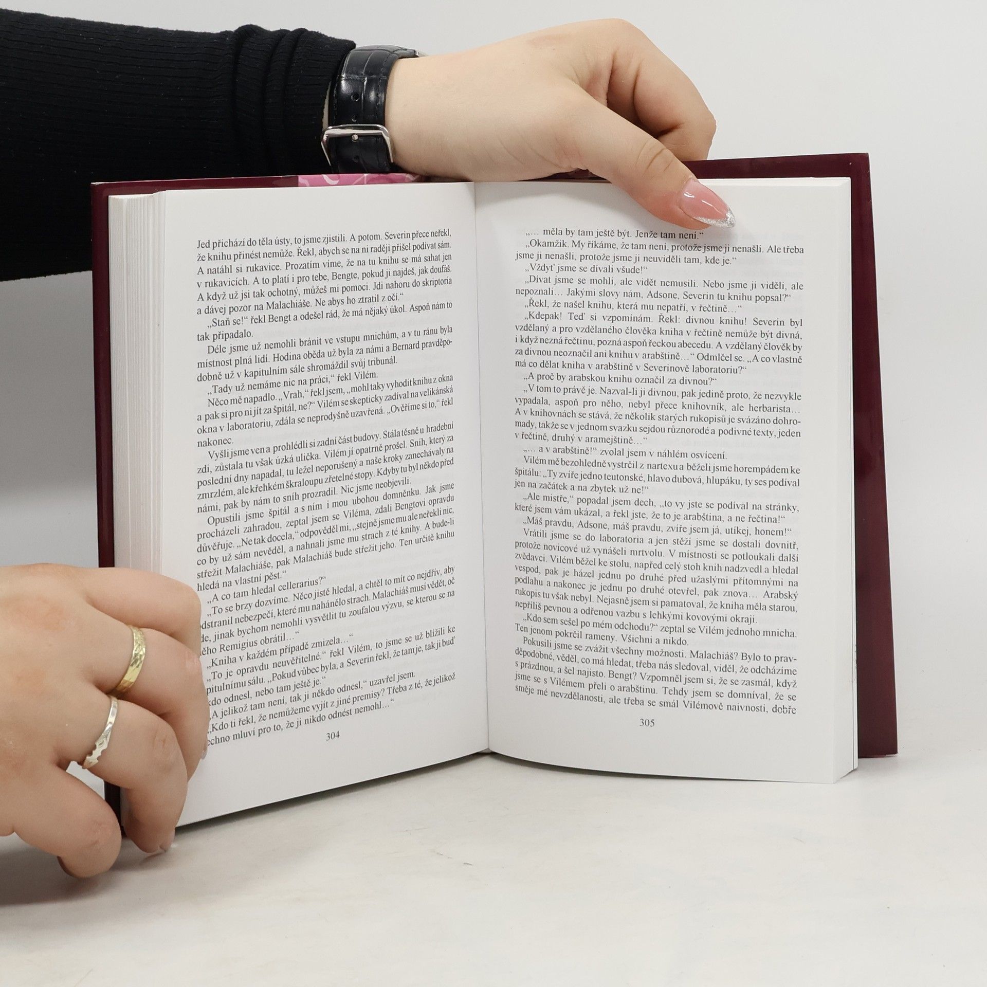 Prostřednictvím příběhu o vyšetřování několika záhadných vražd evokuje autor nejen dobovou atmosféru, ale hlavně spory mezi císařem a papežem. Vypravěčem je starý mnich, který před smrtí líčí události, jichž byl v mládí přímým svědkem.