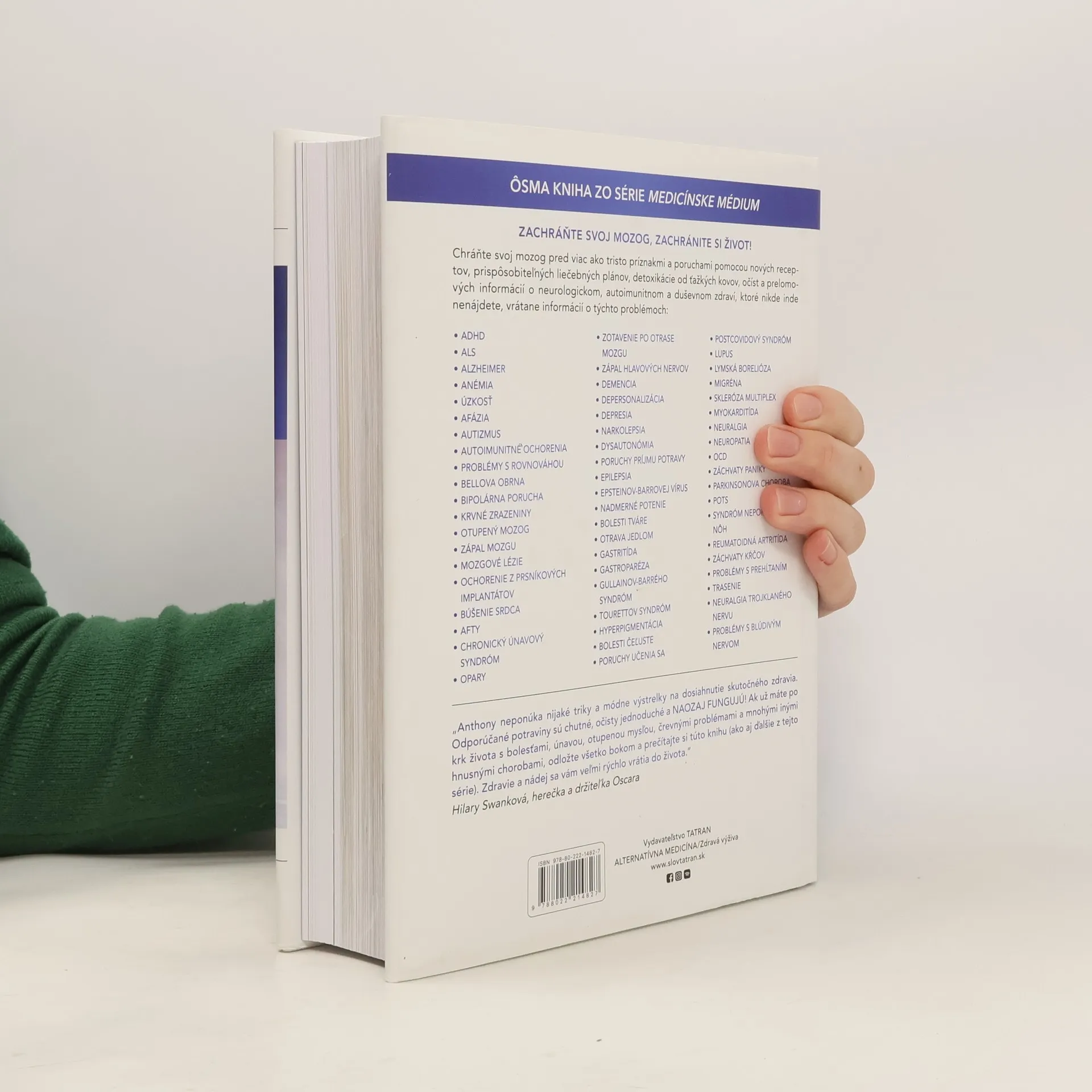 Napriek pokroku v lekárskom výskume veda stále nepozná celú pravdu o schopnosti mozgu uzdraviť sa. Chronické ochorenia či duševné zdravie tak ostávajú pre medicínu sčasti záhadou. No čo ak svojim neurologickým problémom dokážeme pomôcť vďaka metódam, ktoré ešte nikomu nenapadli? Anthony William, Medicínske médium, ponúka v knihe Liečebné plány, očisty a recepty na záchranu mozgu súcitnú pomoc, ktorá dokáže zmeniť život a pomôcť pri liečbe širokého spektra mozgových a neurologických príznakov, ochorení a porúch, vrátane úzkosti, depresie, vyhorenia, OCD, autizmu, závislosti, záchvatov kŕčov, porúch príjmu potravy, problémov s blúdivým nervom, problémov s hlavovými nervami, Alzheimerovej a Parkinsonovej choroby, ALS a mnohých iných. Okrem praktických postupov, ktoré si viete prispôsobiť vašim individuálnym potrebám, táto kniha ponúka viac ako 100 receptov na prípravu chutných pokrmov pre zdravie mozgu, účinné spôsoby meditácie, rady pri užívaní doplnkov stravy aj pokyny pri absolvovaní očisty alebo detoxikácie ťažkých kovov. Či už sa chcete uzdraviť, alebo preventívne chrániť svoje zdravie, našli ste odpovede na včasnú záchranu svojho mozgu, ktoré nikde inde nenájdete.
