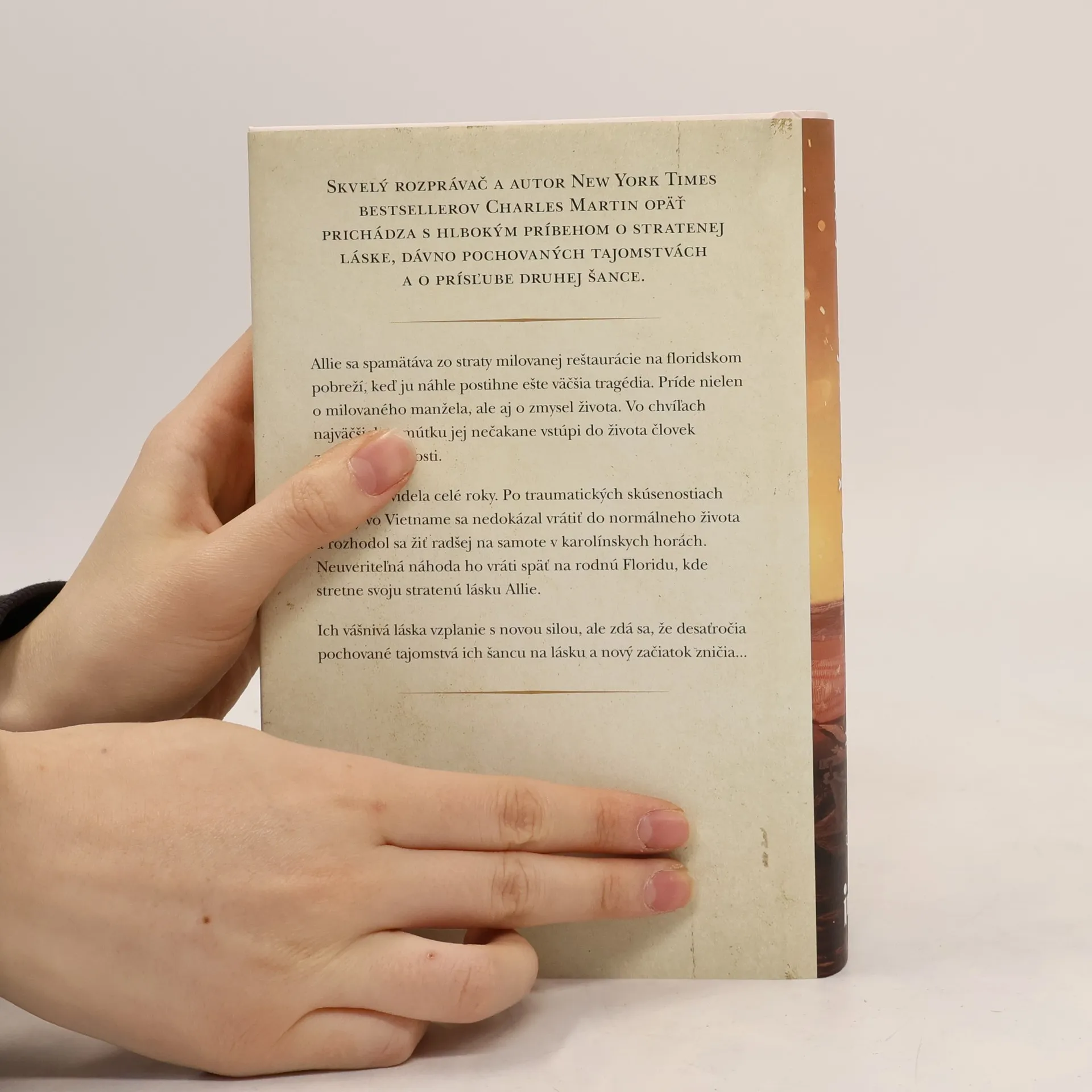 Allie sa spamätáva zo straty milovanej reštaurácie na floridskom pobreží, keď náhle príde o druhého manžela, ktorý zahynie pri hrozivej automobilovej nehode. Je zničená a nemá už nádej, obáva sa budúcnosti, no v tej chvíli sa pri nej zrazu objaví človek z jej minulosti. Joseph bol preč niekoľko rokov, mal zranené nielen telo, ale aj doráňanú dušu a po traumatických skúsenostiach z vojny vo Vietname sa nevedel začleniť do normálneho života. Keď sa napokon rozhodne utiahnuť do ústrania a žiť pokojný život v chate vysoko v karolínskych horách, v neďalekom lese objaví matku s dvoma deťmi, ktorí sa stratili. Nikdy mu nechýbala sila a odvaha, preto sa rozhodne pomôcť im a zaviezť ich k príbuzným na Floridu. Keď je už tam, povie si, že sa zastaví aj v svojom rodisku. Je to tesne po nehode a traume, ktorú práve prežíva jeho kamarátka z detstva a stratená láska Allie. Joseph ponúkne Allie pomoc pri obnovení reštaurácie a zdá sa, že sa medzi nimi znova rozhorí stará láska, lenže na povrch sa začnú vynárať tajomstvá staré štyridsaťpäť rokov a hrozí, že zničia nielen nádej na druhú šancu v živote, ale aj lásku.