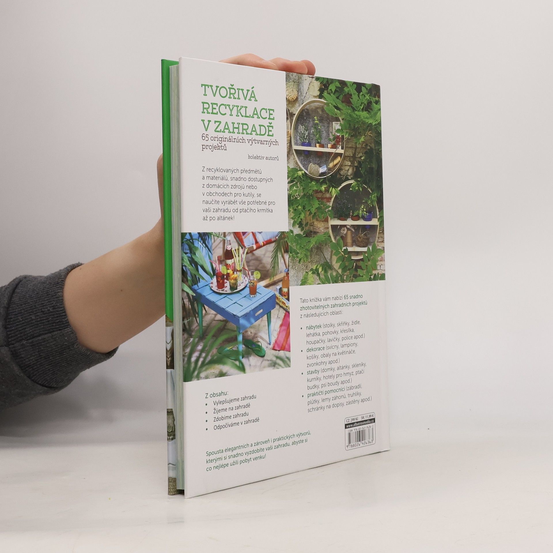 Z recyklovaných předmětů a materiálů, snadno dostupných z domácích zdrojů nebo v obchodech pro kutily, se naučíte vyrábět vše potřebné pro vaši zahradu od ptačího krmítka až po altánek! Tato knížka vám nabízí 65 snadno zhotovitelných zahradních projektů z následujících oblastí – nábytek (např. lehátka, lavičky, houpačky), dekorace (např. svícny, lampiony, obaly na květináče), stavby (např. altánky, skleníky, ptačí budky) a praktičtí pomocníci (např. plůtky, truhlíky, zástěny).