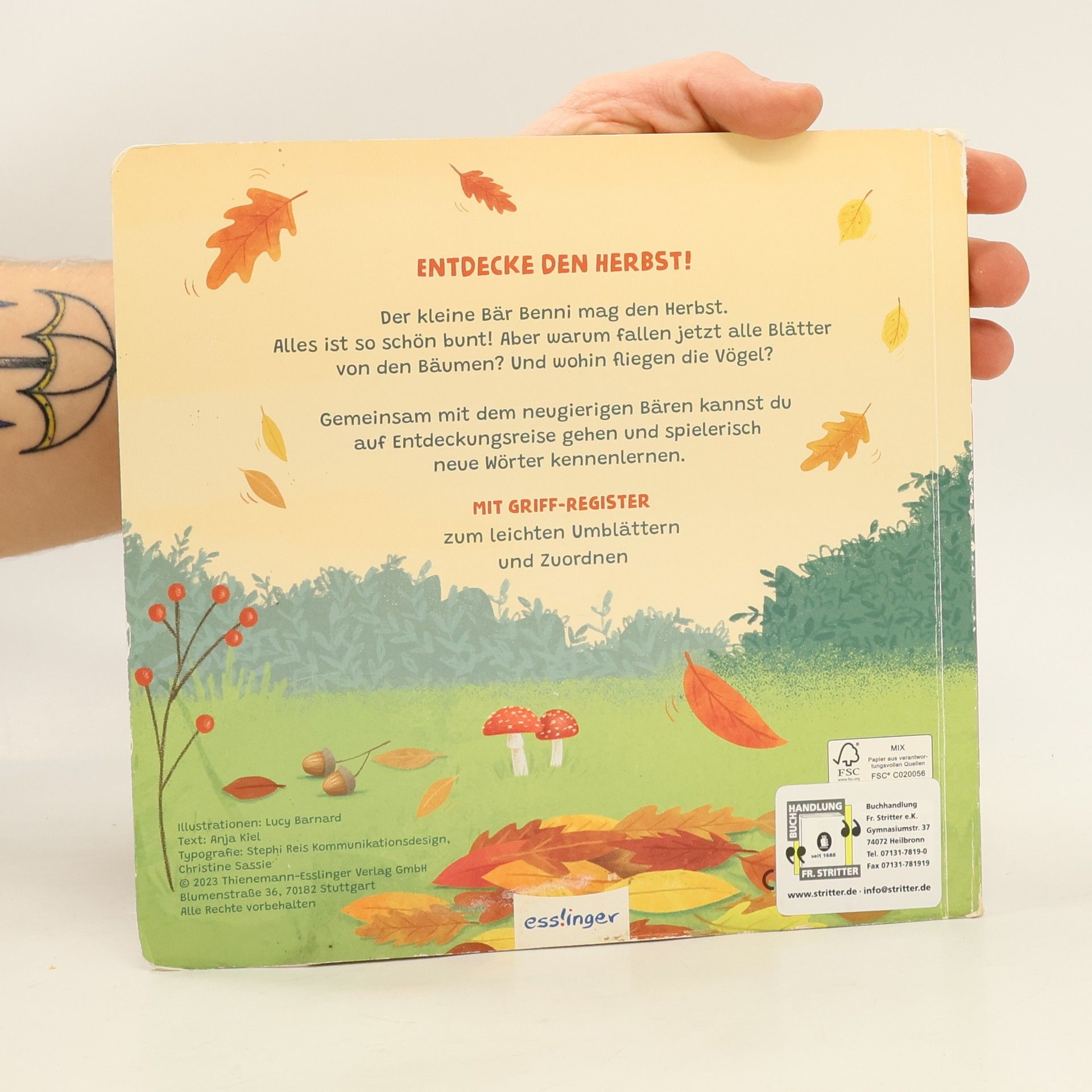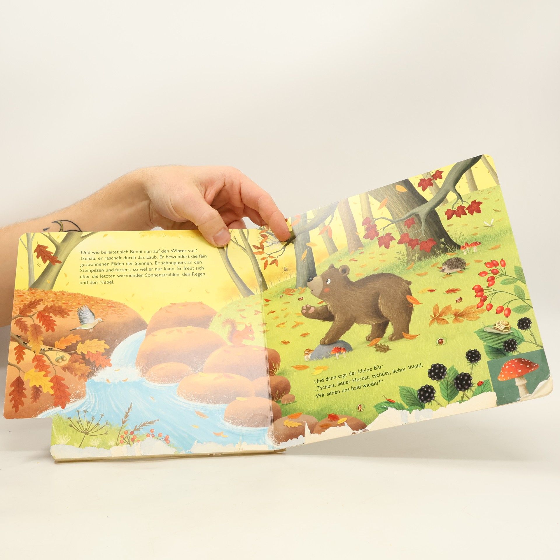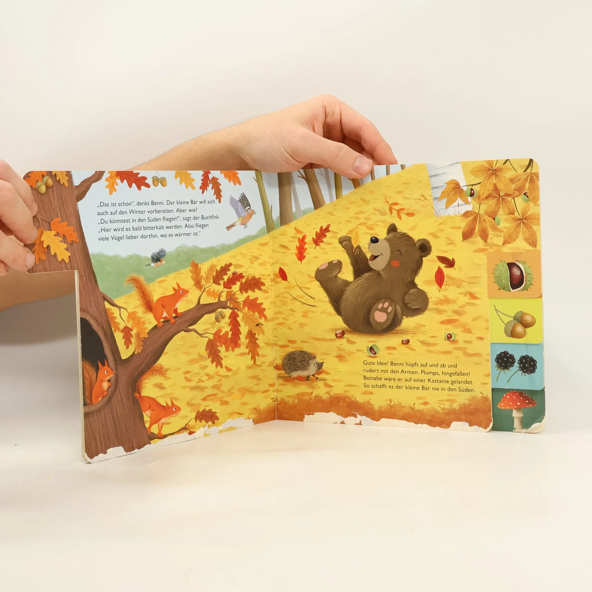 Der Herbst ist da! Ein wundervolles Mitmachbuch für die Allerkleinsten. Der kleine Bär Benni mag den Herbst. Alles ist so schön bunt! Aber warum fallen jetzt alle Blätter von den Bäumen? Und wohin fliegen die Vögel? Gemeinsam mit dem neugierigen Bären können Kinder den Herbst kennenlernen und anhand der Register spielerisch entdecken, dass der Herbst nicht nur schöne bunte Farben bereithält ... Mein erstes Buch der Jahreszeiten: Dank der stabilen Pappeseiten und der abgerundeten Register haben kleine Kinderhände hier alles im Griff und ihre Feinmotorik wird dadurch gleichzeitig gefördert. Ein idealer Begleiter durch den Herbst und ein Beschäftigungsspaß für Kinder ab 18 Monaten! Weitere Bücher der Reihe mit den bezaubernden Tierkindern: Henry, der kleine Hase - Im Frühling (9783480238187) Elli, die kleine Ente - Im Sommer (9783480238194) Ferdy, der kleine Fuchs - Im Winter (9783480238217)