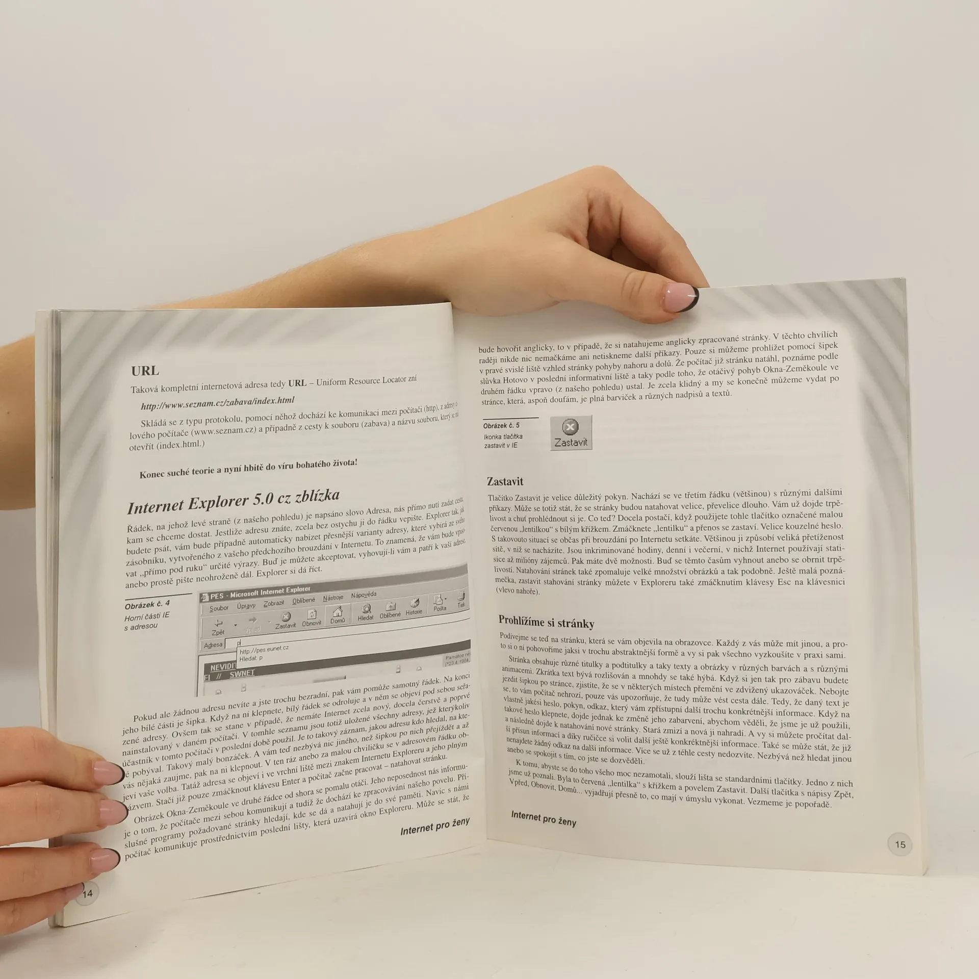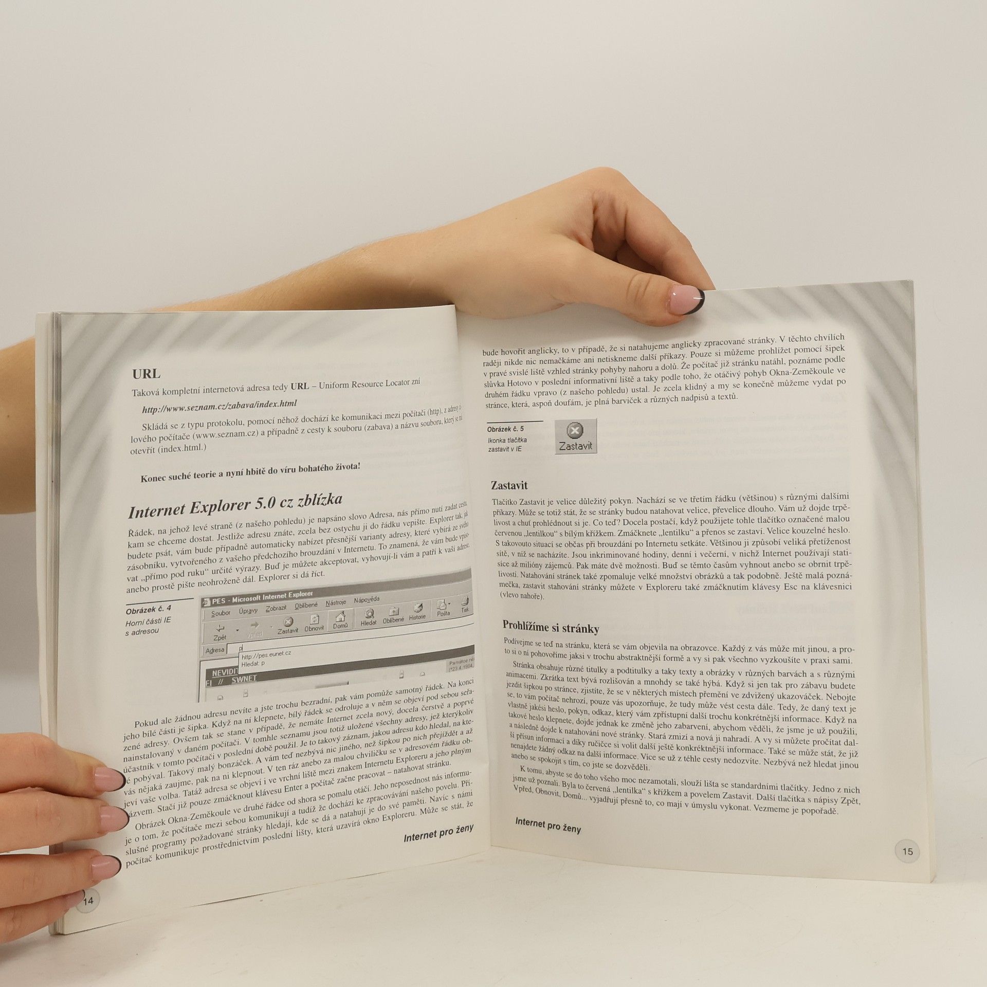 Příručka je určena především začátečnicím, a proto se hned na začátku dozvíme, co to vlastně Internet je a jak pracuje, jaké jsou způsoby připojení na něj (včetně výhod a nevýhod jednotlivých druhů), a to vše za pomoci textu a názorných obrázků. Naučíme se prohlížet webové stránky, ukládat obrázky, ukládat navštívené stránky mezi Oblíbené a v neposlední řadě se v tom všem orientovat. Nechybí ani seznámení s elektronickou poštou, zasíláním krátkých textových zpráv (sms) na mobilní telefony a chatováním (diskutováním) na Internetu. Určení publikace ženám se odrazilo v množství URL adres konkrétních stránek např. o módě, nakupování, zdraví a drbech ze společnosti. Technickému vybavení počítače a počítačovým virům jsou věnovány zvláštní kapitoly.