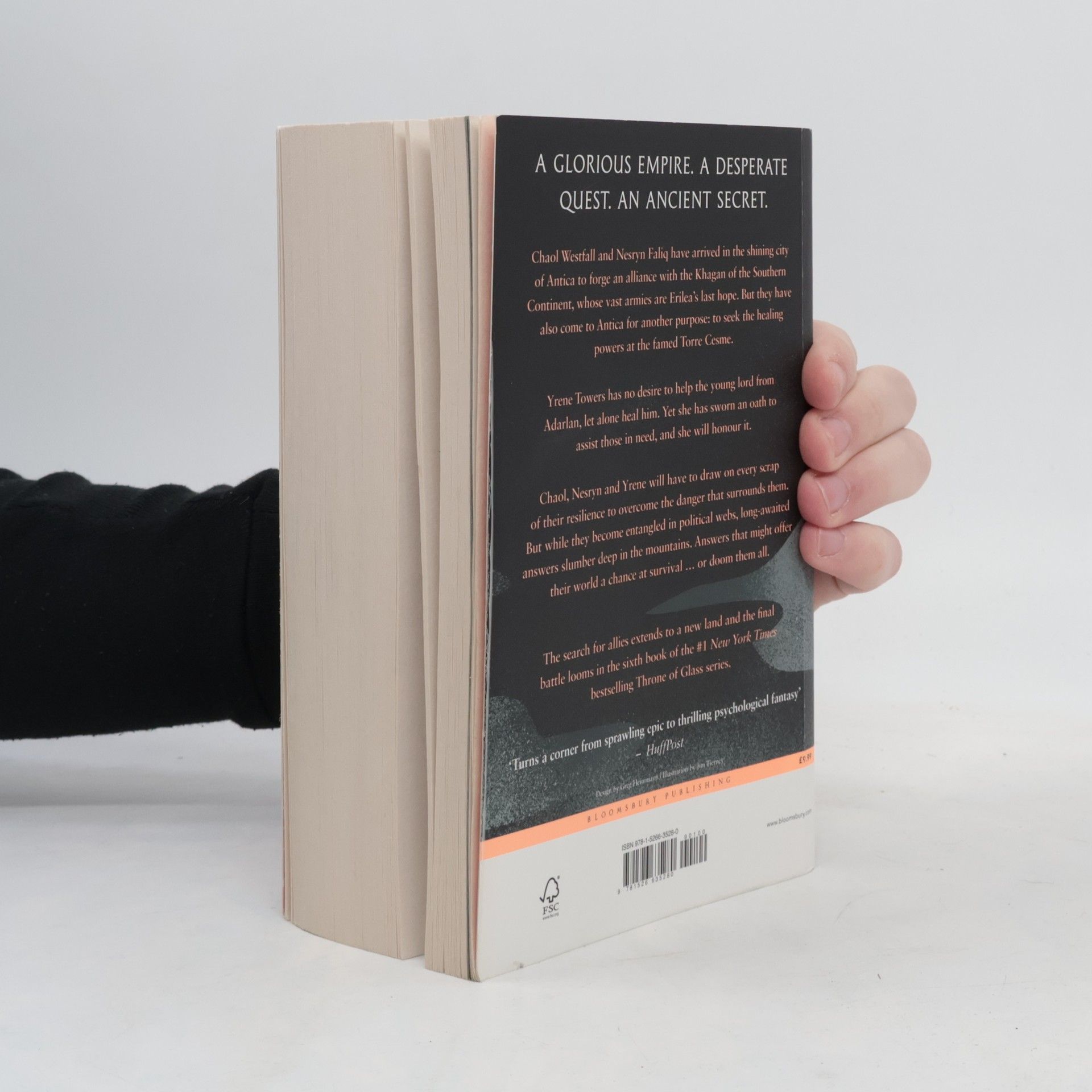 Chaol Westfall and Nesryn Faliq have arrived in the shining city of Antica to forge an alliance with the Khagan of the Southern Continent, whose vast armies are Erilea's last hope. But they have also come to Antica for another purpose: to seek healing at the famed Torre Cesme for the wounds Chaol received in Rifthold. After enduring unspeakable horrors as a child at the hands of Adarlanian soldiers, Yrene Towers has no desire to help the young lord from Adarlan, let alone heal him. Yet she has sworn an oath to assist those in need, and she will honour it. But Lord Westfall carries his own dark past, and Yrene soon realises that those shadows could engulf them both. Chaol, Nesryn, and Yrene will have to draw on every scrap of their resilience to overcome the danger that surrounds them. But while they become entangled in the political webs of the khaganate, long-awaited answers slumber deep in the mountains, where warriors soar on legendary ruks. Answers that might offer their world a chance at survival ... or doom them all. The final battle looms in this sixth book in the #1 New York Times bestselling Throne of Glass series.