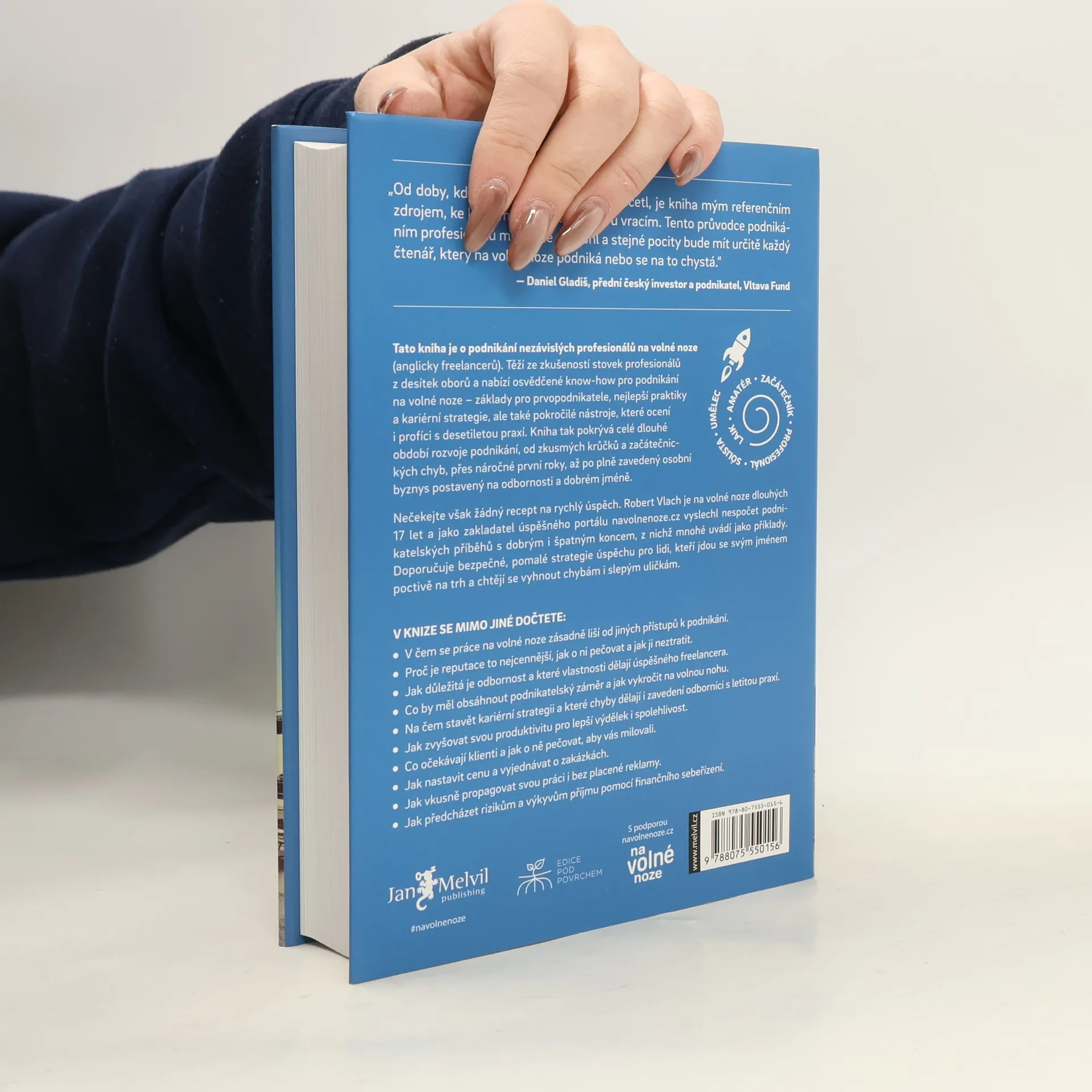 První kniha v češtině o podnikání nezávislých profesionálů těží ze zkušeností mnoha set českých freelancerů z desítek oborů. Nabízí osvědčené postupy a know-how pro podnikání na volné noze: základy pro prvopodnikatele, nejlepší praktiky a kariérní strategie, ale také pokročilé nástroje, které ocení i profíci s více než desetiletou podnikatelskou praxí. Kniha tak pokrývá celé dlouhé období rozvoje podnikání, od zkusmých krůčků a začátečnických chyb, přes náročné první roky, až po plně zavedený osobní byznys postavený na odbornosti a dobrém jméně (s překvapivou pointou na závěr).