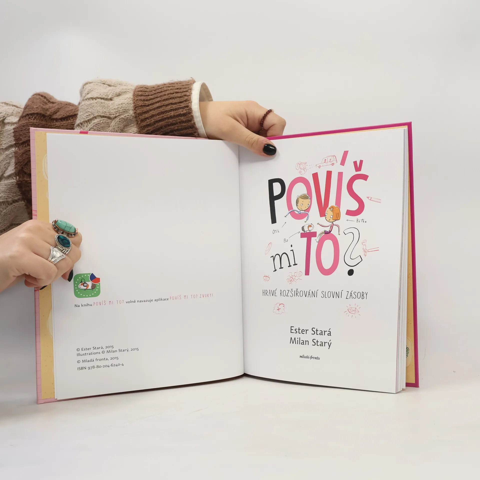 Kniha speciální pedagožky, logopedky a autorky dětských knih Ester Staré a ilustrátora Milana Starého nenásilně a zábavnou formou podněcuje mluvní apetit, rozvíjí vyjadřovací schopnosti, slovní zásobu a jazykový cit dítěte. Děti se prostřednictvím rozmanitých konverzačních témat a netradičních úkolů učí utřídit si a zformulovat myšlenky, hrát si s jazykem a správně se vyjadřovat. Kniha vybízí k mluvení i svou grafickou podobou. Publikace je určena jak dětem a jejich rodičům, tak i logopedům a učitelům.