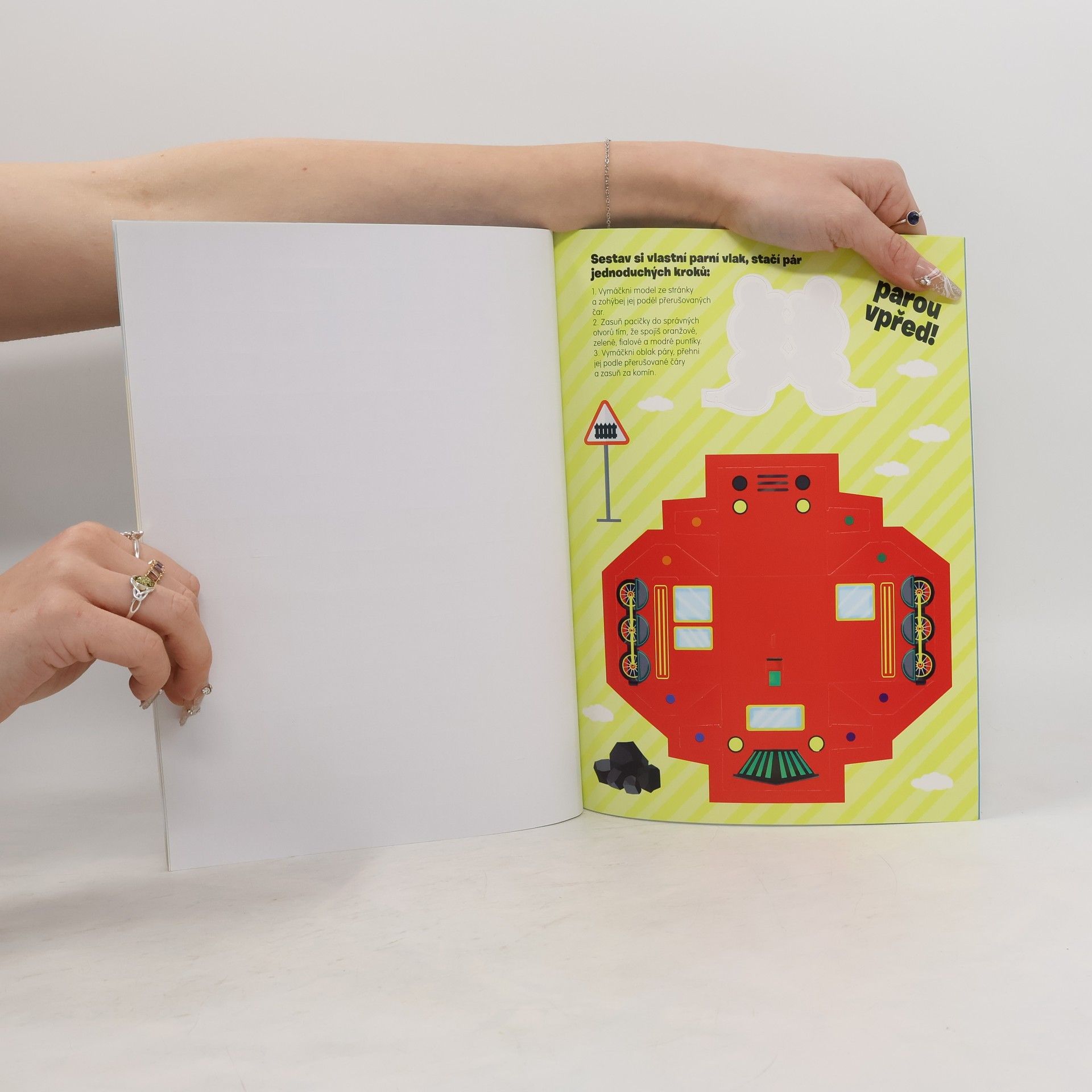 Na každé stránce této knížky na tebe čeká mnoho úloh a výzev! Doplňuj chybějící díly na vlaky, pomoz ztracenému vlaku najít cestu na nádraží nebo se nauč nakreslit naprosto úžasný vlak! Součástí knížky je více než 300 samolepek a také vytlačovací malé modely vlaků, které rozhodně potěší každého malého vlakového nadšence! Tak plnou parou vpřed, nastupovat a odjíždíme za zábavou a dobrodružstvím.
