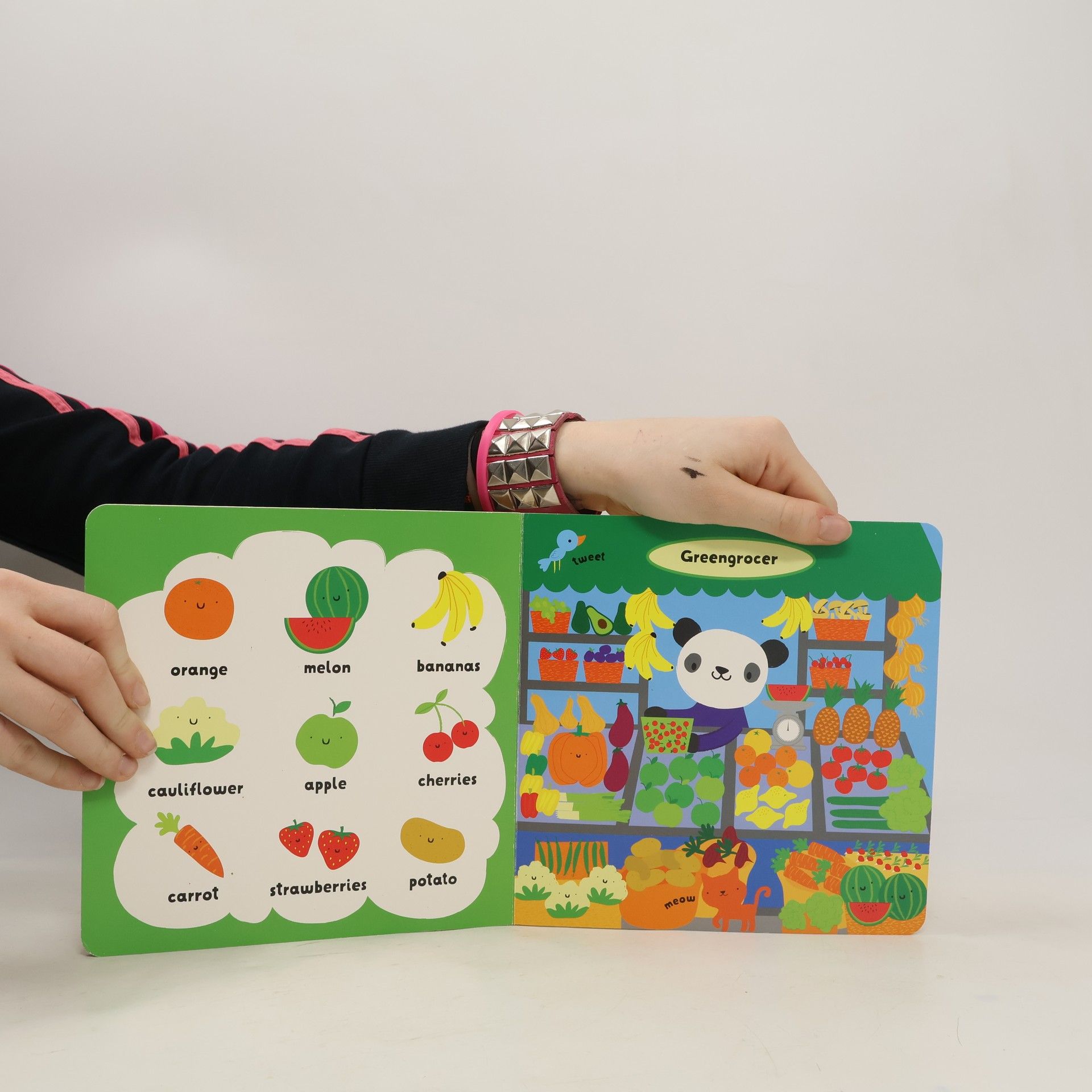 Bright shopping scenes will help little children learn new words. A delightful wordbook, filled with pictures of friendly animals to meet on the way to the shops. Toddlers can explore a greengrocer, see delicious treats in a bakery window, visit a toyshop, and lots more. On every page, there are new words to say, from toys and food to clothes and animal sounds.