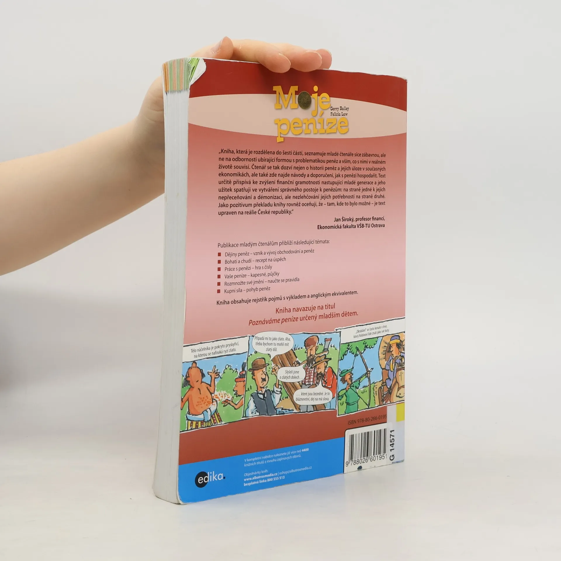 Publikace mladým čtenářům přiblíží následující témata: Dějiny peněz – vznik a vývoj obchodování a peněz, Bohatí a chudí – recept na úspěch, Práce s penězi – hra s čísly, Vaše peníze – kapesné, půjčky, Rozmnožte své jmění – naučte se pravidla, Kupní síla – pohyb peněz.