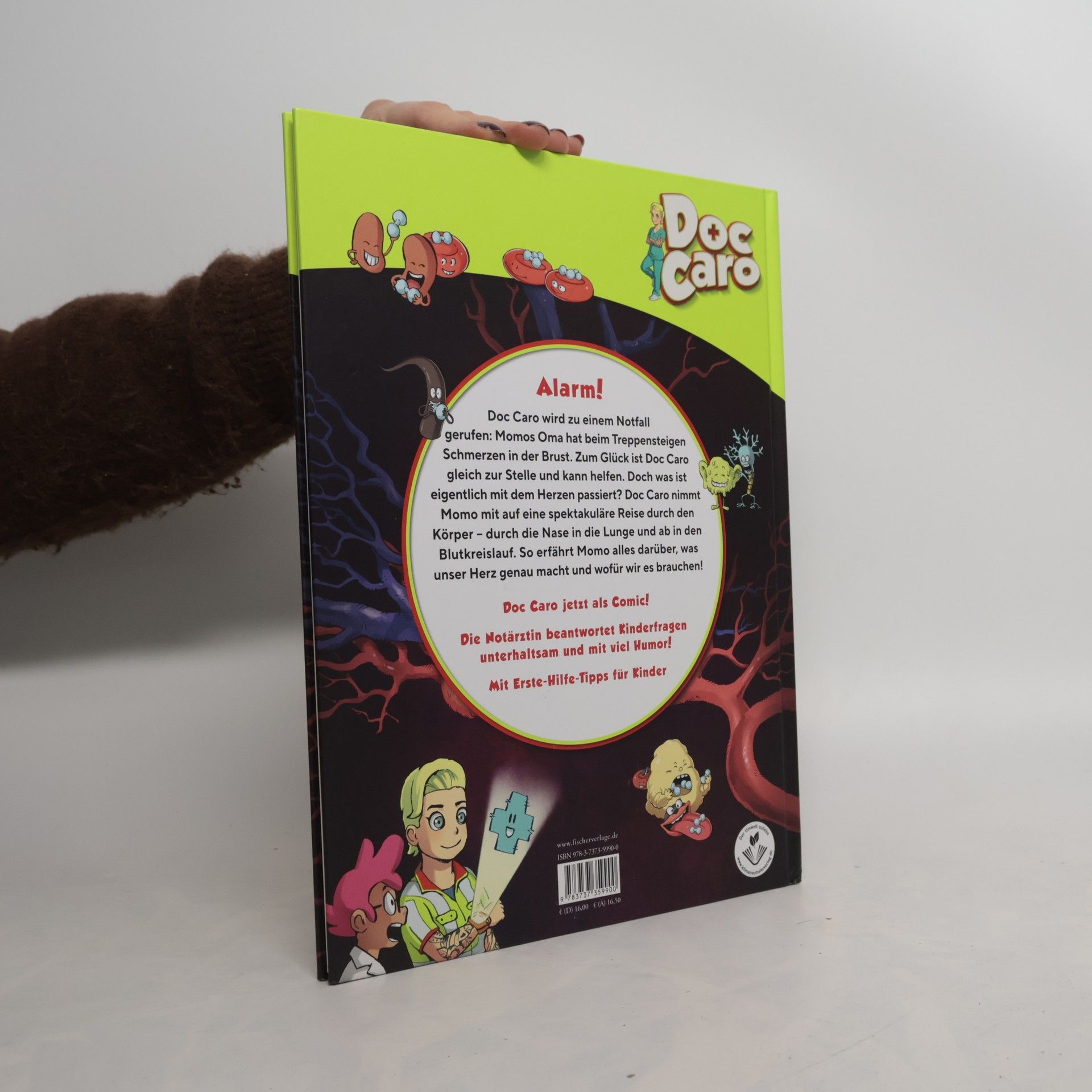 Doc Caro jetzt als Comic! Doc Caro wird zu einem Notfall gerufen – Schmerzen im Brustkorb, Schwindel, Kurzatmigkeit. Doch Doc Caro kommt rechtzeitig und kann helfen! Gemeinsam mit Momo und den Leser*innen begibt sie sich auf eine Reise in unseren Körper ... Was passiert da genau in unseren Adern, wieso fließt das Blut im Kreis und was macht das Herz die ganze Zeit? Diese und weitere Kinderfragen beantwortet Doc Caro unterhaltsam und mit viel Humor! Dieses spannende Sachbuch ist ein Must have nicht nur für Fans – denn Wissen kann Leben retten! Spiegel-Bestseller-Autorin und Expertin für medizinische Themen Spannende Fakten zum Thema Herz und Blutkreislauf in Comicform umgesetzt Extraseite mit Erste-Hilfe-Tipps für Kinder