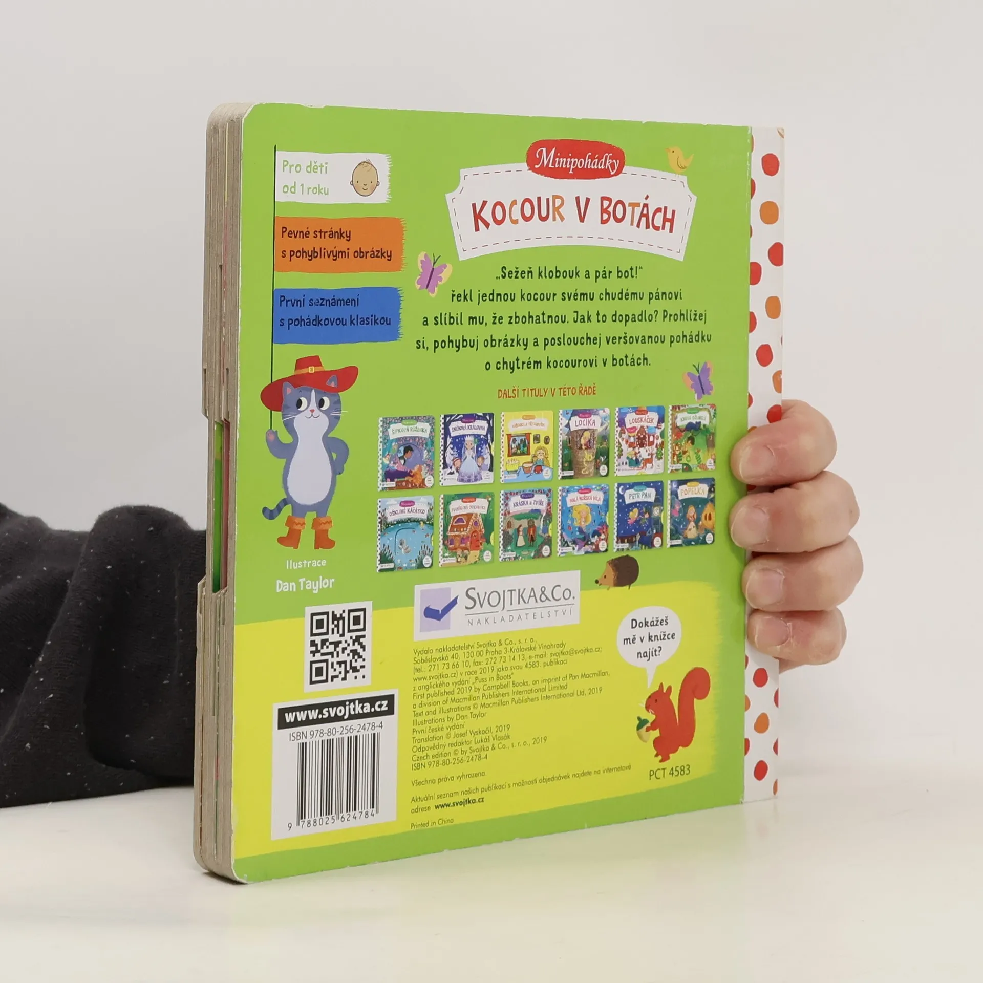 Toto malé dětské pohádkové leporelo s pevnými stránkami a pohyblivými obrázky je určeno dětem od jednoho roku a najdete v něm krátkou veršovanou pohádku o Kocourovi v botách. Při jejím poslouchání si děti mohou procvičovat svou jemnou motoriku a zároveň si pohádkový příběh oživit. Tak vzhůru do čtení! Minipohádka o Kocourovi v botách už na vás čeká!