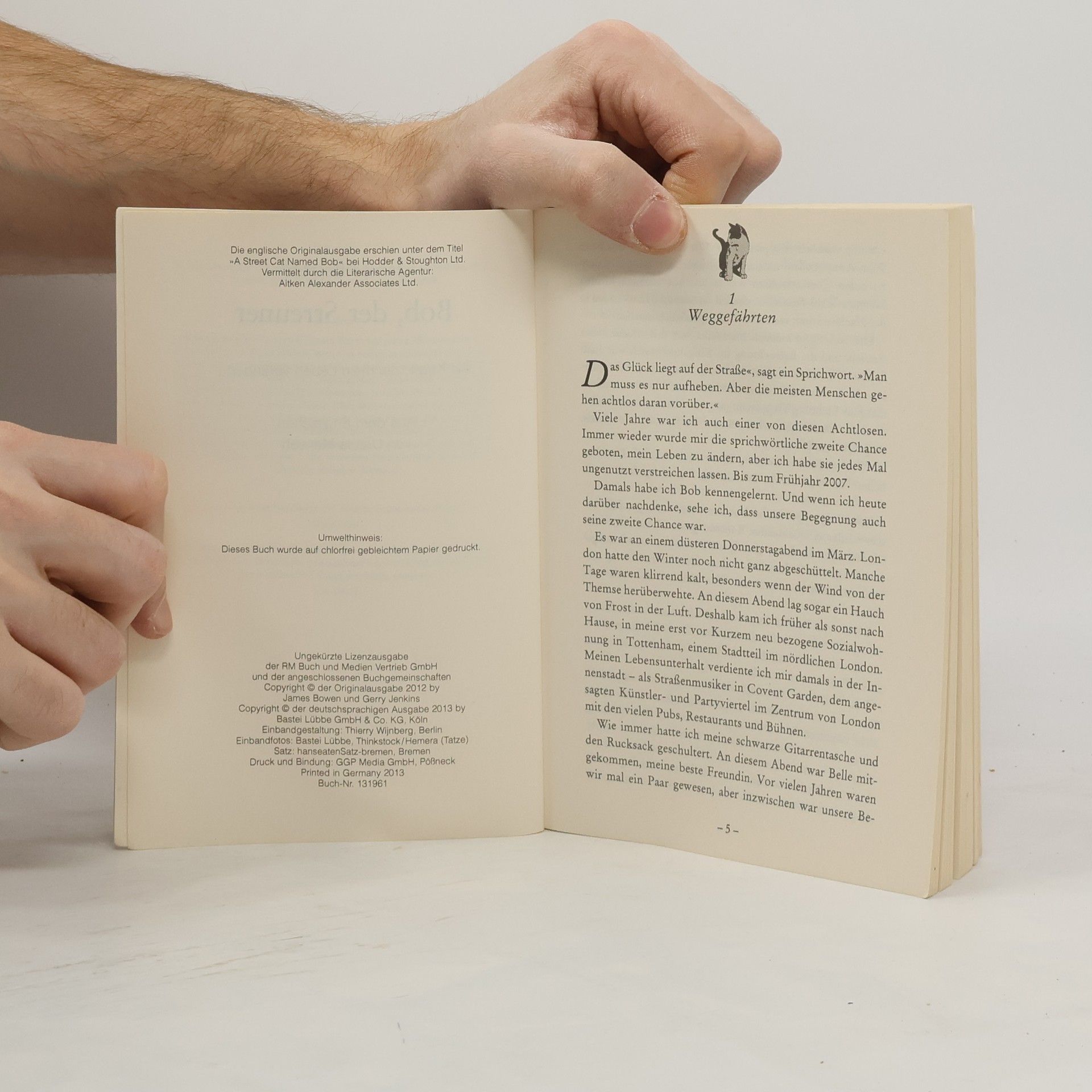 Die komische und manchmal abenteuerliche Geschichte einer ungewöhnlichen Freundschaft Millionenfach hat sich der Roman „Bob der Streuner“ von James Bowen bereits verkauft. Ein modernes Märchen: Der Obdachlosigkeit entkommen, schlägt James sich als Straßenmusiker durch. Als er eines Abends einen abgemagerten, streunenden Kater vor seiner Tür findet, scheint er sein tierisches Ebenbild zu treffen. Und mehr noch: Während er den Streuner aufpäppelt, entwickelt sich eine besondere Freundschaft. Der Kater Bob will nämlich keineswegs zurück in die Freiheit. So, wie James dem Kater Bob seine Lebenskraft zurückgibt, so füllt das samtpfötige Wesen James´ Leben wieder mit Sinn - und jeder Menge witziger Anekdoten. Mittlerweile sind James und Bob weltbekannt, ihre Geschichte hat bereits Millionen Leser gerührt. Nur selten wird die Beziehung zwischen Mensch und Katze so charmant beschrieben wie in „Bob, der Streuner“.