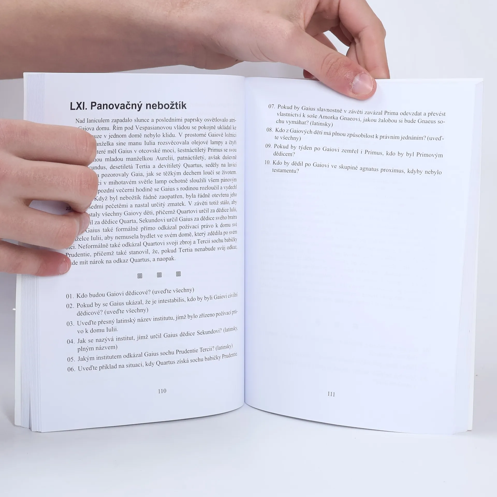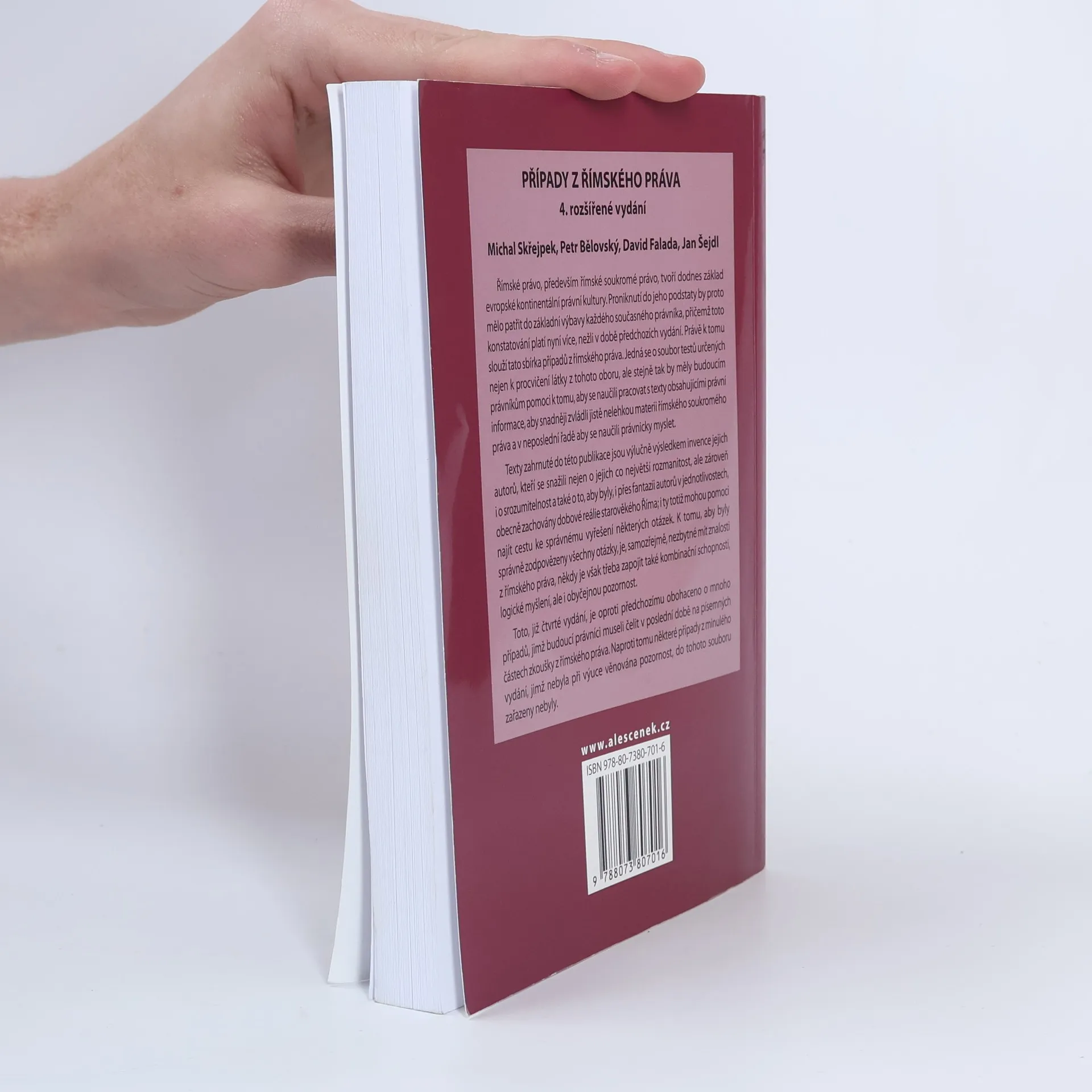 Římské právo, především římské soukromé právo, tvoří dodnes základ evropské právní kultury. Proniknutí do jeho podstaty by proto mělo patřit do základní výbavy každého současného právníka, přičemž toto konstatování platí nyní více, nežli v době předchozích vydání. Právě k tomu slouží tato sbírka případů z římského práva. Jedná se o soubor testů určených nejen k procvičení látky z tohoto oboru, ale stejně tak by měly budoucím právníkům pomoci k tomu, aby se naučili pracovat s texty obsahujícími právní informace, aby snadněji zvládli jistě nelehkou materii římského soukromého práva a v neposlední řadě aby se naučili právnicky myslet. Toto, již čtvrté vydání, je oproti předchozím obohaceno o mnoho případů, jimž budoucí právníci museli čelit v poslední době na písemných částech zkoušky z římského práva. Naproti tomu některé případy z minulého vydání, jimž nebyla při výuce věnována pozornost, do tohoto souboru zařazeny nebyly.