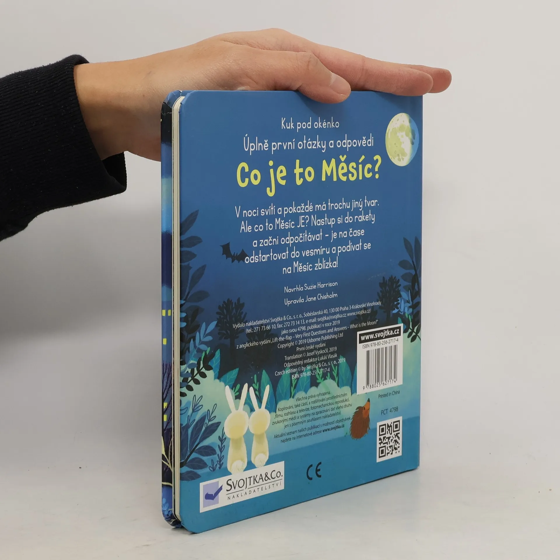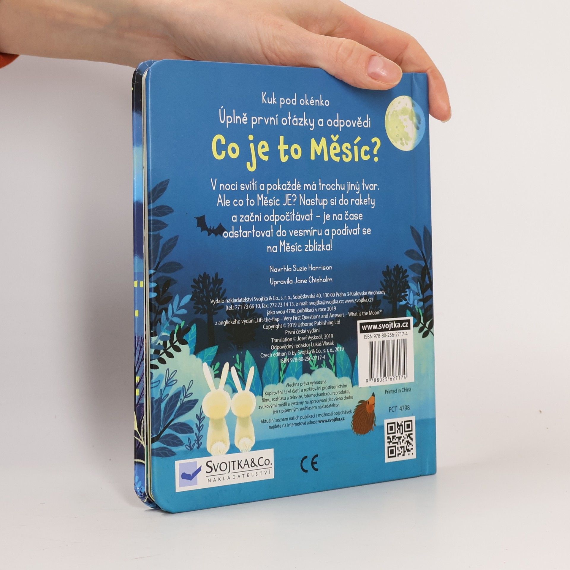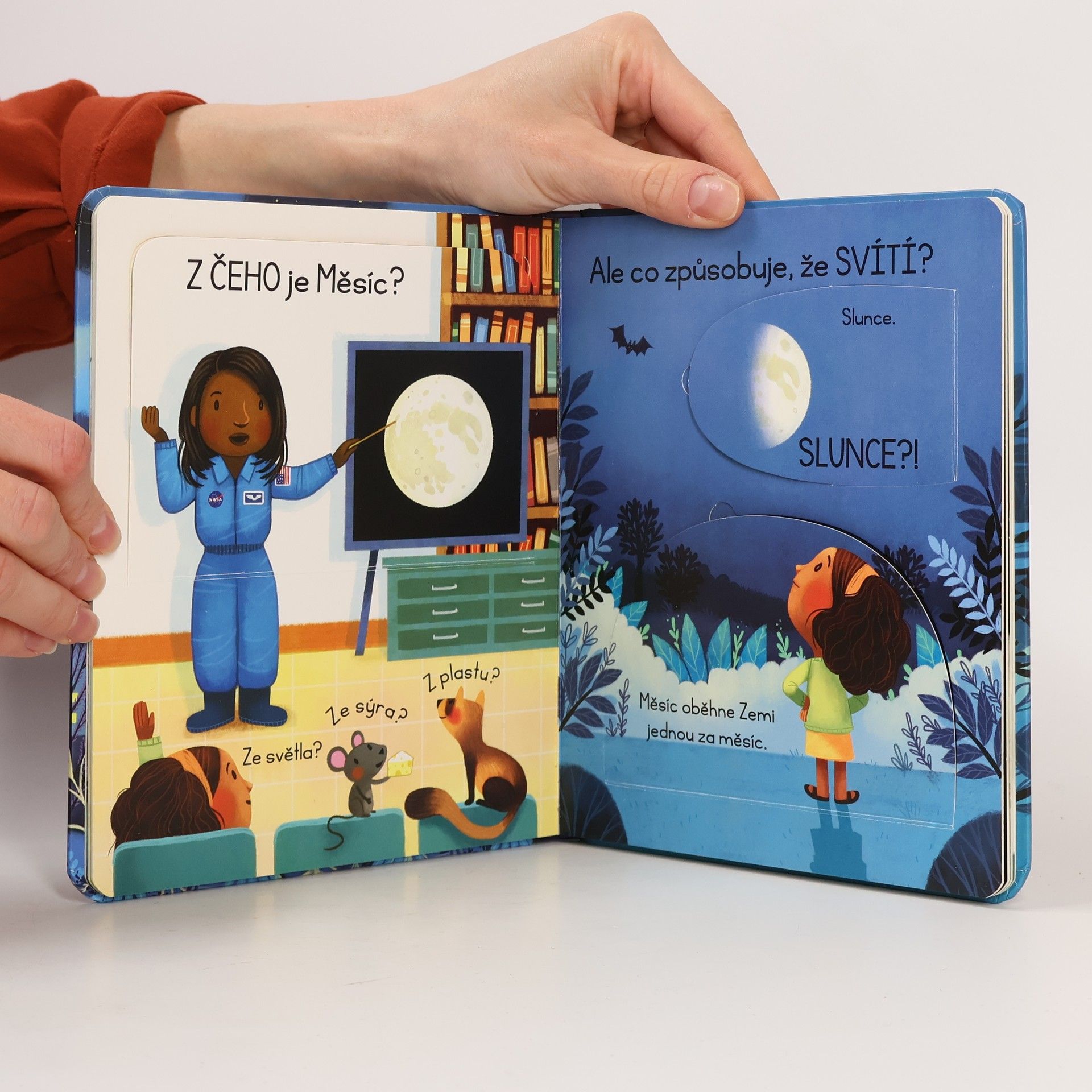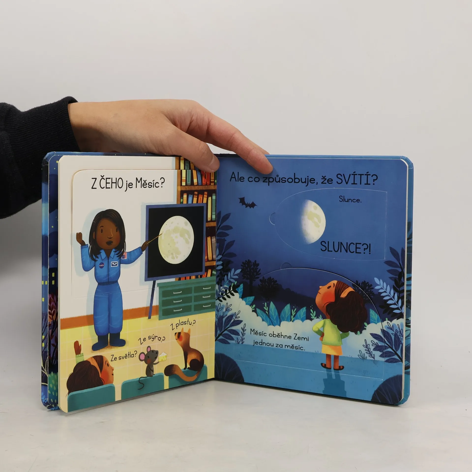 Obloha, obzvlášť ta noční, vždy přitahovala pohledy zvídavých dětí. Pokud vás vaši nejmenší zaskočili otázkou: "A co je to vlastně ten Měsíc?", pomoc najdete v této knize. Tato ilustrovaná knížka s odklápěcími okénky obsahuje odpovědi na nejčastější otázky dětí o Měsíci. Je tak skvělým seznámením s nejbližším vesmírným průvodcem naší planety. Děti se v ní dočtou, z čeho se Měsíc skládá, proč svítí a mění tvar, jaké to na povrchu Měsíce je i kolik lidí už se tam podívalo. A kdoví, třeba se mezi čtenáři této knížky skrývá nejeden budoucí kosmonaut...