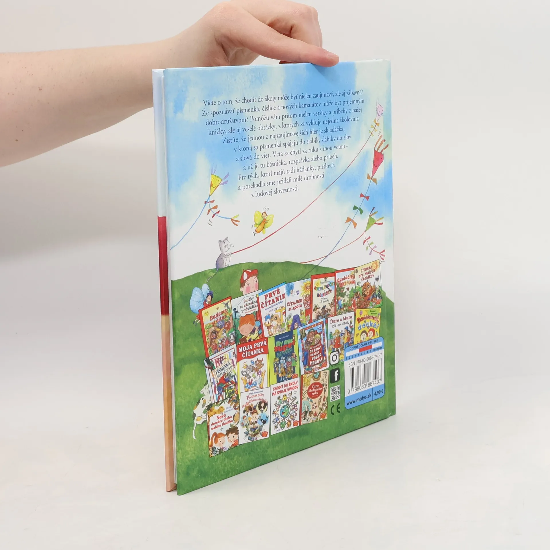 Viete o tom, že chodiť do školy môže byť nielen zaujímavé, ale aj zábavné? Že spoznávať písmenká, číslice a nových kamarátov môže byť príjemným dobrodružstvom? Pomôžu vám pritom nielen veršíky a príbehy z našej knižky, ale aj veselé obrázky, z ktorých sa vykľuje nejedna školovina. Zistíte, že jednou z najzaujímavejších hier je skladačka, v ktorej sa písmenká spájajú do slabík, slabiky do slov a slová do viet. Veta sa chytí za ruku s inou vetou – a už je tu básnička, rozprávka alebo príbeh. Pre tých, ktorí majú radi hádanky, príslovia a porekadlá, sme pridali milé drobnosti z ľudovej slovesnosti.