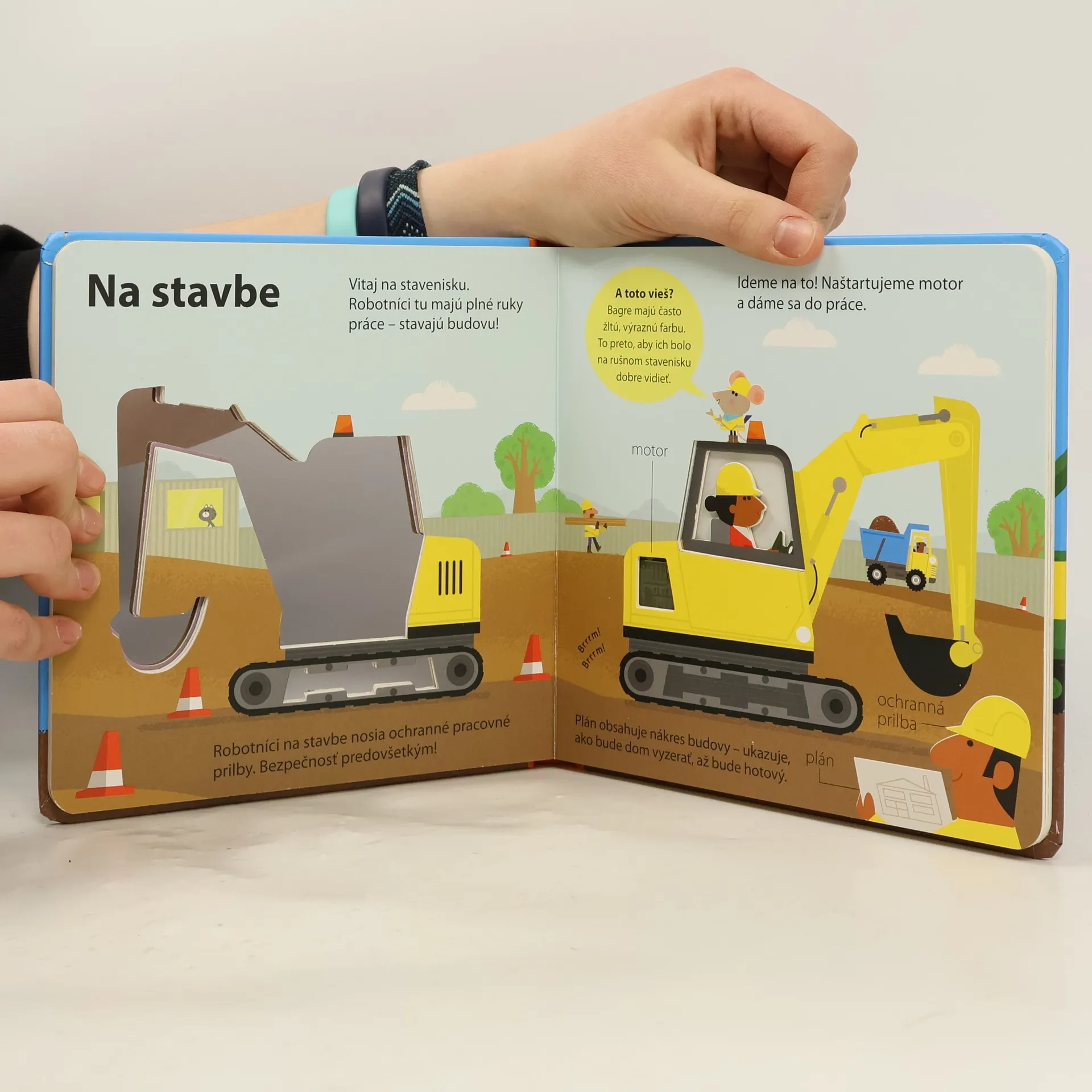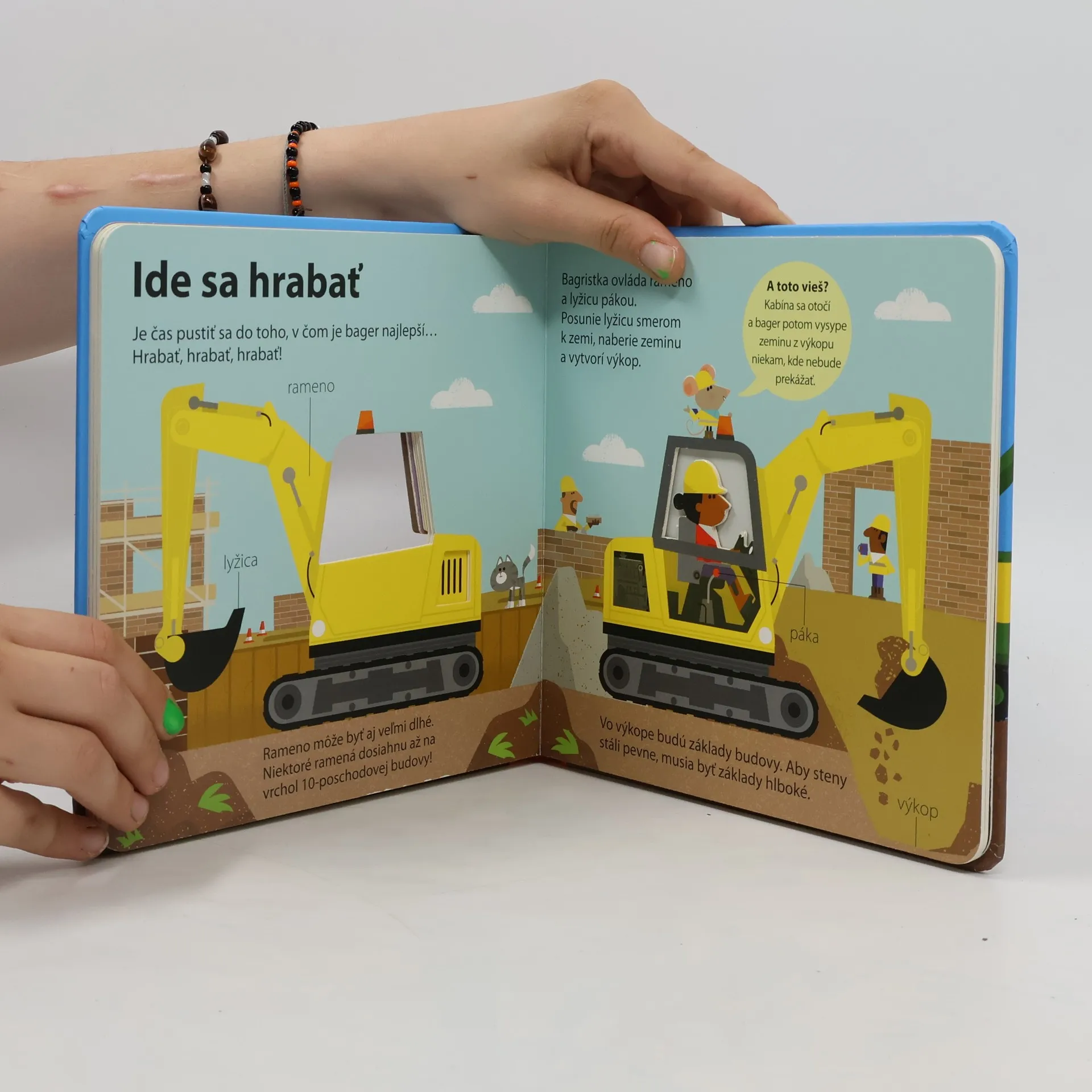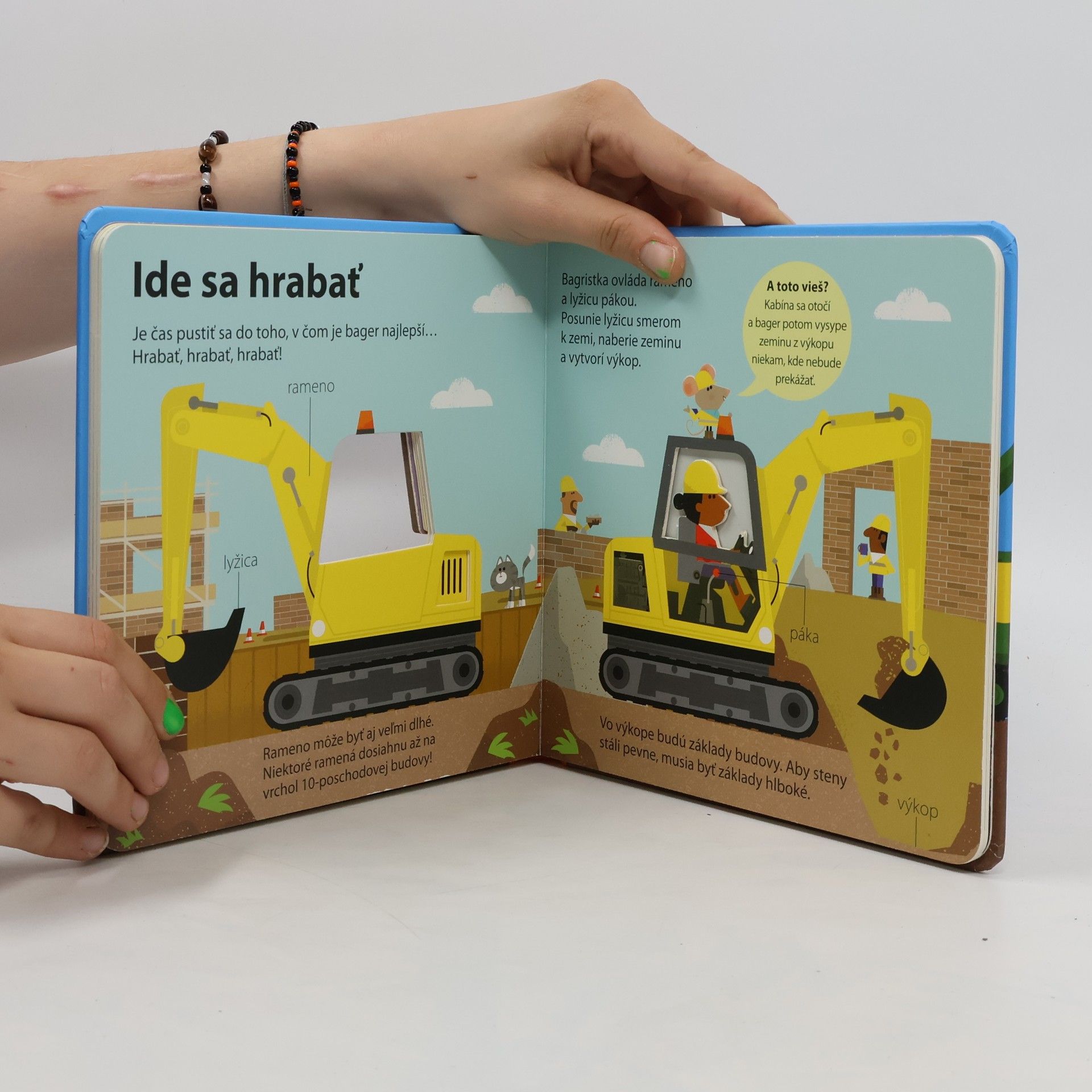 Prečo je bager taký užitočný? Z akých častí sa skladá? Leporelo pre malých stavbárov obsahuje ilustrácie s výrezmi a jednoduché základné informácie o bagroch.