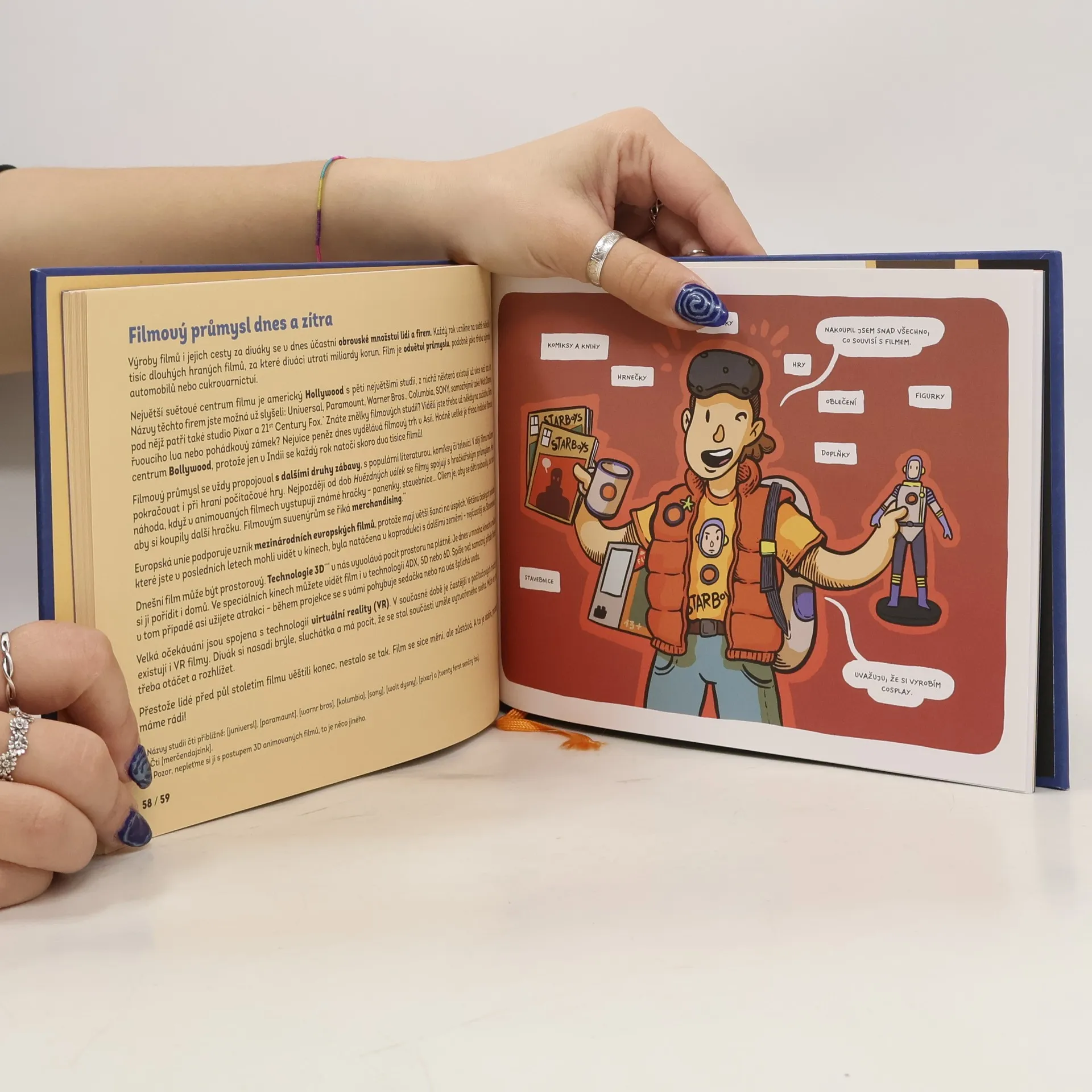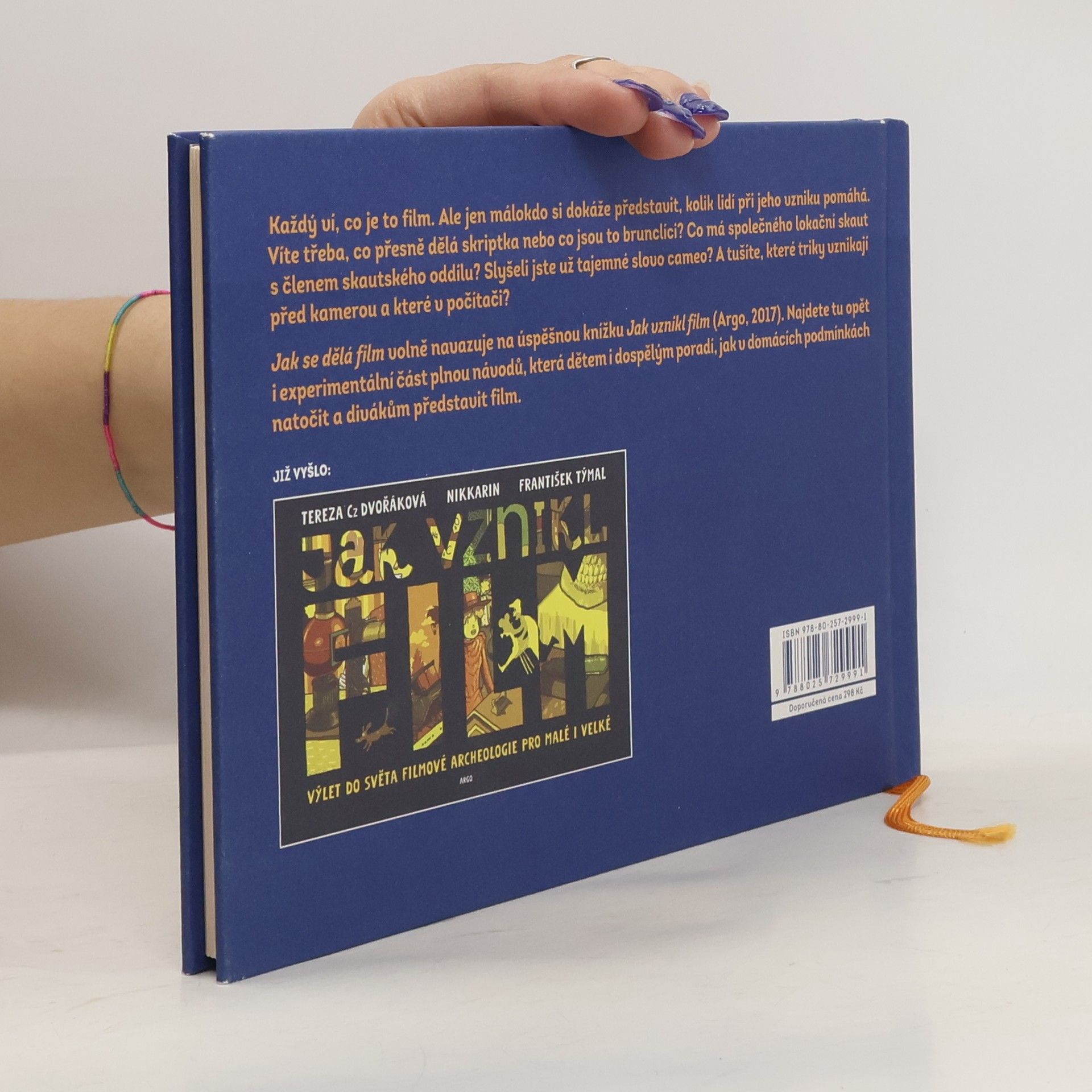 Každý ví, co je to film. Ale jen málokdo si dokáže dopodrobna představit, kolik lidí a jak dlouhou dobu běžný celovečerní film pomáhá natočit a představit divákům. Víte třeba, co jsou to brunclíci, proč se píše tolik verzí scénáře a co přesně dělá paní, které se říká skriptka? Které triky v dnešní době vznikají před kamerou a které v počítači? Proč filmy potřebují své architekty? Komu se říká tajemným slovem cameo? Co má společného lokační skaut s členem skautského oddílu? Anebo, k čemu všemu je filmařům a jejich filmům užitečný filmový festival? Publikace, která volně navazuje na úspěšnou knihu Jak vznikl film (Argo,2017), bude vedle hlavního textu obsahovat opět také experimentální část plnou návodů připravených propagátorkou animovaných filmů Karolínou Čížkovou, která dětem i dospělým ukáže, jak si v domácích podmínkách natočit a rozšířit opravdový film. Kniha bude doplněna bohatými ilustracemi, jejichž autorem je opět Nikkarin. Kniha je určena pro zvídavé čtenáře od 8 let, ale i pro mnohem starší nebo pro celou rodinu.