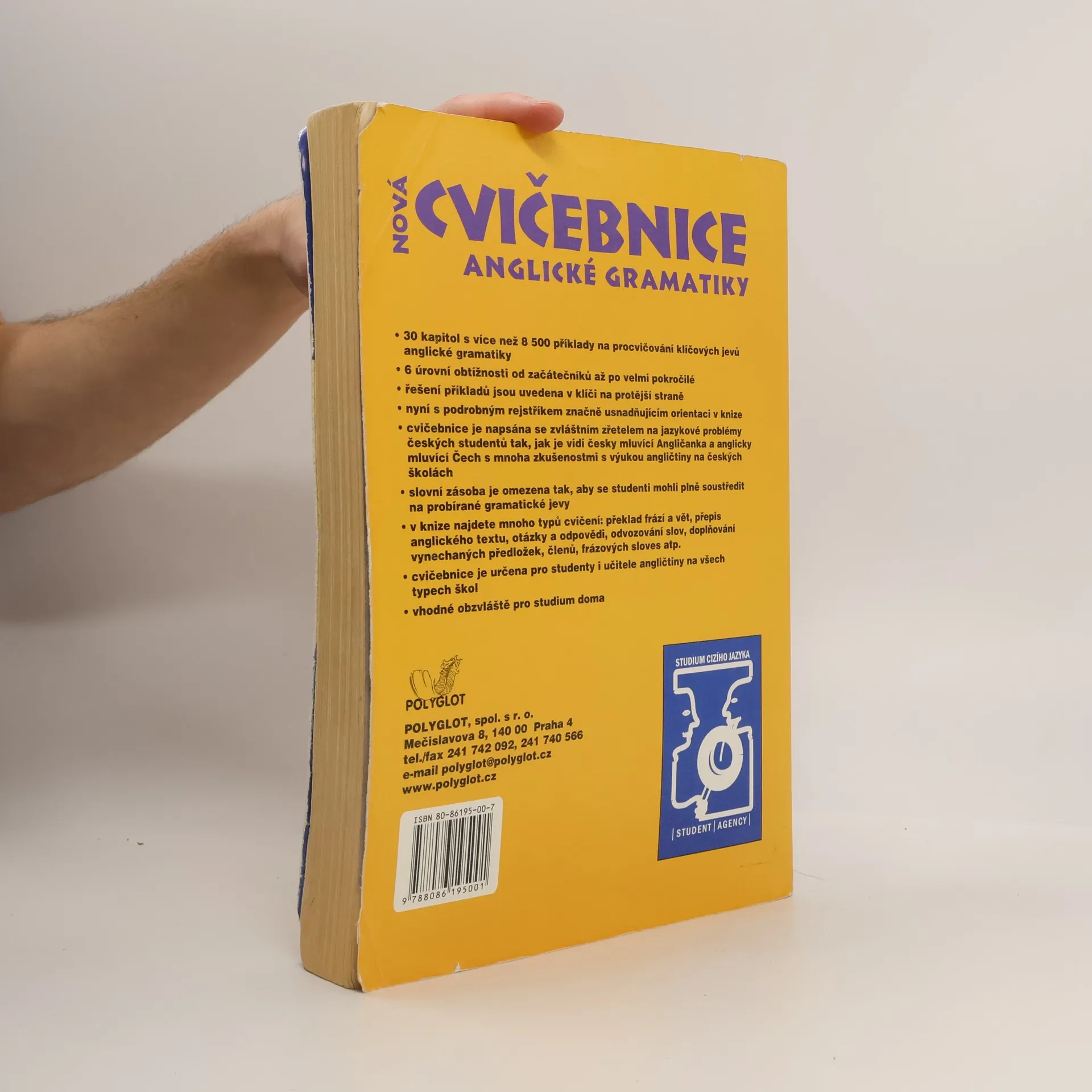 Cvičebnice je doplňkovým materiálem k jazykovým učebnicím. Neobsahuje výklad gramatiky, ale příklady k intenzivnímu procvičování gramatických a lexikálních jevů. Určena pro studenty všech úrovní, vhodná i pro samouky, neboť ke každému cvičení je na protější straně uvedeno řešení. Každá kapitola je rozdělena do několika úrovní pokročilosti. V úrovni A se procvičují jevy, s nimiž se začátečník setká zhruba v prvních měsících studia, ať už se bude učit z kterékoli učebnice. Se zvyšující se úrovní roste i lexikální náročnost cvičení. Cvičebnice svým obsahem přesahují středoškolskou úroveň. V 30 kapitolách najdete přes 8500 příkladů rozdělených do překladových a doplňovacích cvičení. Student se musí zároveň soustředit na slovní zásobu, gramatiku, slovosled, interpunkci a další aspekty jazyka. Důraz je kladen i na problémy specifické pro české studenty (časová souslednost, předložky, vazba there is / are…).... celý text