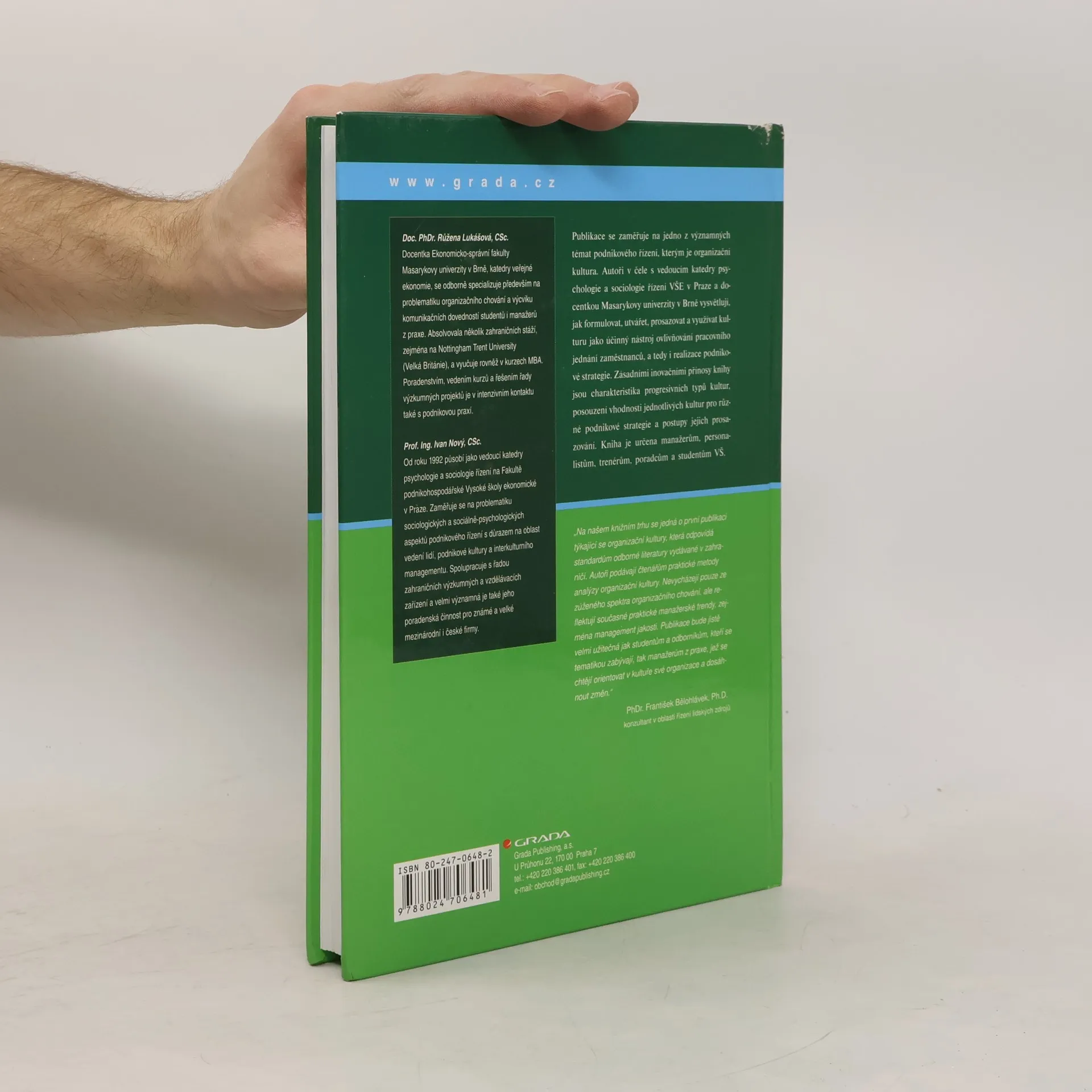 Publikace se zaměřuje na jedno z významných témat podnikového řízení, kterým je podniková/organizační kultura. Autoři v čele s vedoucím katedry psychologie a sociologie řízení Vysoké školy ekonomické v Praze vysvětlují, jak formulovat, utvářet, prosazovat a využívat kulturu jako účinný nástroj ovlivňování pracovního jednání zaměstnanců, a tedy i realizace podnikové strategie. Zásadními inovačními přínosy knihy jsou charakteristika progresivních typů kultur, posouzení vhodnosti jednotlivých kultur pro různé podnikové strategie a postupy jejich prosazování. Kniha je určena širokému spektru manažerů, personalistů, trenérů, poradců a studentů vysokých škol.... celý text