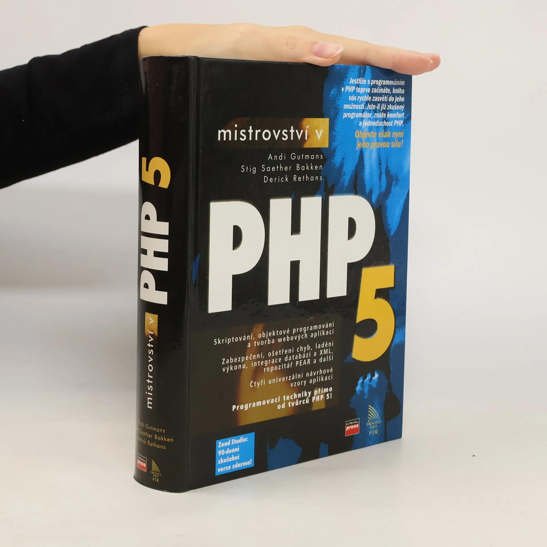 Jazyk PHP, který vznikl v roce 1995, se rychle stal nejpoužívanějším nástrojem pro webové programování. Tým vývojářů transformoval původně jednoduchý skriptovací jazyk na silný objektově-orientovaný jazyk, konkurující Javě a platformě .NET i v oblasti firemních aplikací. Tato publikace je dotiskem úspěšného bestselleru, v níž tři významní tvůrci PHP ukazují, jak maximálně využít jeho schopnosti a novinky, a to v projektech jakékoli velikosti. Po shrnutí základů a novinek PHP 5 se čtenáři dostanou k technikám objektového programování, databázovým připojením, návrhovým vzorům a skriptování z příkazové řádky. Publikace se také zaměřuje na využívání hotového kódu a softwarových řešení, zejména repositáře PEAR, jehož potenciál je často opomíjen. Obsah zahrnuje základy PHP, tvorbu webových aplikací, objektové rysy jazyka, integraci s databázemi, ošetřování chyb, podporu XML, práci s doplňky a optimalizaci výkonu. Autoři nabízejí efektivní techniky a řešení, která jinde těžko najdete. K publikaci je k dispozici 90denní verze Zend Studia, nástroje pro vývoj a ladění kódu PHP, s postupem ke stažení uvnitř knihy.