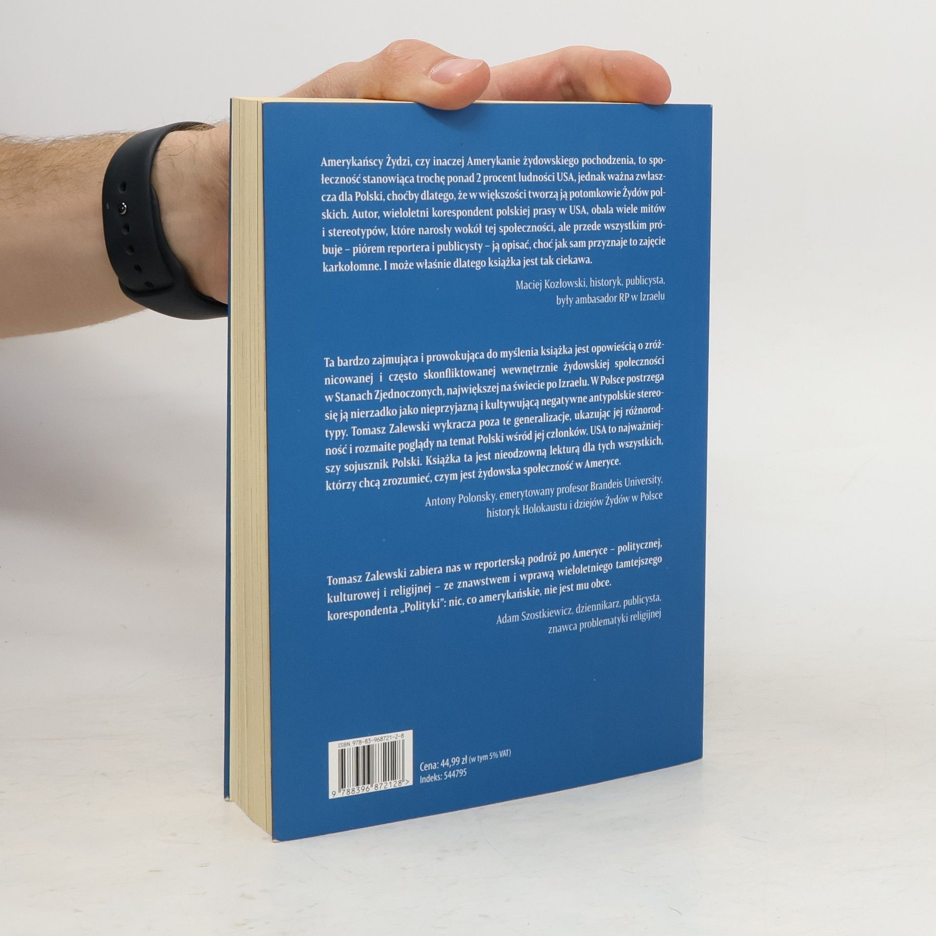 Jewish American community to największa, po Izraelu, żydowska społeczność na świecie, licząca sobie około siedmiu milionów ludzi. Stanowi to niewiele ponad 2 procent ludności USA, ale wkład Żydów do amerykańskiej gospodarki, polityki i kultury jest niewspółmiernie większy niż sugerowałaby to ich stosunkowo skromna liczebność. Przeważająca większość tej diaspory – to dzieci, wnuki lub prawnuki imigrantów z Polski. Książka Tomasza Zalewskiego jest dziennikarskim, zbiorowym portretem diaspory, skomponowanym z eseistyczno-reportażowych tekstów, które opowiadają o najistotniejszych aspektach życia i problemach Żydów w Ameryce. Rozmówcami autora są rabini, liderzy i szeregowi działacze żydowskich organizacji, dziennikarze, badacze judaizmu z wyższych uczelni oraz tzw. zwykli ludzie. Te rozmowy przybliżają koleje ich losu, sposób myślenia, argumentacji, motywy postępowania, ewentualne kompleksy czy fobie. Może pozwoli to zrozumieć, dlaczego są tacy, jacy są. Poznajmy amerykańskich Żydów.
